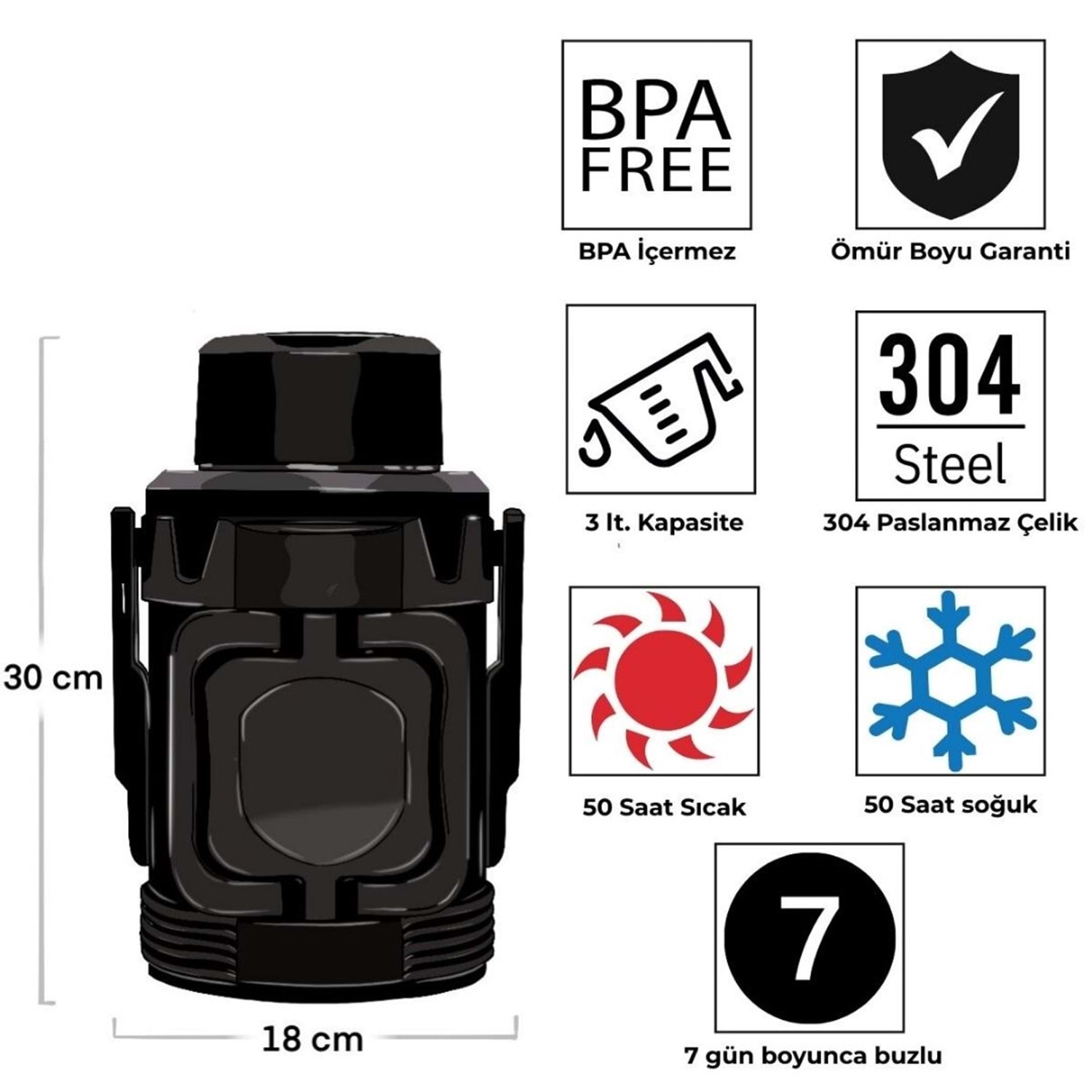 - Isı Muhafaza Süresi: 50 saate kadar sıcak veya soğuk muhafaza