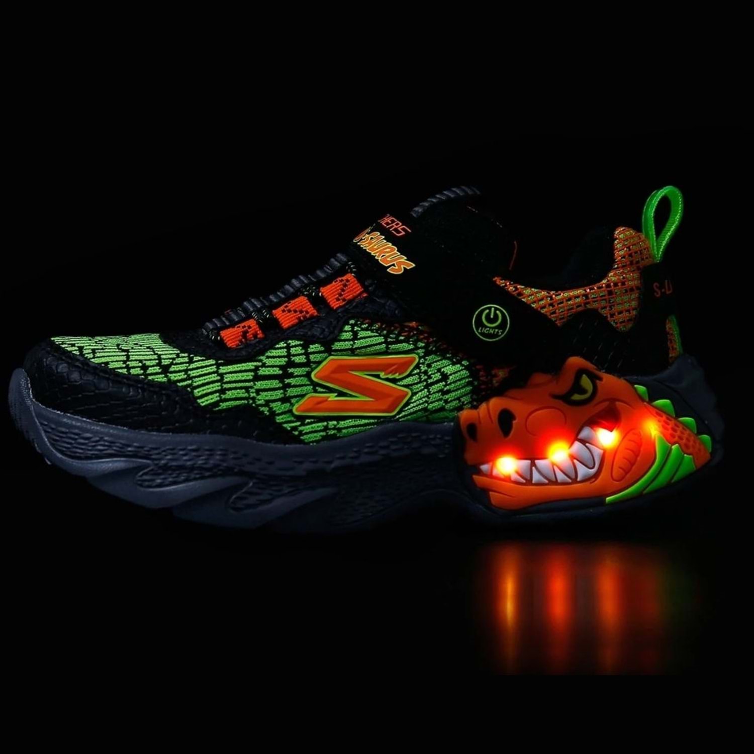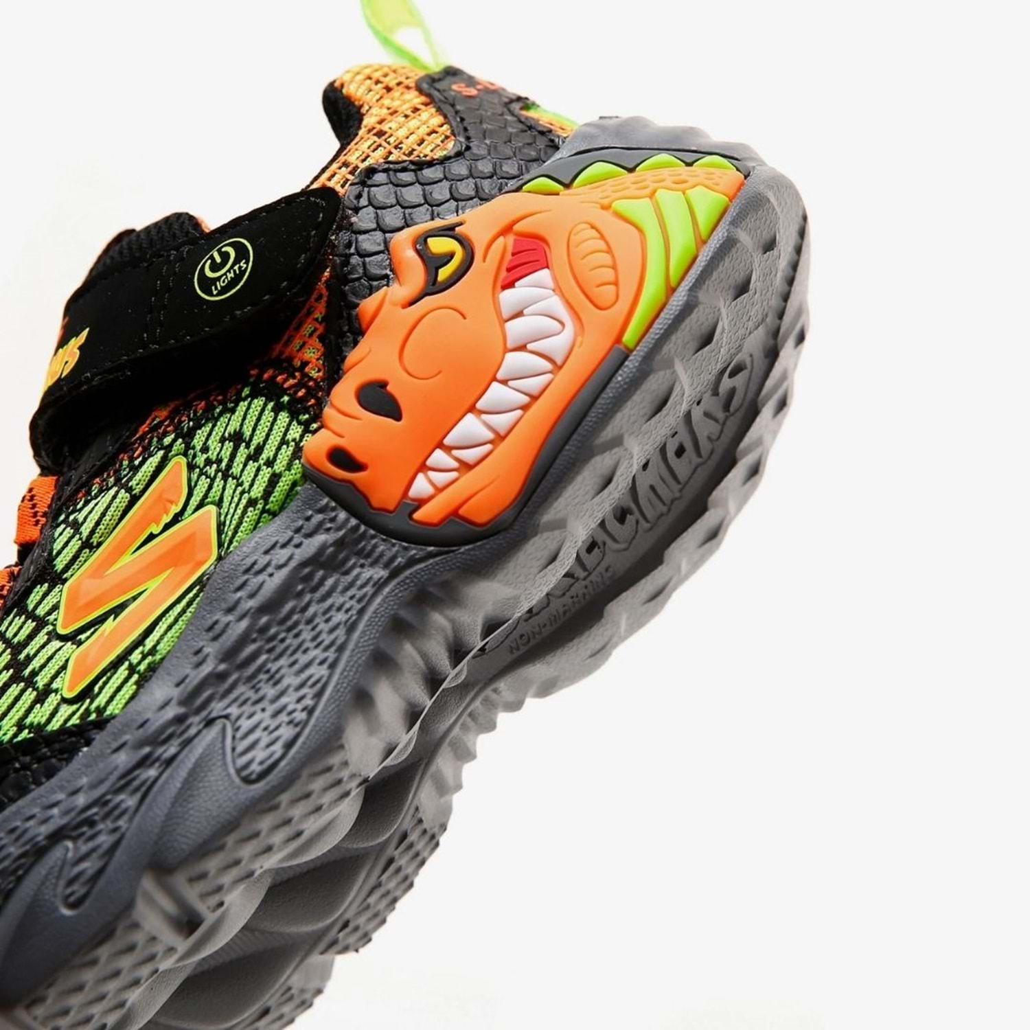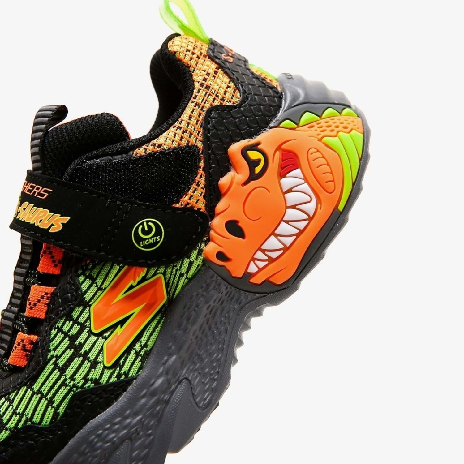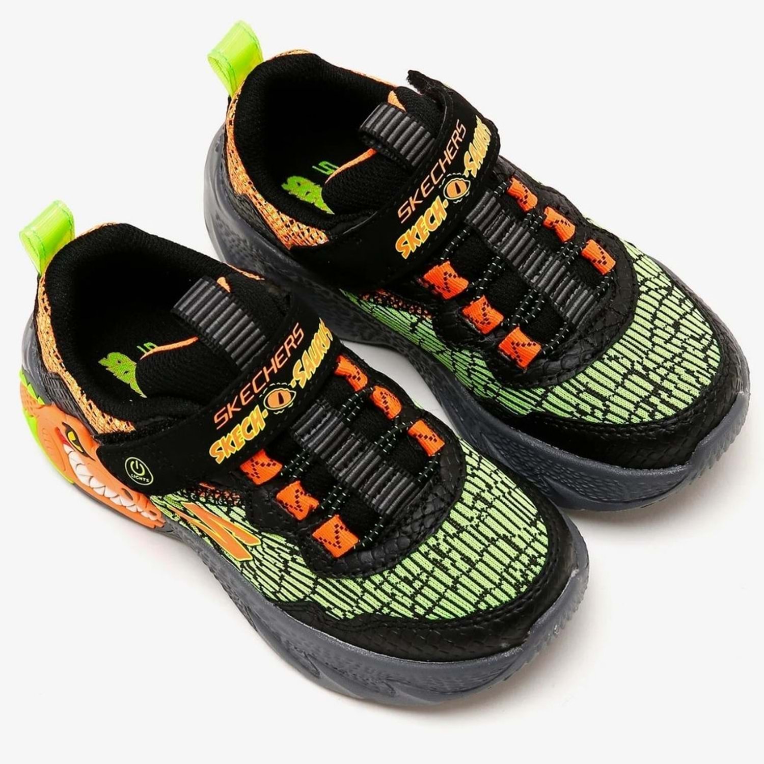 Skechers Skech-O-Saurus - Dino-Lights erkek çocuk ışıklı spor ayakkabı ile dinazorların kükreyen dünyasıyla konforlu adımlar atın. Dinozor temalı tasarımıyla erkek çocukların severek giyeceği ışıklı spor ayakkabısı modelidir.Sayasında dinozor derisi desenine benzeyen baskıya sahip atletik file kullanılmıştır. Topuk ve burun kısmına yerleştirilen sentetik deri kaplamalar ayakkabıyı daha dayanıklı hale getirmiştir. Skechers Skech-O-Saurus - Dino-Lights erkek çocuk ışıklı spor ayakkabının ön panelinde yer alan esnek bağcıklar ve cırt cırtlı ayarlanabilir kayış sayesinde çocuğunuz ayakkabısını çok kolay bir şekilde giyip çıkarabilir. Üç boyutlu dinozor karakterine sahip orta tabanı aynı zaman ışıklıdır. Skechers Skech-O-Saurus - Dino-Lights erkek çocuk ışıklı spor ayakkabı ile çocuğunuzun her adımında ışıklar yanıp söner. Bu ışıkları gören çocuğunuz ise daha çok eğlenerek mutluluğuna mutluluk katar.