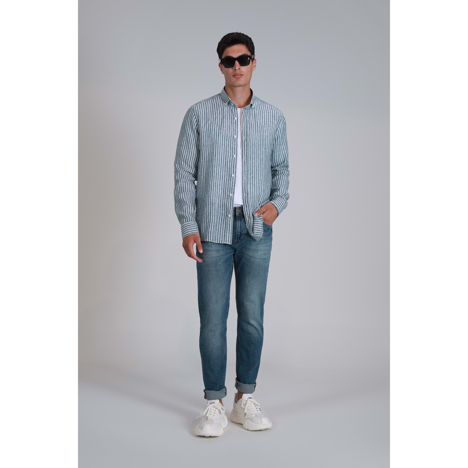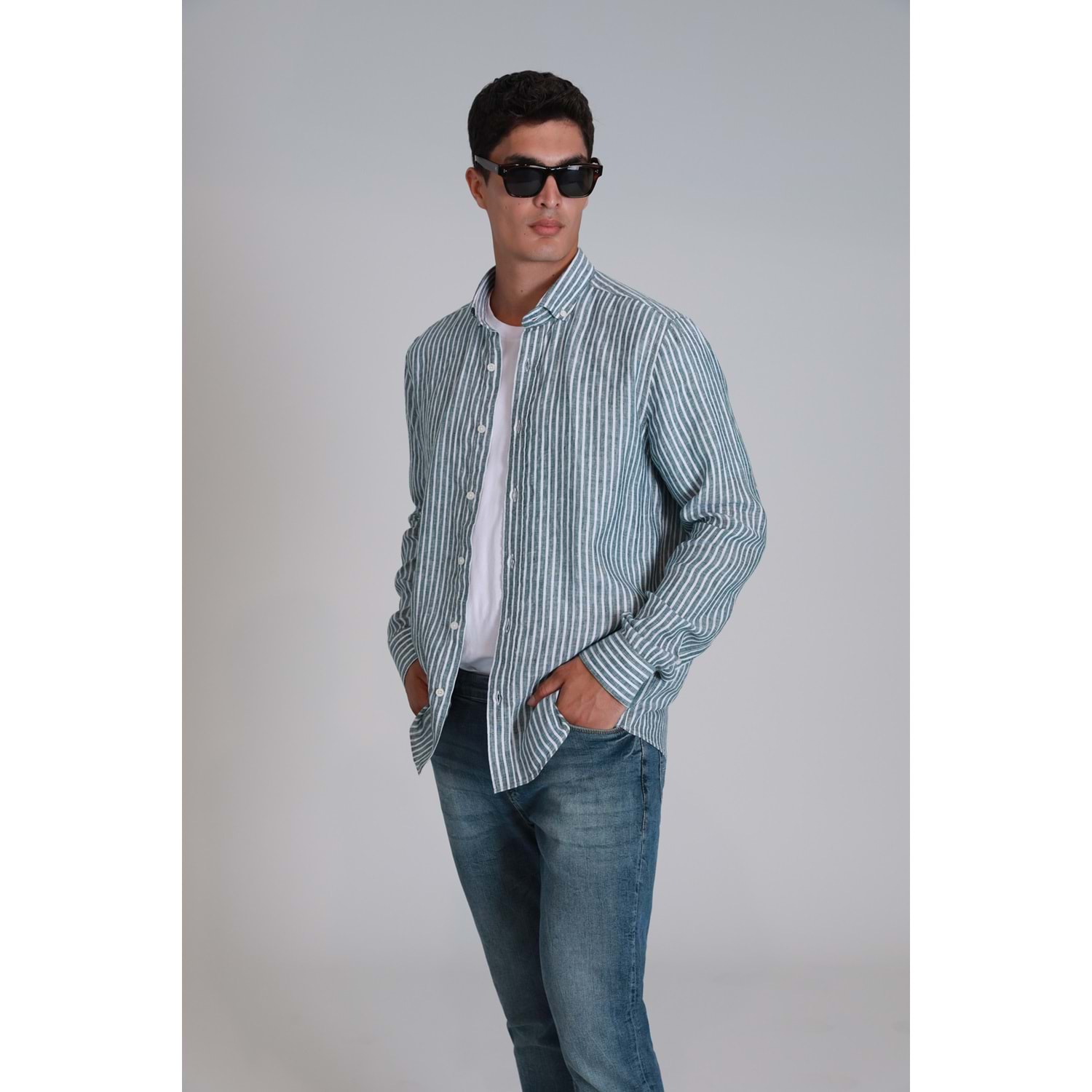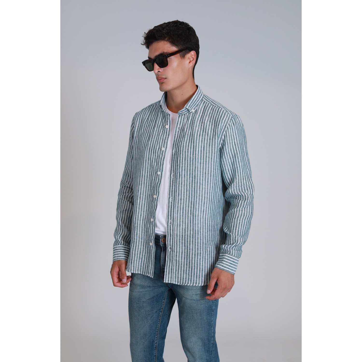 New Erkek Basic Gömlek Regular Fit %100 Keten Erkek Dokuma Gömlek