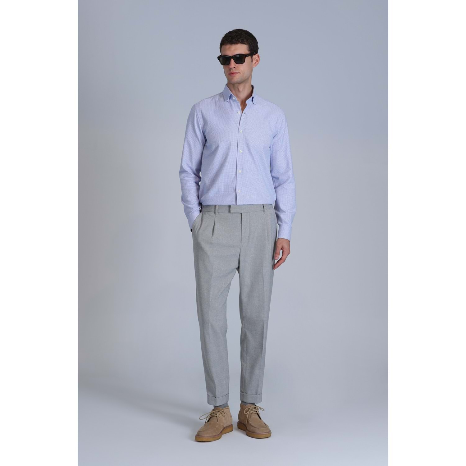 Frederik Erkek Basic Gömlek Slim Fit %69 Pamuk%24 Polyester%5 Liyosel %2 Yün Erkek Dokuma Gömlek
