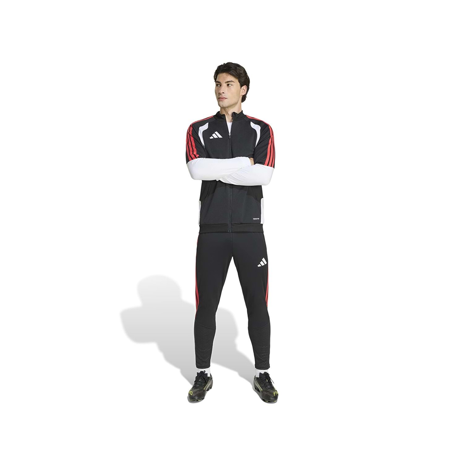 Adidas TIRO26C TR JKT erkek futbol kamp ceketi, vücudu tam anlamıyla saran dar kesimli yapısı sayesinde sahada ve günlük kullanımda aerodinamik bir şıklık sunarken, tam boy fermuarlı kapanış özelliğiyle pratik bir kullanım imkanı sağlar. Adidas'ın sürdürülebilirlik hedefleri doğrultusunda %100 geri dönüştürülmüş polyester malzemeden üretilen bu model, hem çevre dostu bir tercih sunar hem de yüksek dayanıklılık sergiler. Tasarımına entegre edilen file göğüs ekleri sayesinde yoğun hareket anlarında hava sirkülasyonunu artırarak nefes alabilirliği maksimize eden bu ceket, profesyonel sporcuların ihtiyaç duyduğu teknik detayları modern ve sportif bir formda bir araya getiriyor.