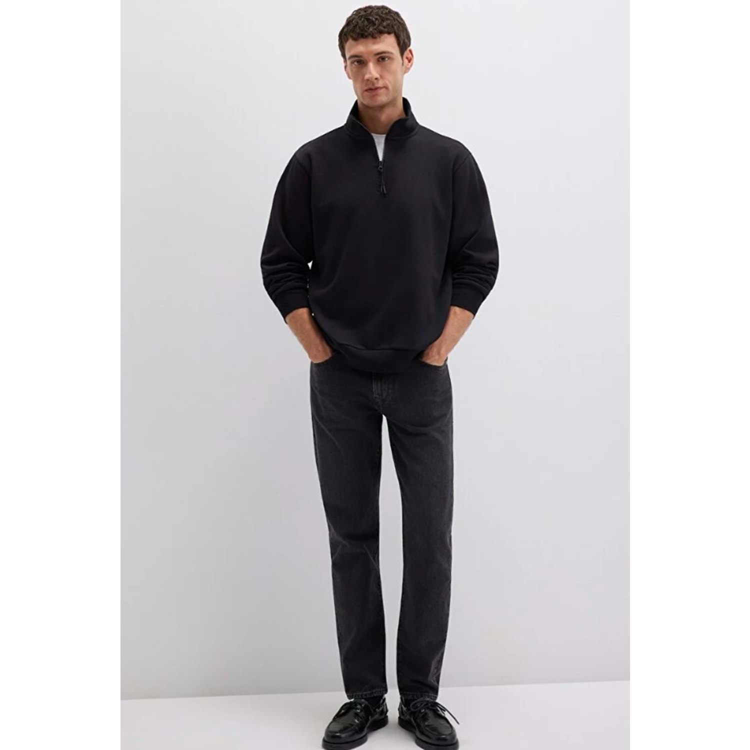 Mavi nin erkek koleksiyonundan Yarı Fermuarlı Siyah Basic Sweatshirt. Şardonlu, yarı fermuarlı dik yaka.