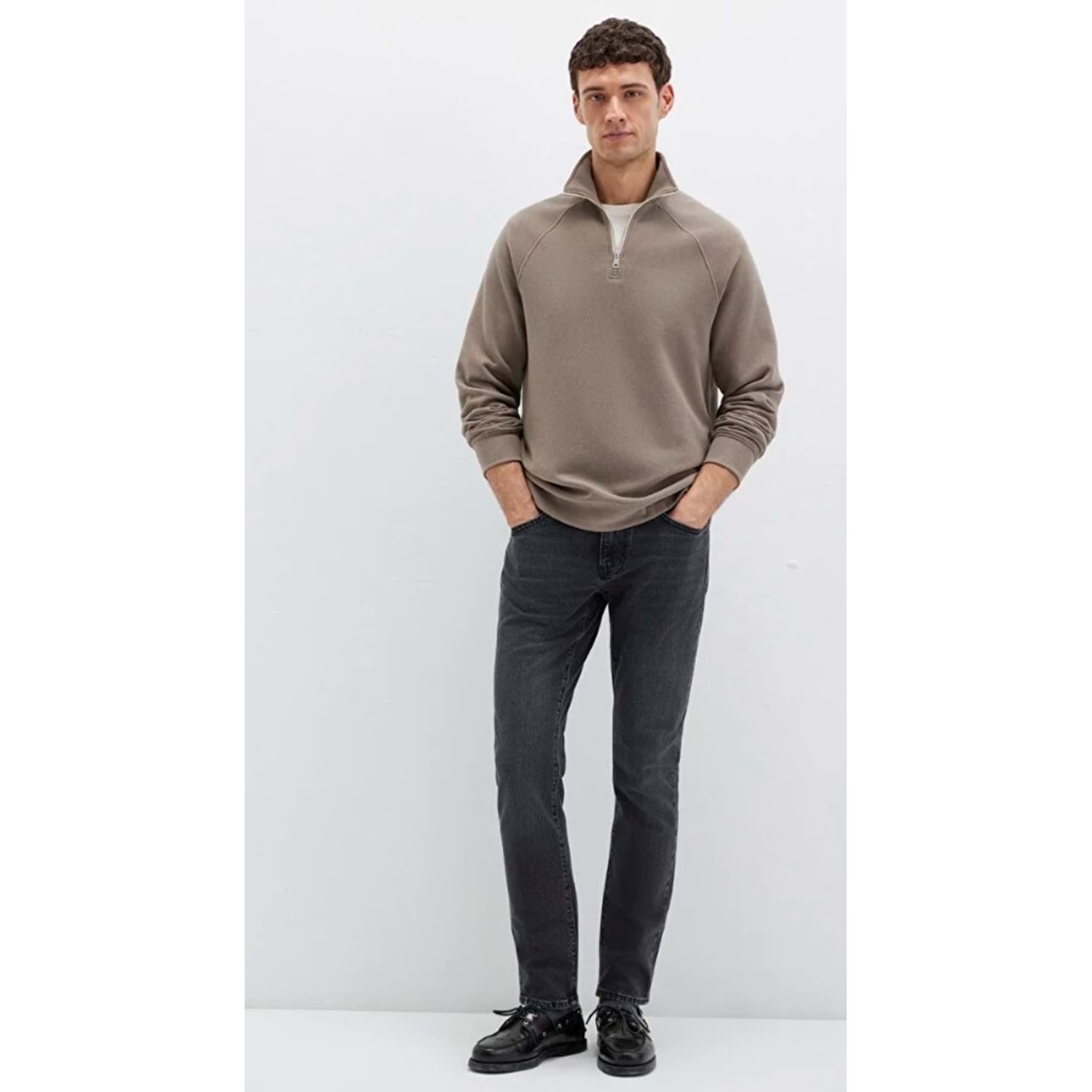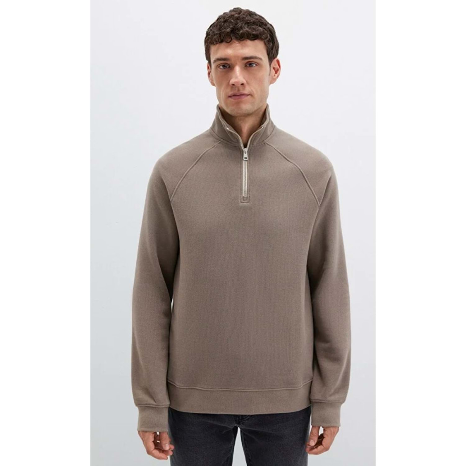 Mavi nin erkek koleksiyonundan Yarı Fermuarlı Bej Sweatshirt. Şardonsuz, yarı fermuarlı dik yaka.