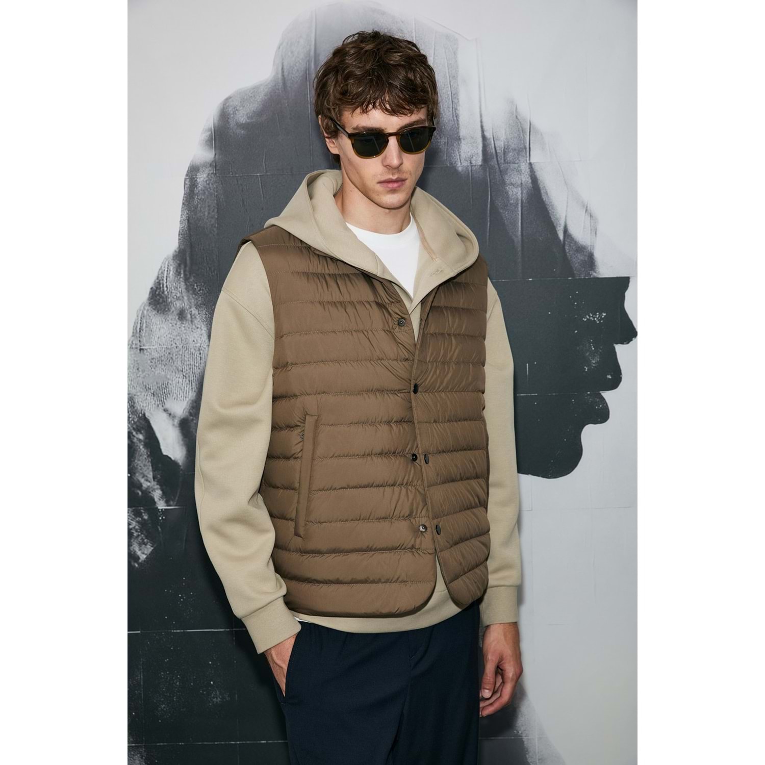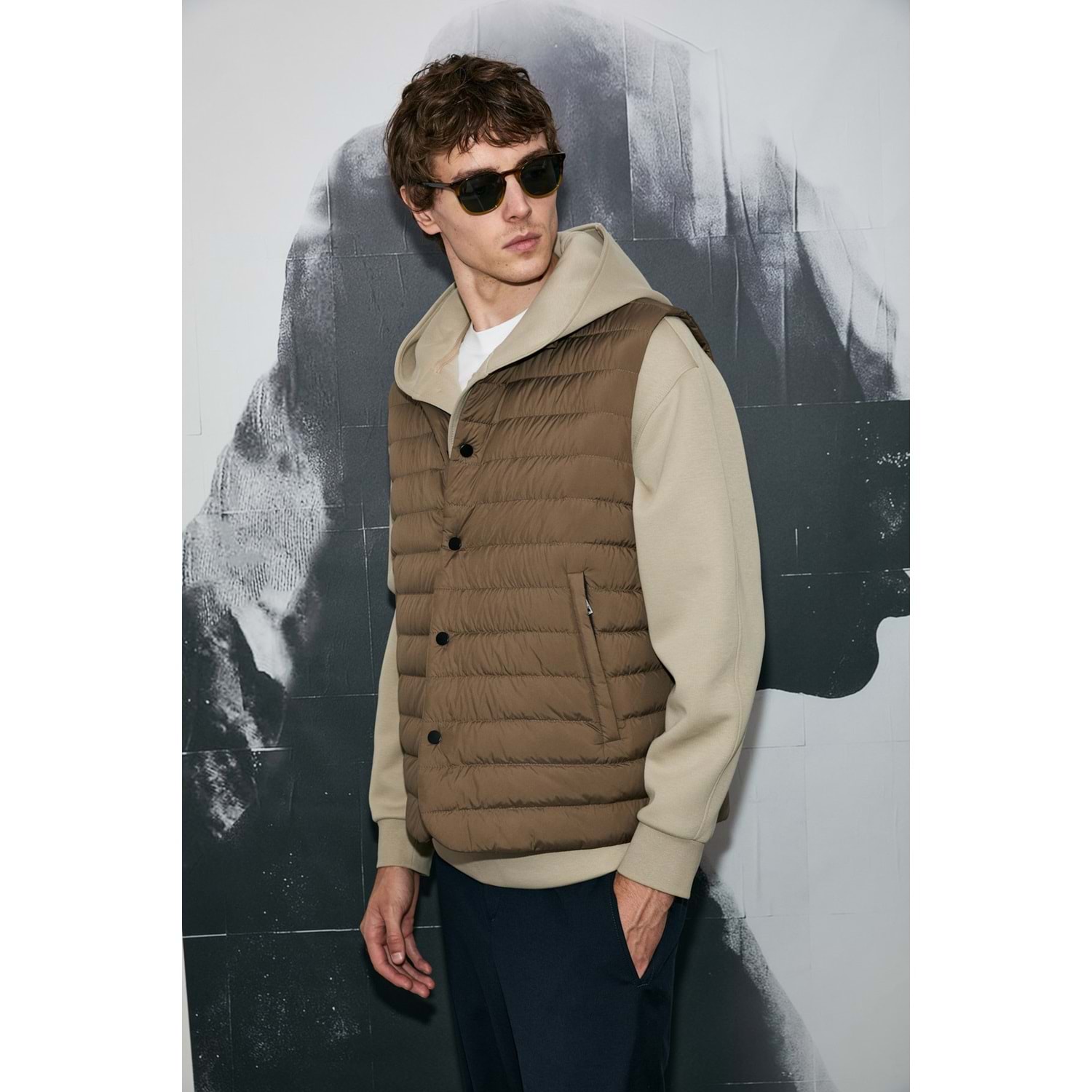 Soon Kaz Tüyü Erkek Yelek %100 Polyester Erkek Dokuma Tekno Yelek