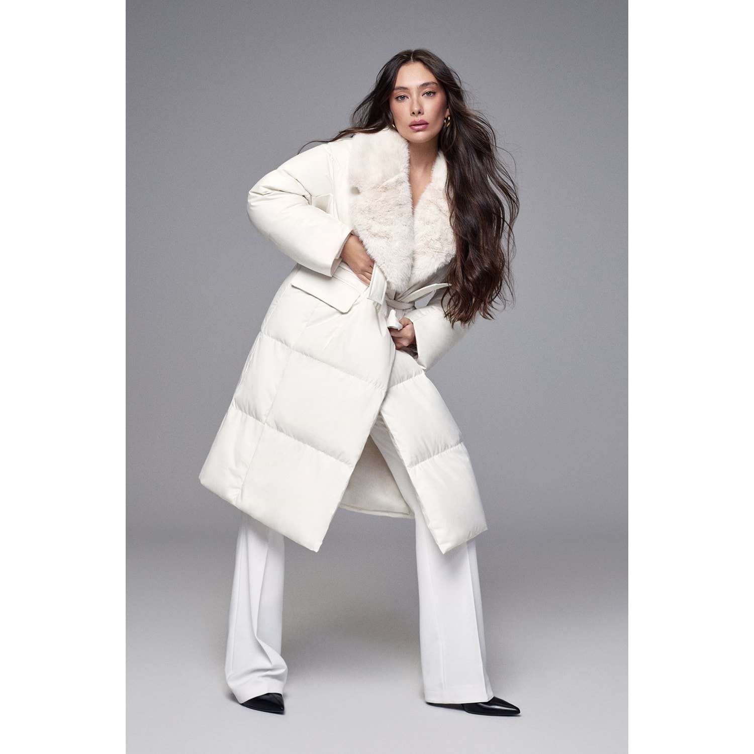Hermes Kaz Tüyü Kadin Mont %100 Polyester Dokuma Bayan Mont