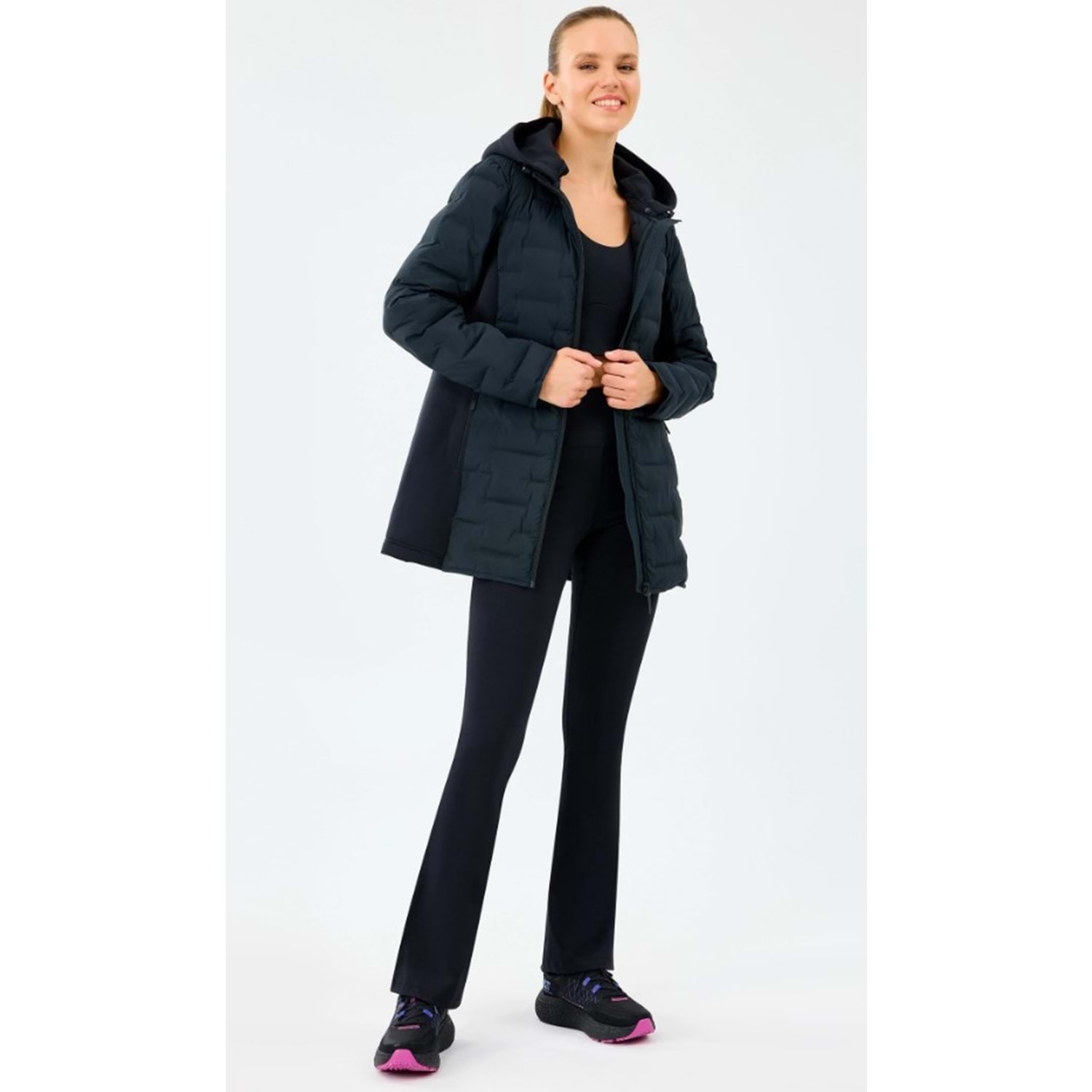 Fermuarlı kapanış ve kapüşon detayıyla güvenli koruma