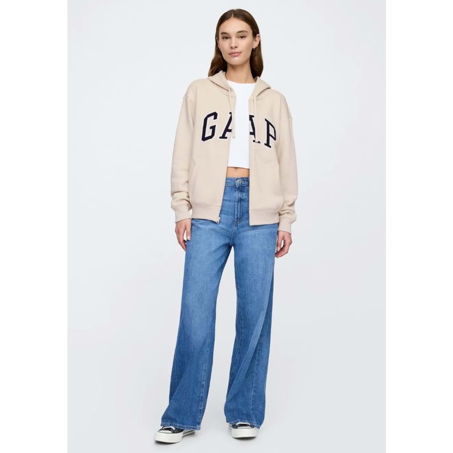 Yumuşak ve rahat polar kumaşıyla tasarlanan bu kadın hoodie, şıklığı ve konforu bir arada sunuyor. Düşük omuz kesimi ve bandlı manşetlere sahip uzun kolları, modern bir görünüm sağlarken, kapüşonundaki bağcıkları ile kişisel stilinizi yansıtmanıza olanak tanır. Fermuarlı ön kısmı ve ön kısmındaki Gap logo detayı, bu ürünü hem spor hem de günlük kombinlerinizde vazgeçilmez kılacak. Kanga cepli tasarımı ile pratiklik sunan bu hoodie, bandlı etek ucu ile tamamlanarak rahat bir siluet oluşturur. Şıklığı ve konforu bir arada arayanlar için ideal bir seçim!