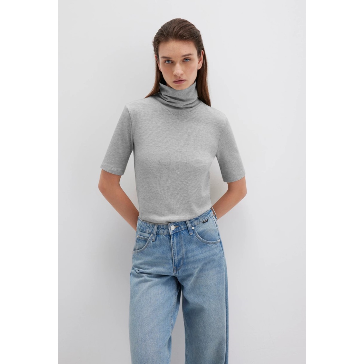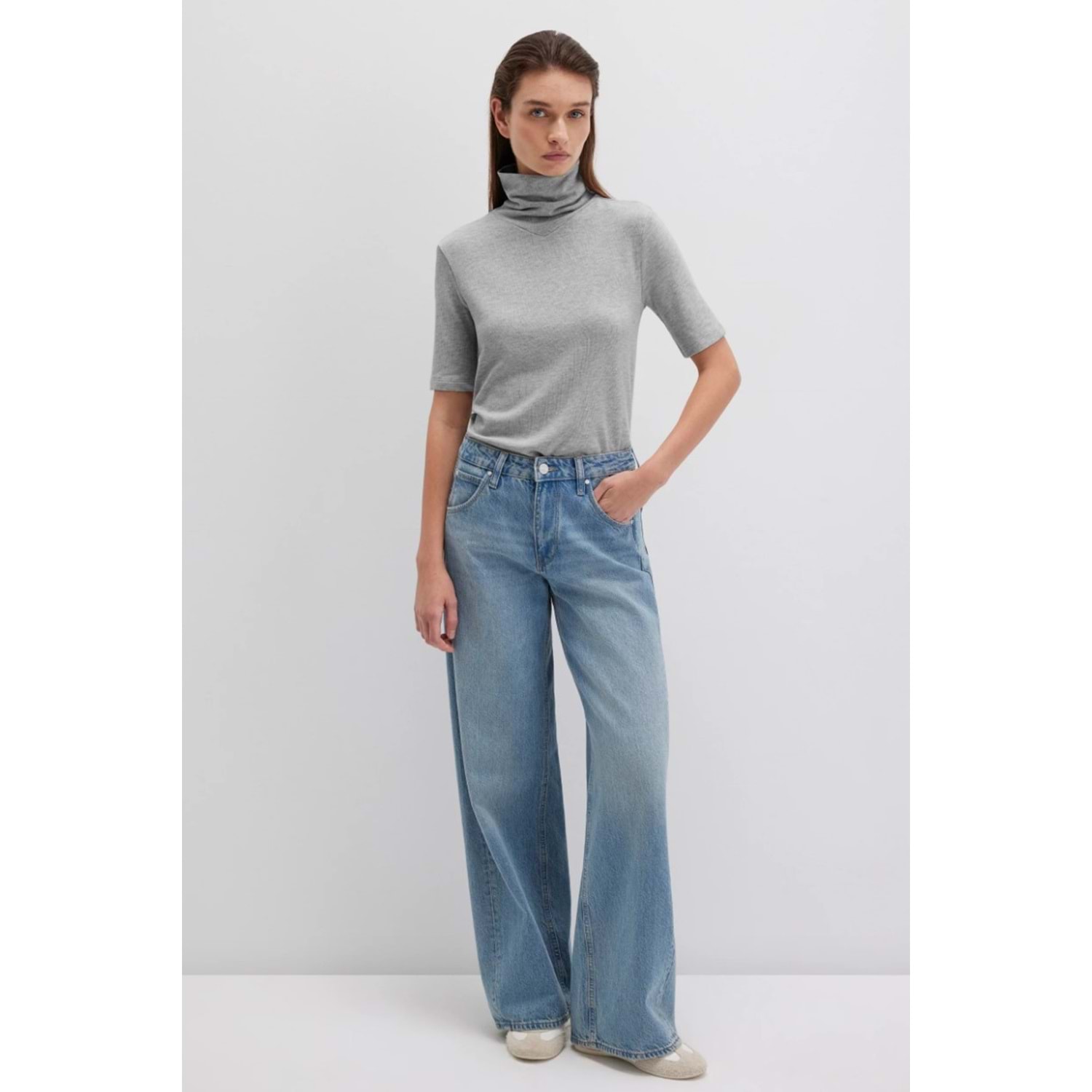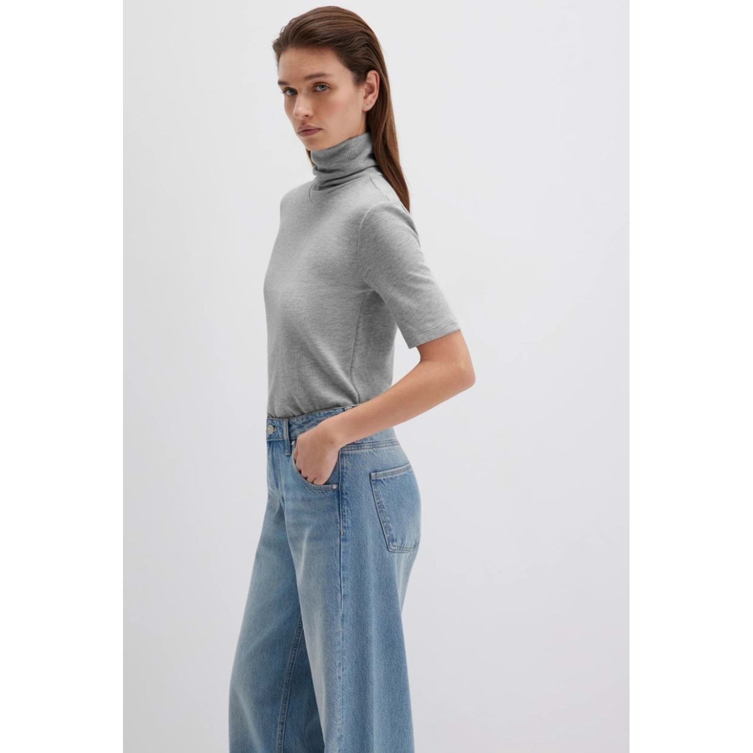 Mavi M1613613-87829 Kısa Kollu Kazak Balıkçı Yaka T-Shirt Kadın Tişört