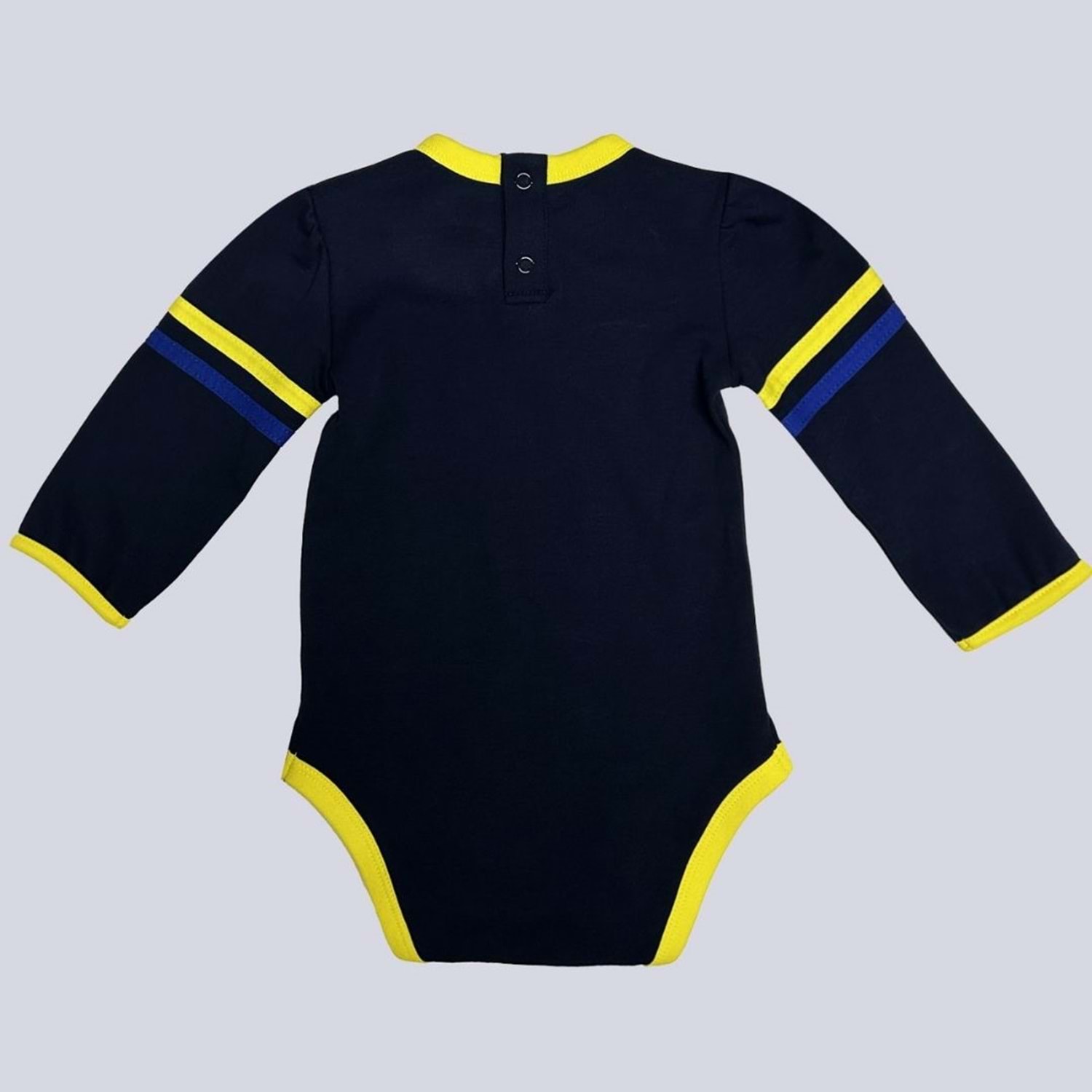 Minik taraftarlar için özel olarak tasarlanan Fenerbahçe Lacivert Bebek Body, hem rahatlığı hem de şık tasarımıyla dikkat çekiyor. Bebeğinizin narin cildine dosttur ve gün boyu konfor sağlar. Üzerindeki lisanslı Fenerbahçe logosu ile bebeğiniz ilk günlerinden itibaren takım ruhunu taşıyacak.
