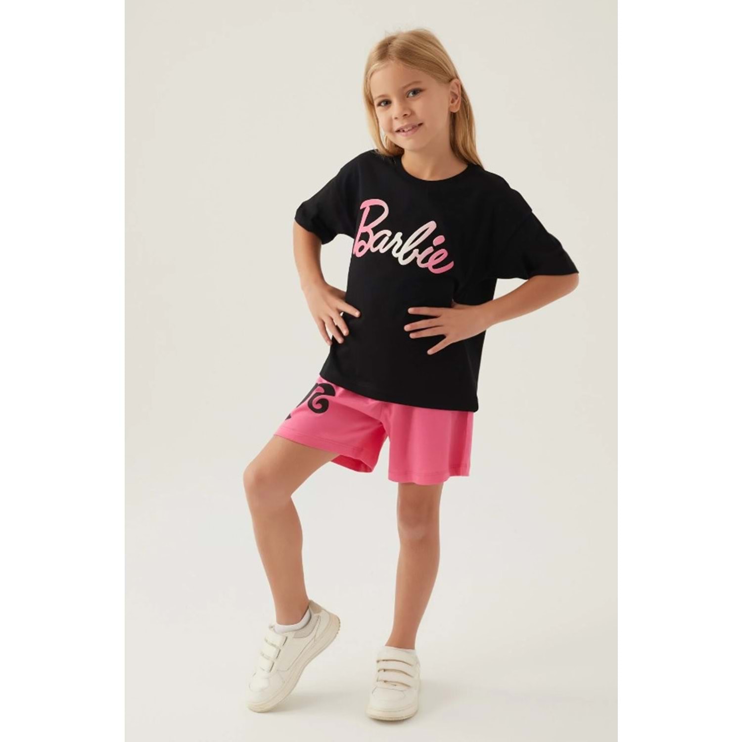 Barbie Lisanslı L1703 Patterned T-Shirt ve Şort Alt Üst Kız Çocuk Takımı