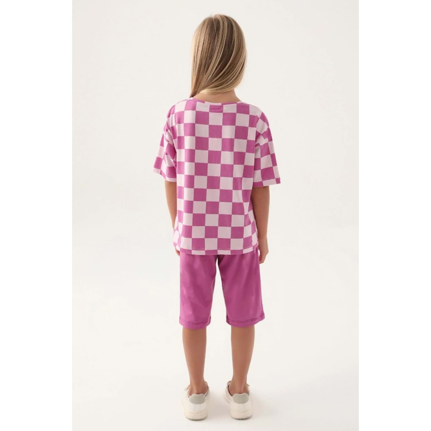 U.S. Polo Assn. Lisanslı US1811 Plaid T-Shirt ve Kapri Alt Üst Kız Çocuk Takımı
