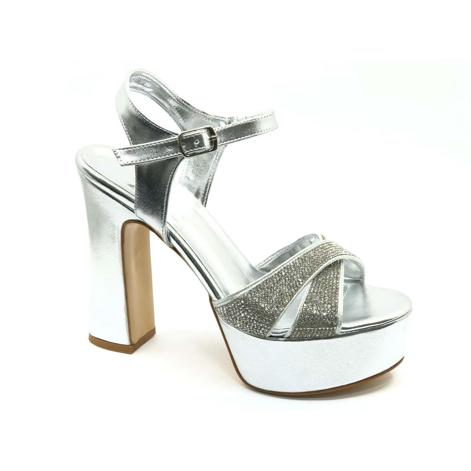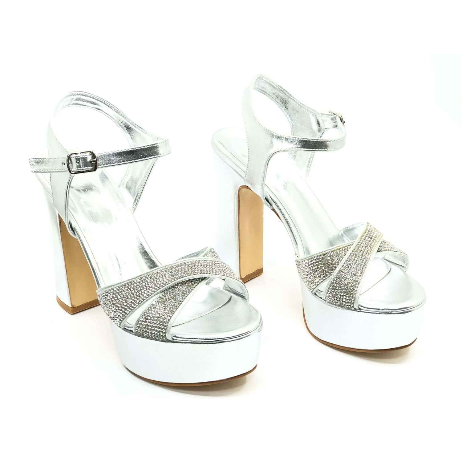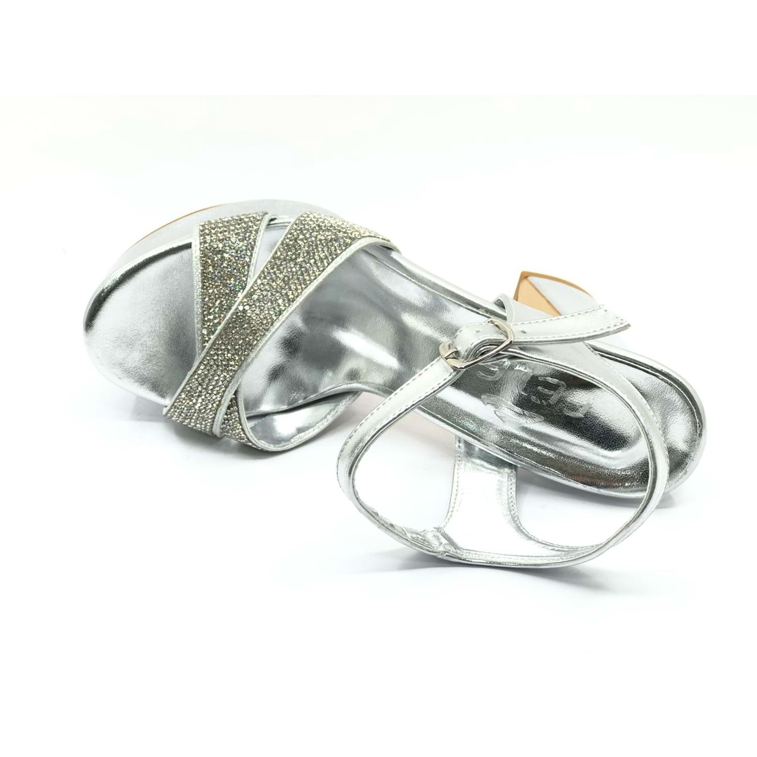 Feles 13 cm Yüksek Platform Çapraz Bant Topuklu Taşlı Kadın Abiye Ayakkabı