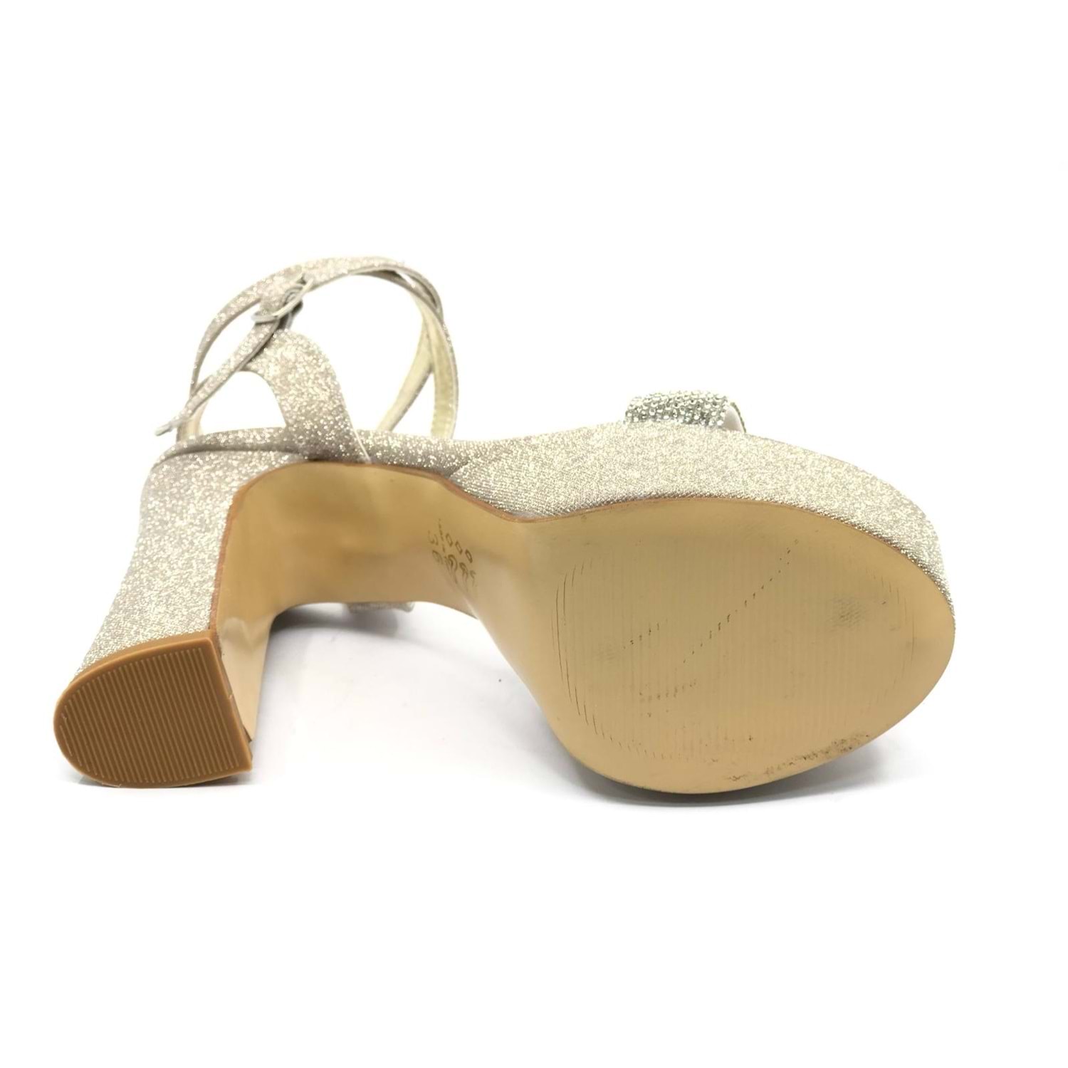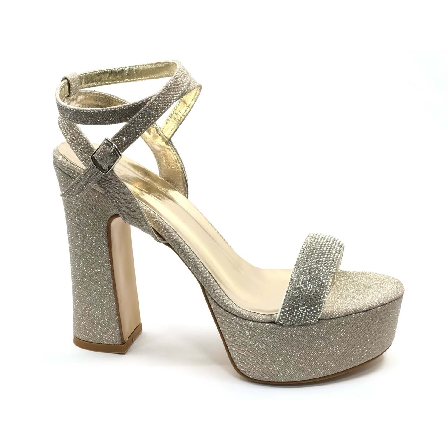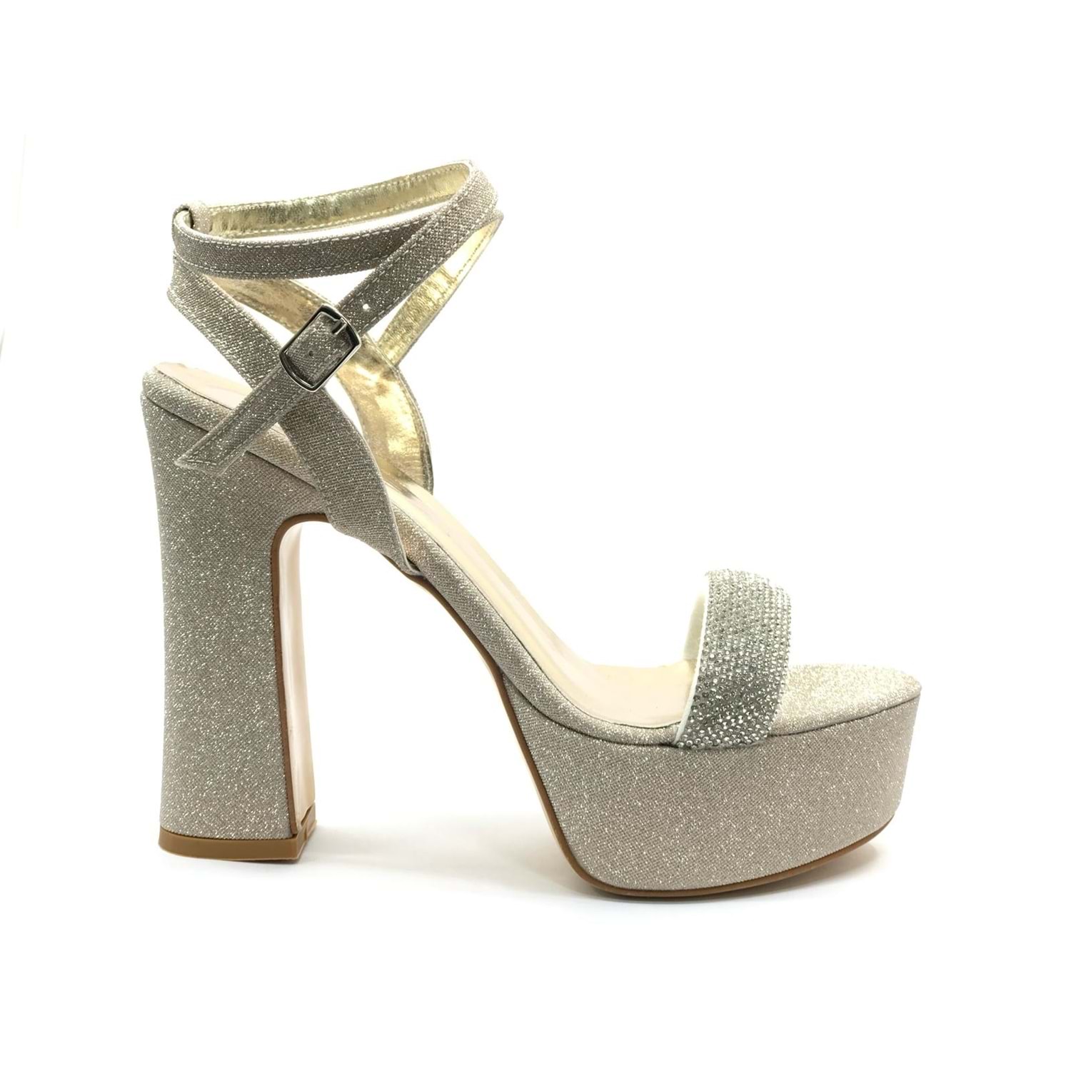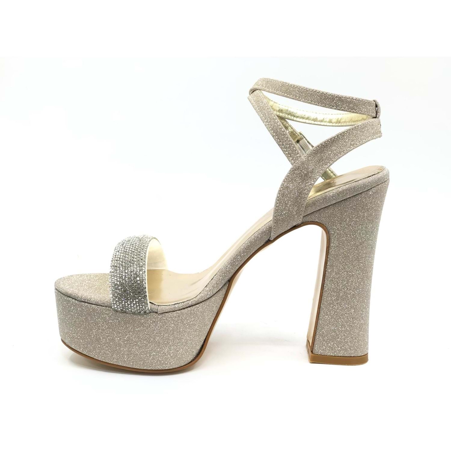 Feles 13 cm Yüksek Platform Tek Bant Topuklu Taşlı Kadın Abiye Ayakkabı
