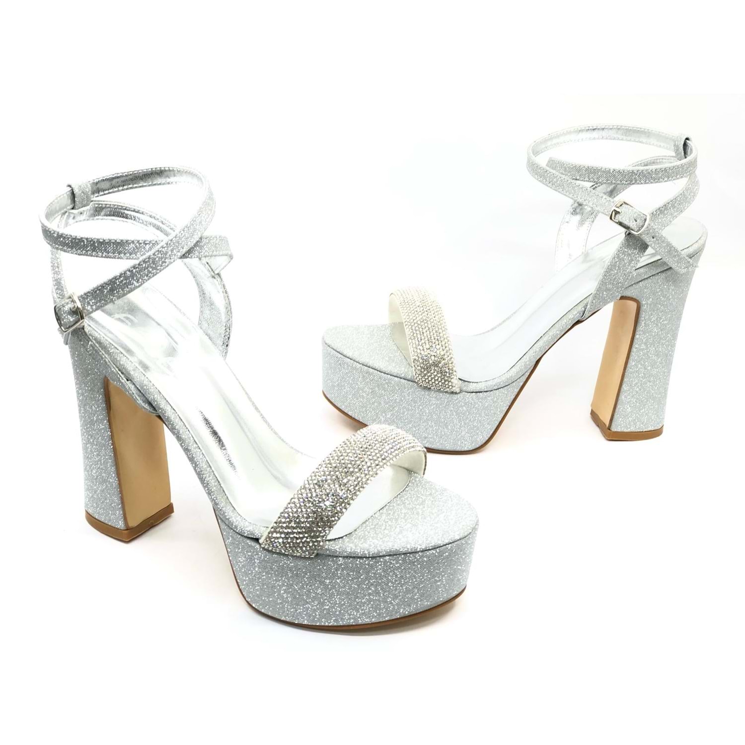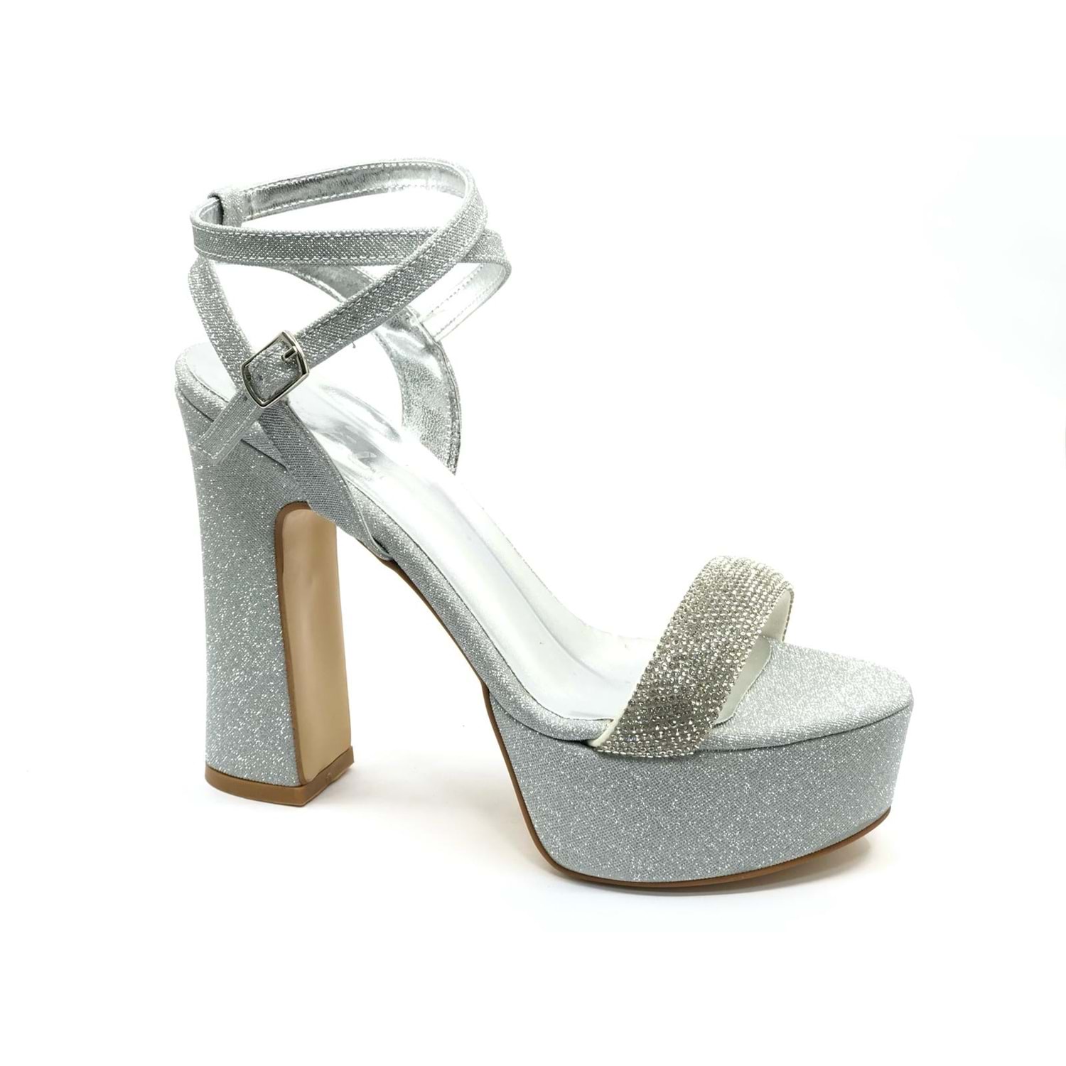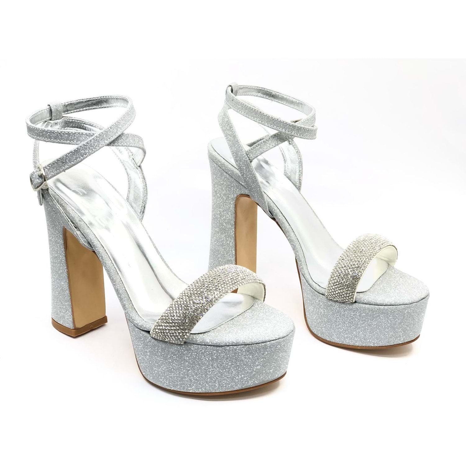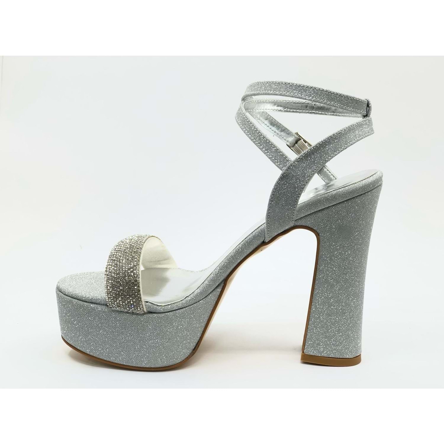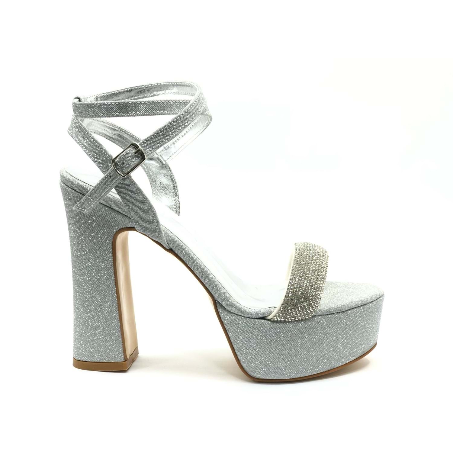 Feles 13 cm Yüksek Platform Tek Bant Topuklu Taşlı Kadın Abiye Ayakkabı