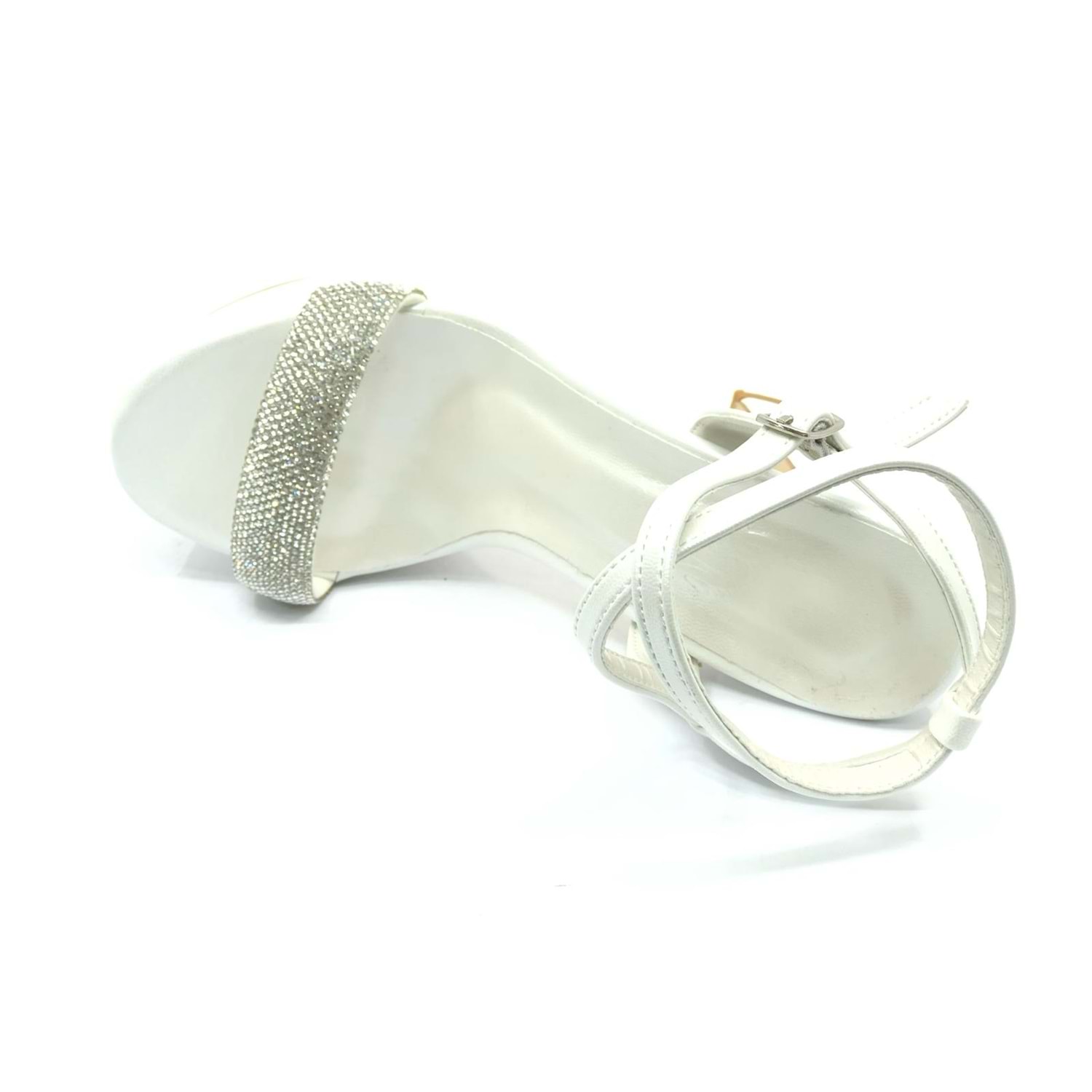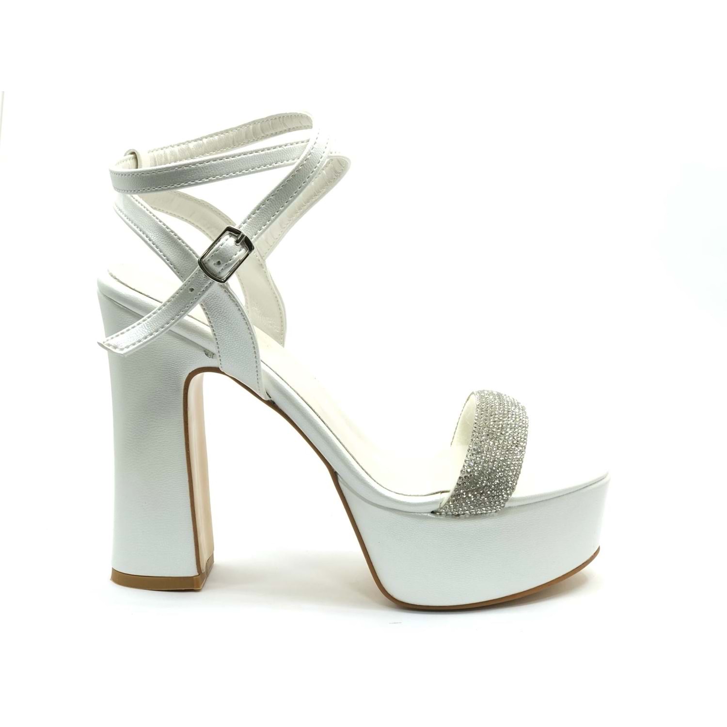 Feles 13 cm Yüksek Platform Tek Bant Topuklu Taşlı Kadın Abiye Ayakkabı