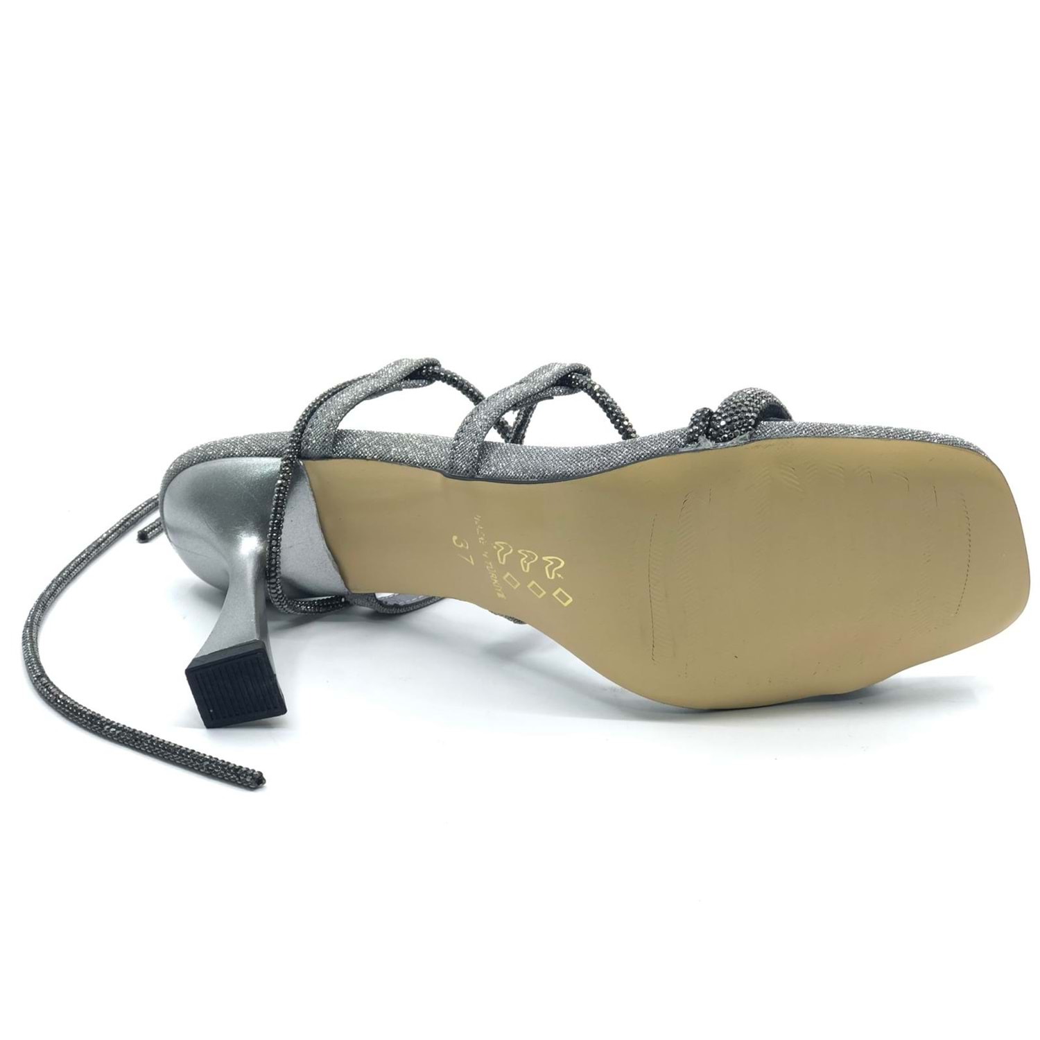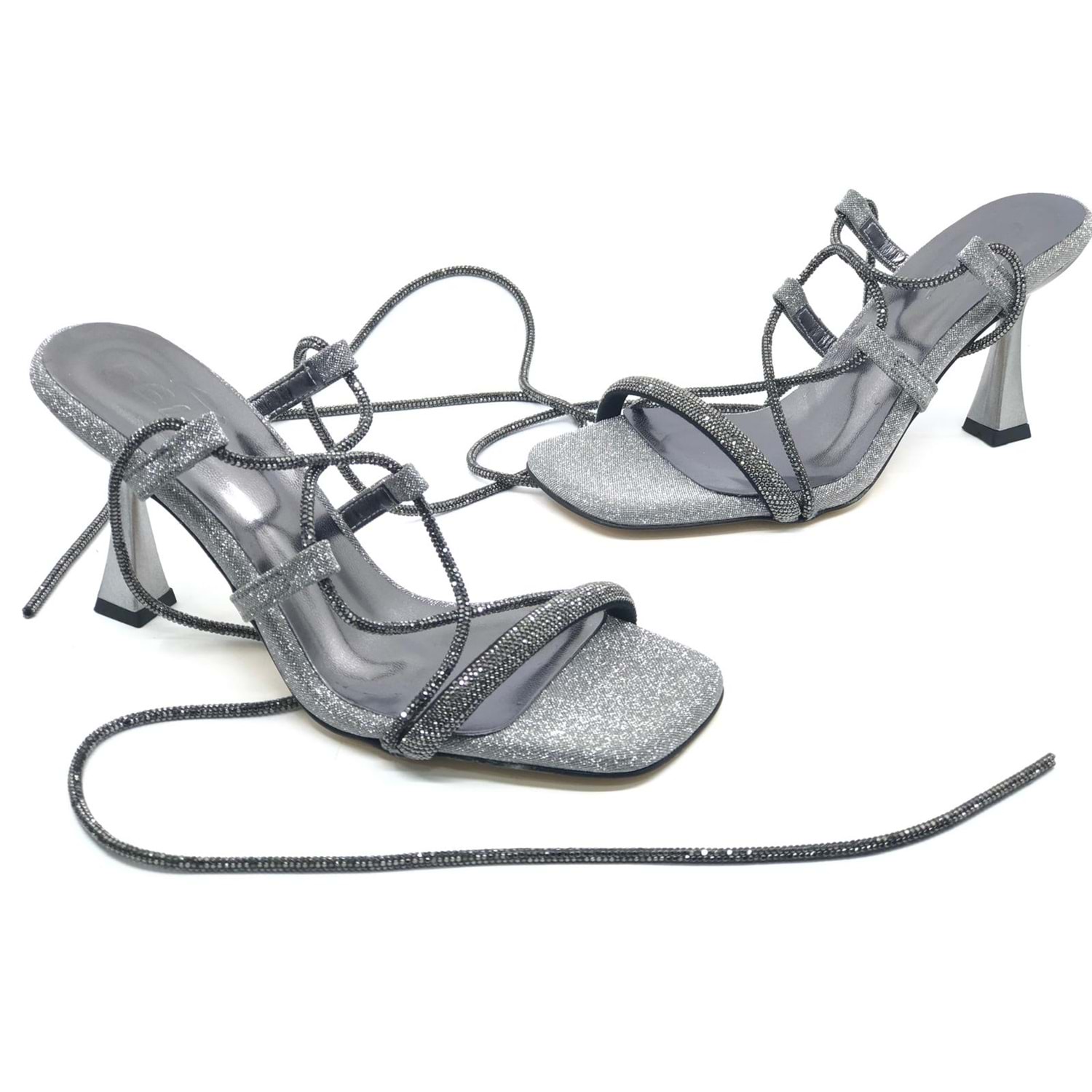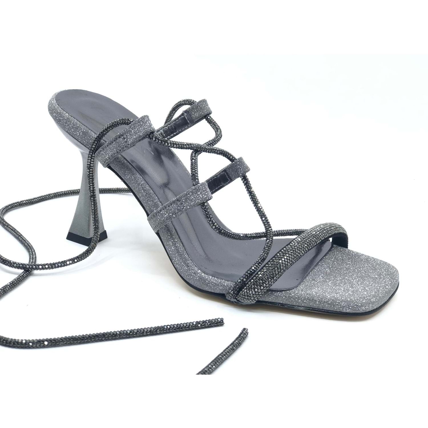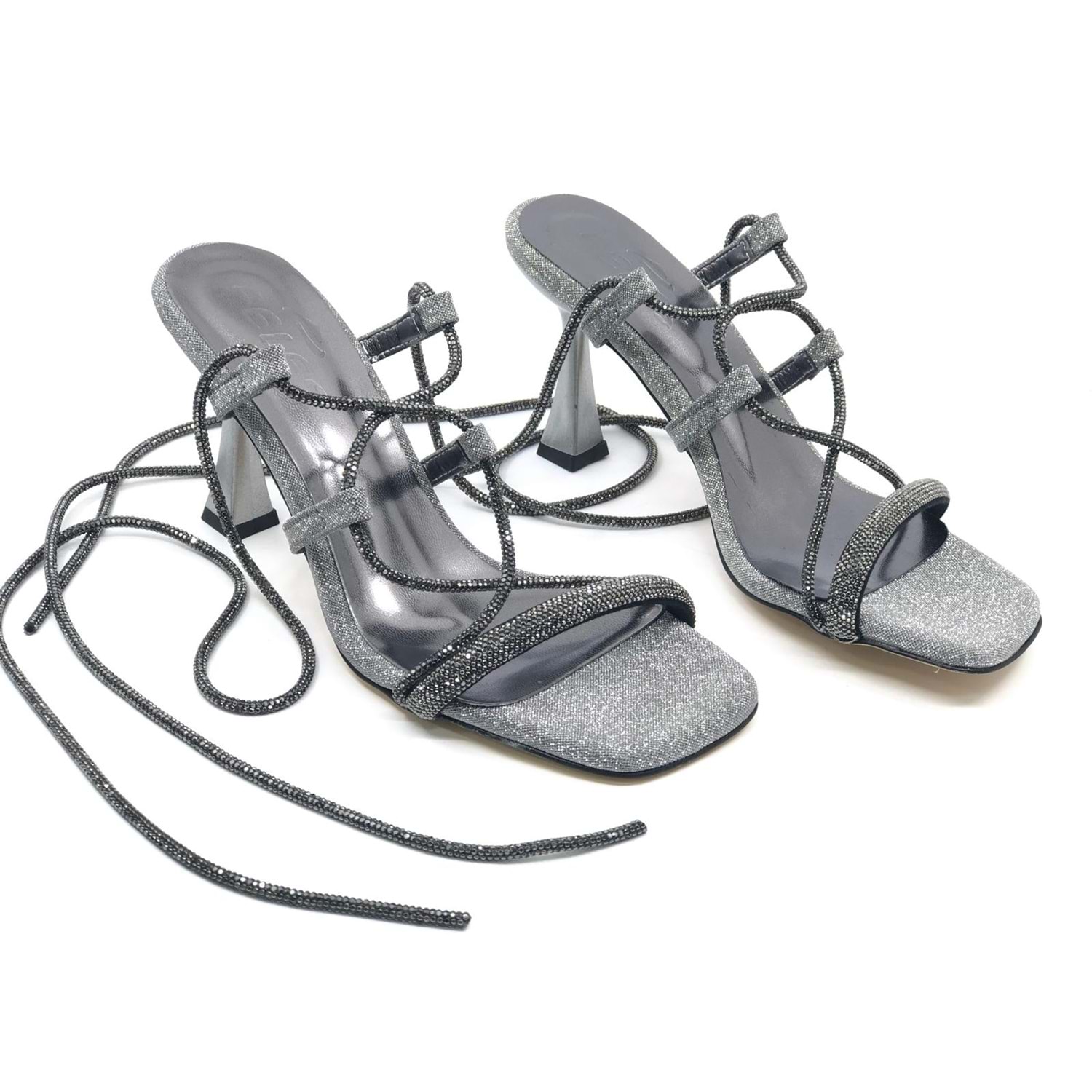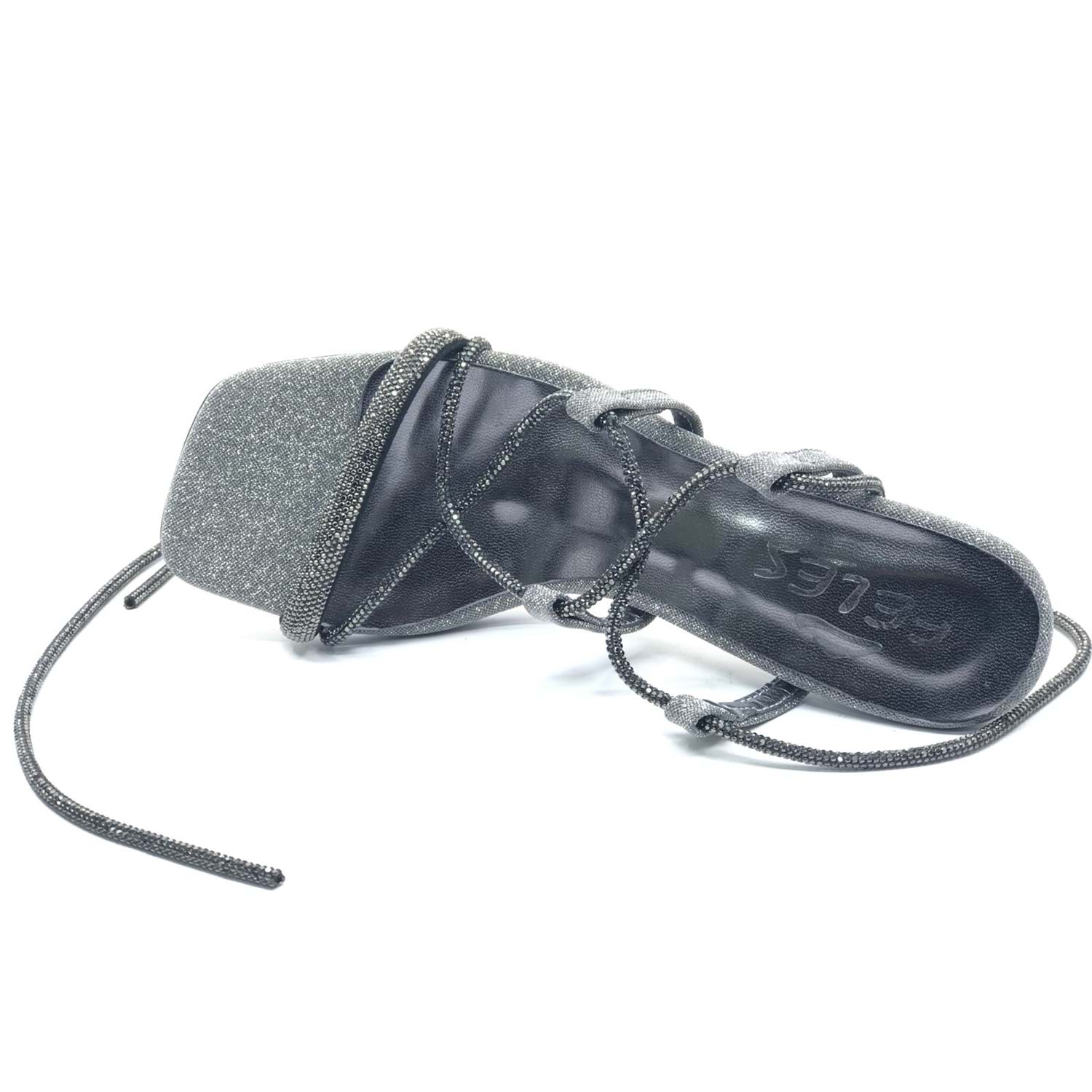 Feles Bilekten Bağlamalı Taş Detaylı Topuklu Kadın Abiye Ayakkabı