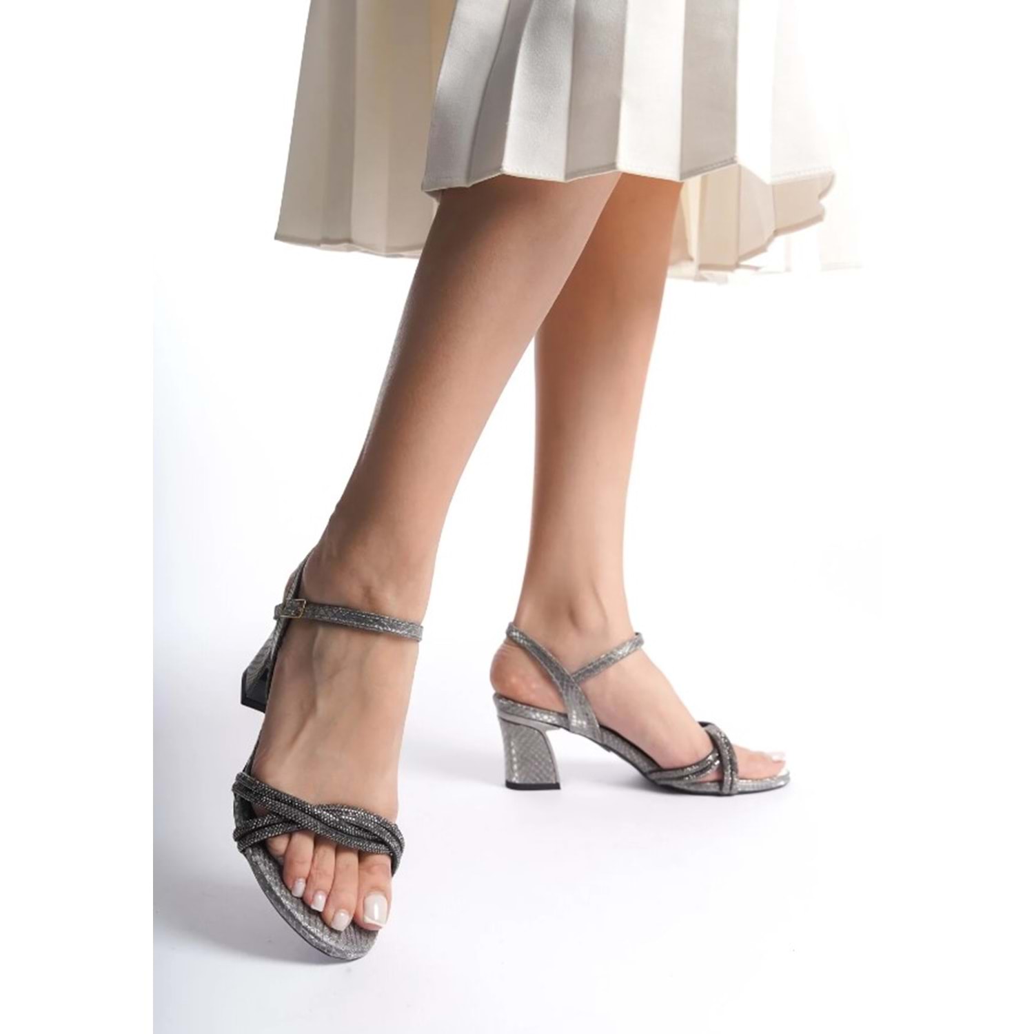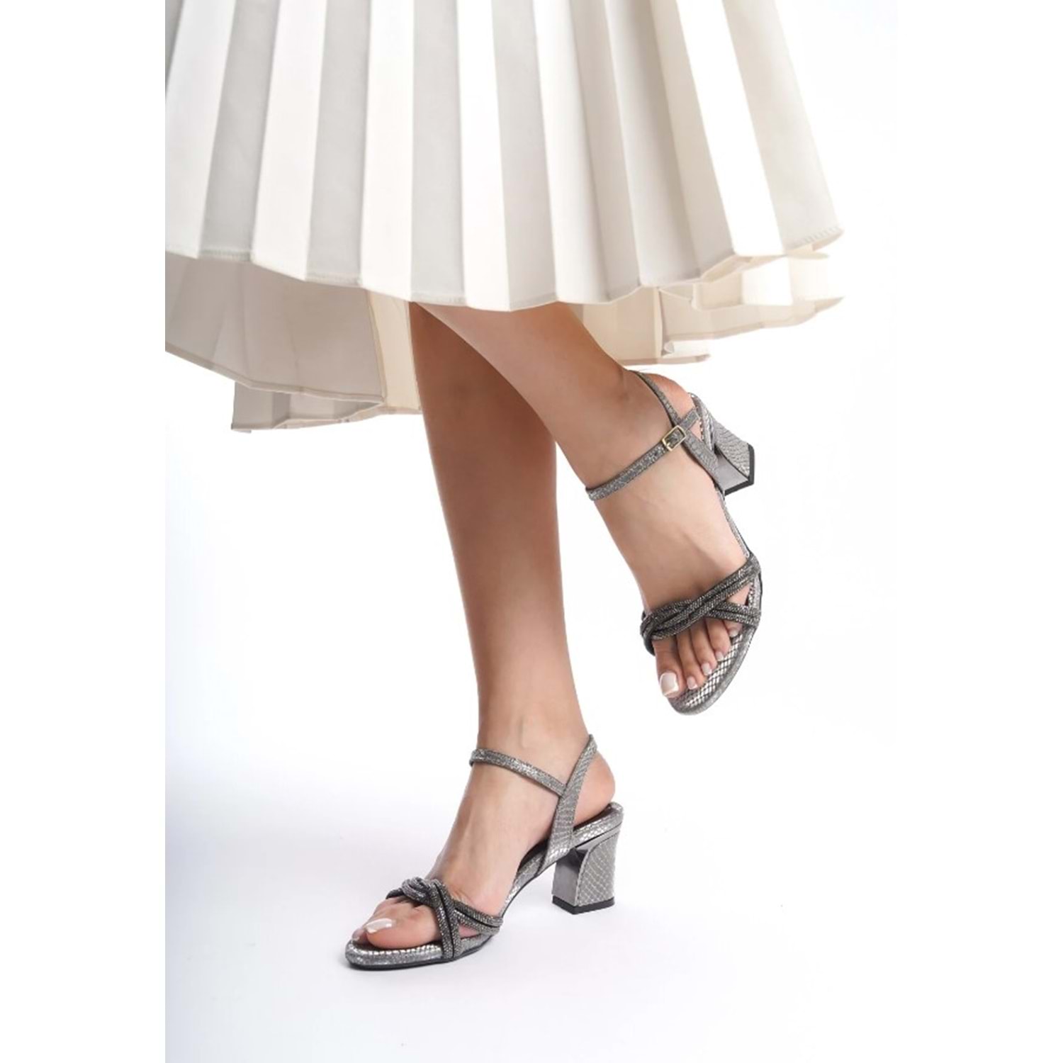 Feles Burgu Taş Detaylı Topuklu Kadın Abiye Ayakkabı