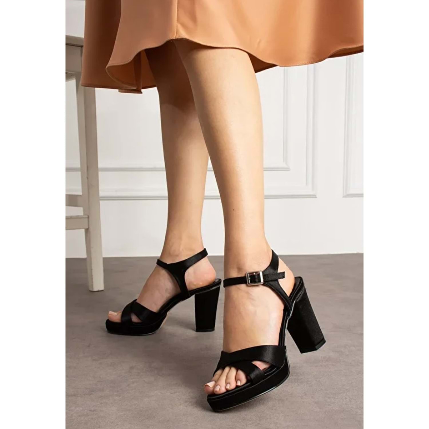 Feles Çapraz 10 cm Platform Topuklu Kadın Abiye Ayakkabı