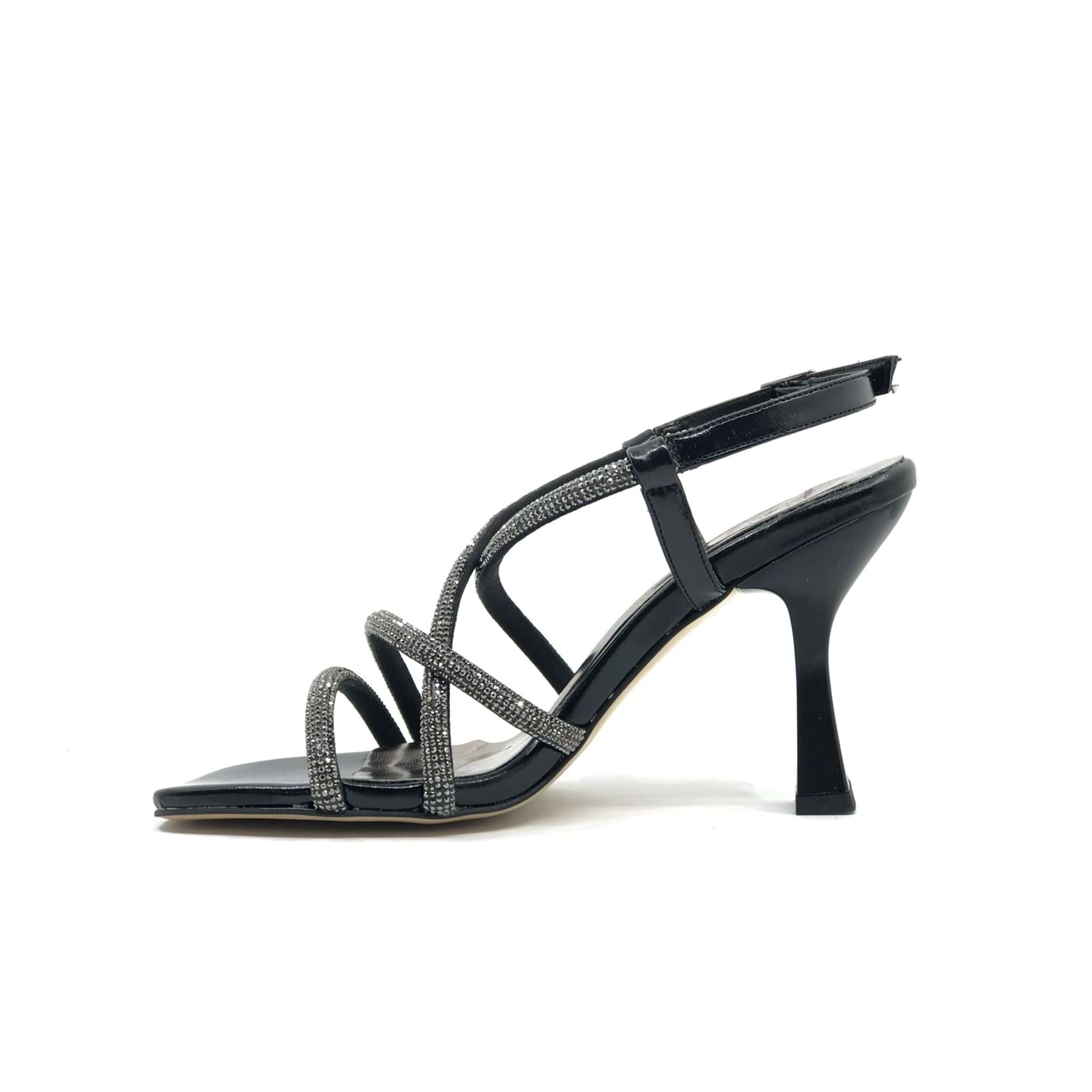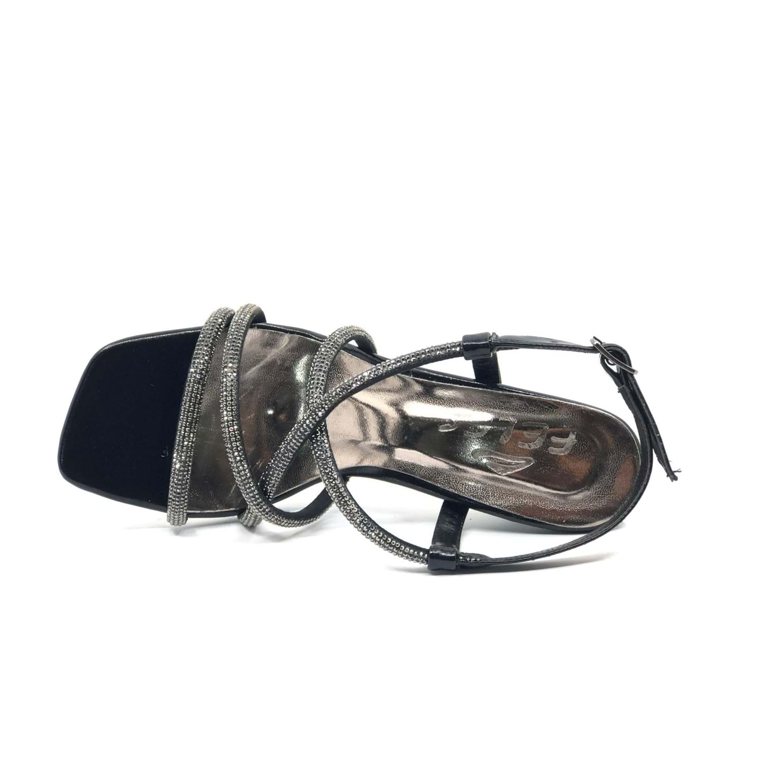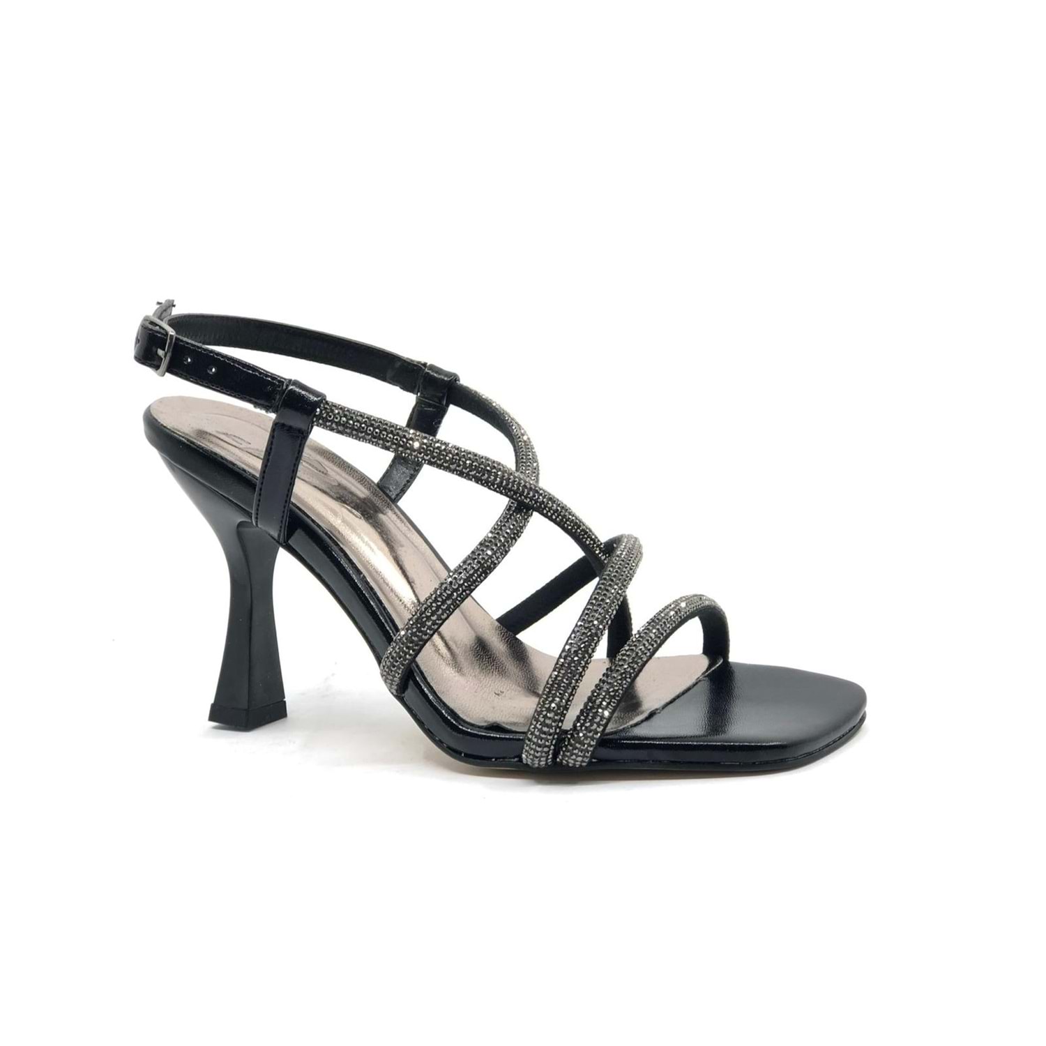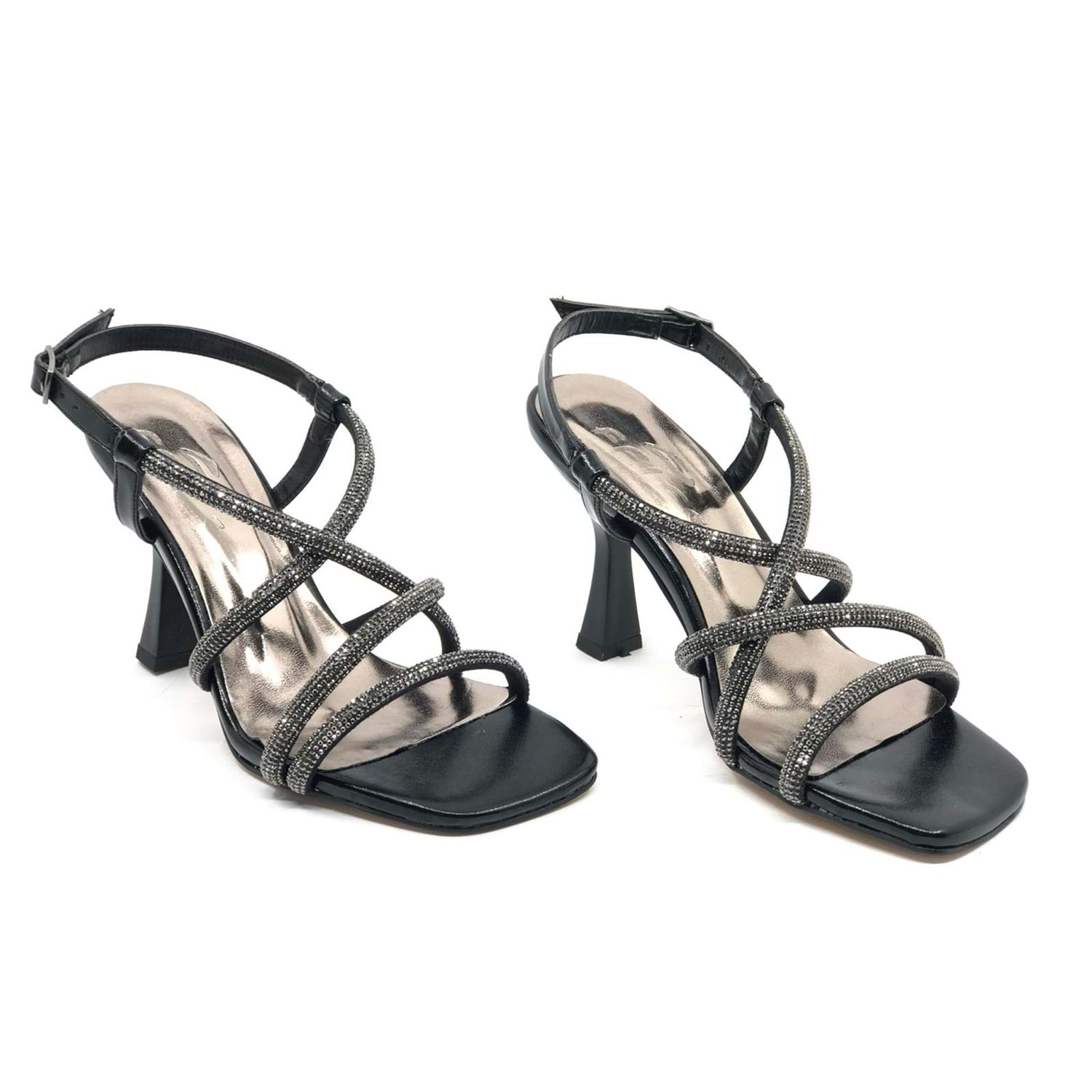 Feles Çapraz Şerit Taş Biyeli Topuklu Kadın Abiye Ayakkabı