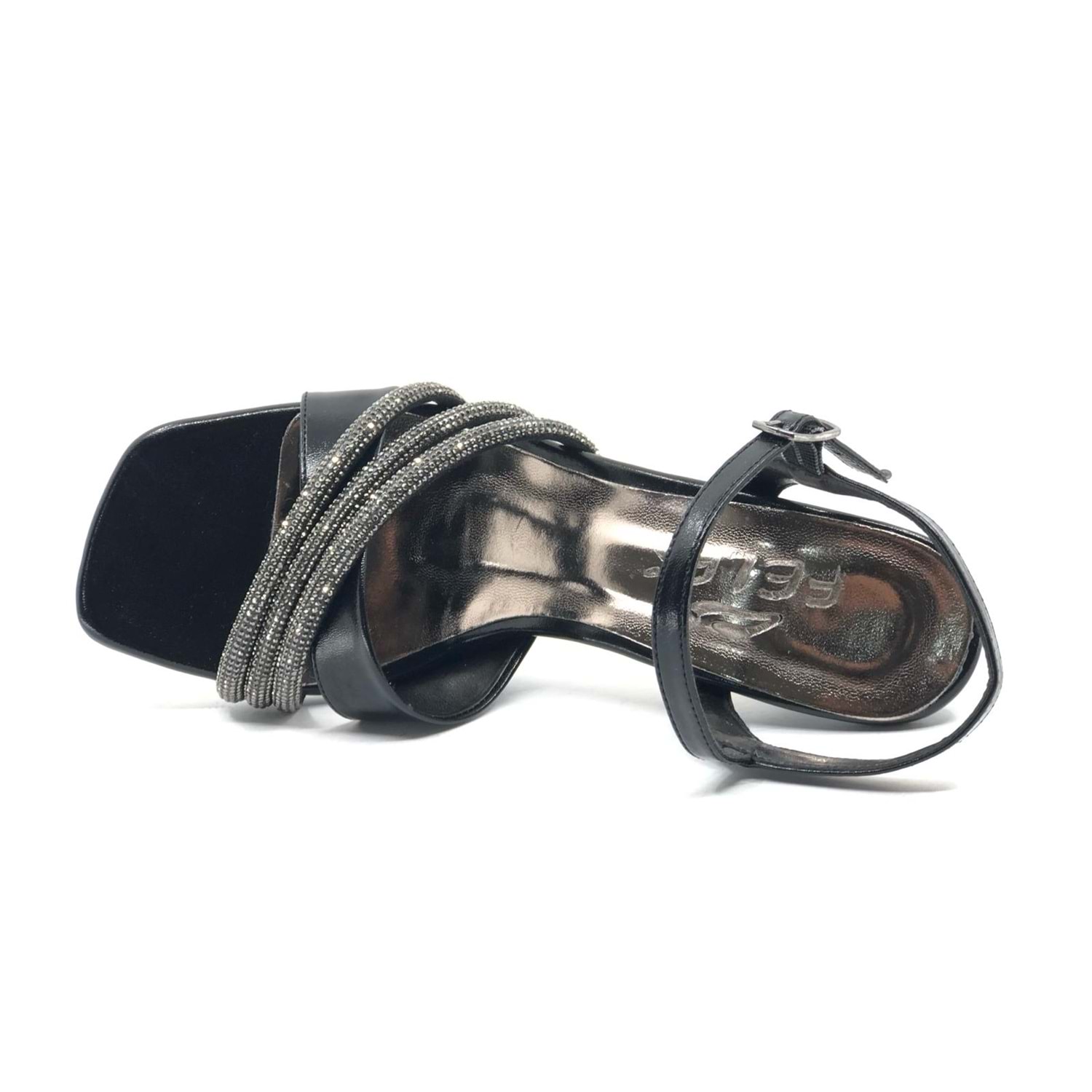 Feles Çapraz Şerit Taşlı 8 Cm Topuklu Kadın Abiye Ayakkabı