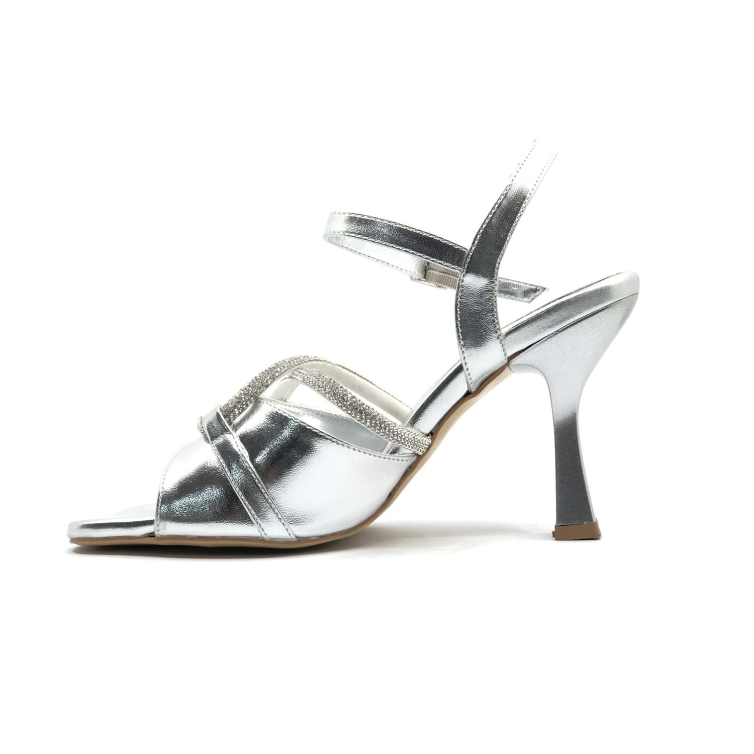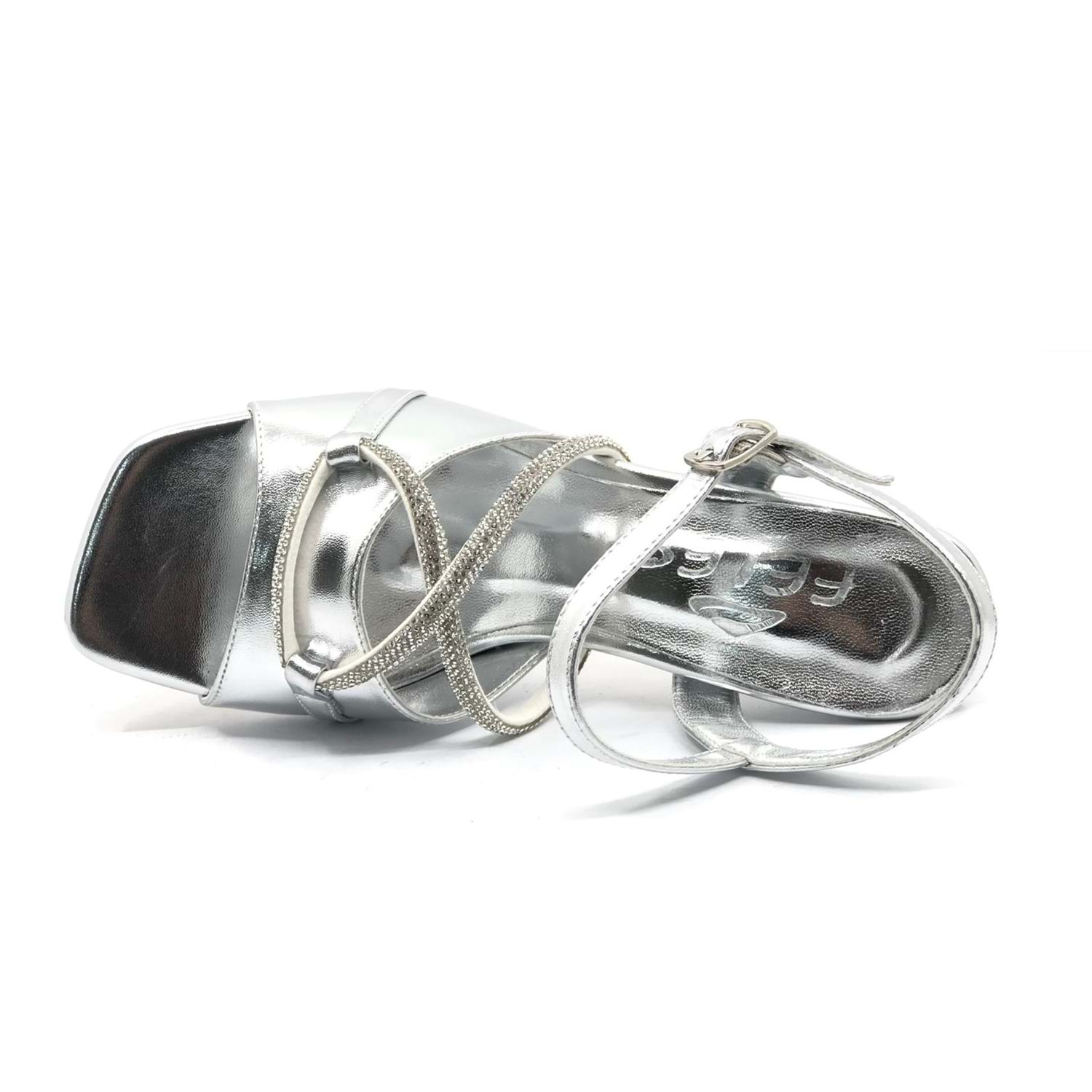 Feles Çapraz Şerit Taşlı Topuklu Kadın Abiye Ayakkabı