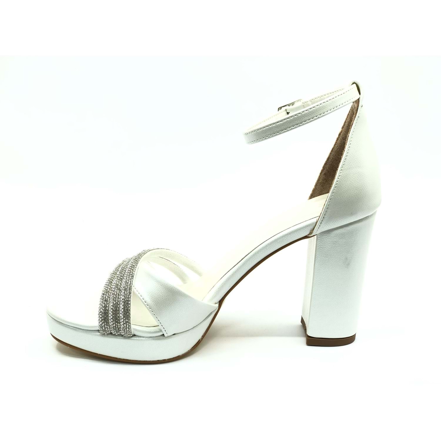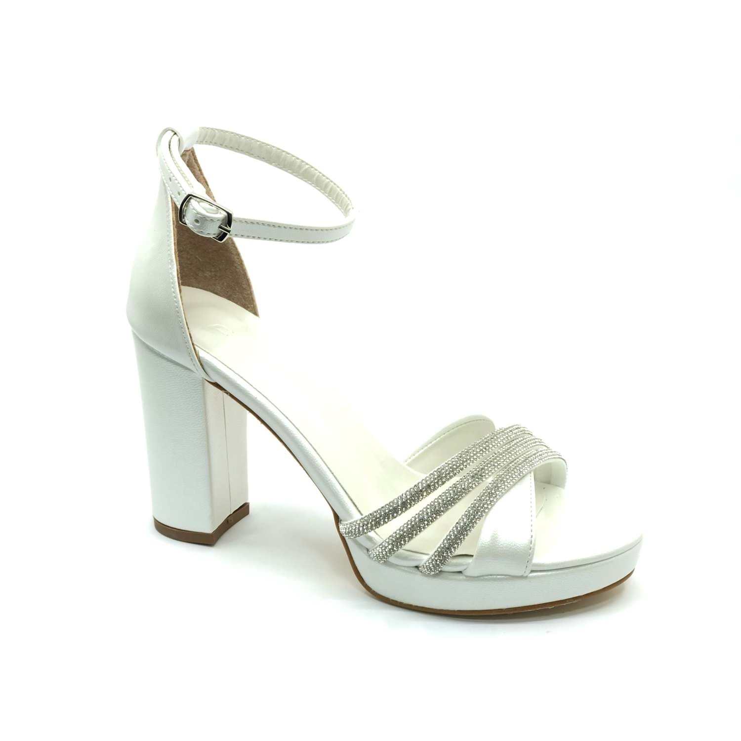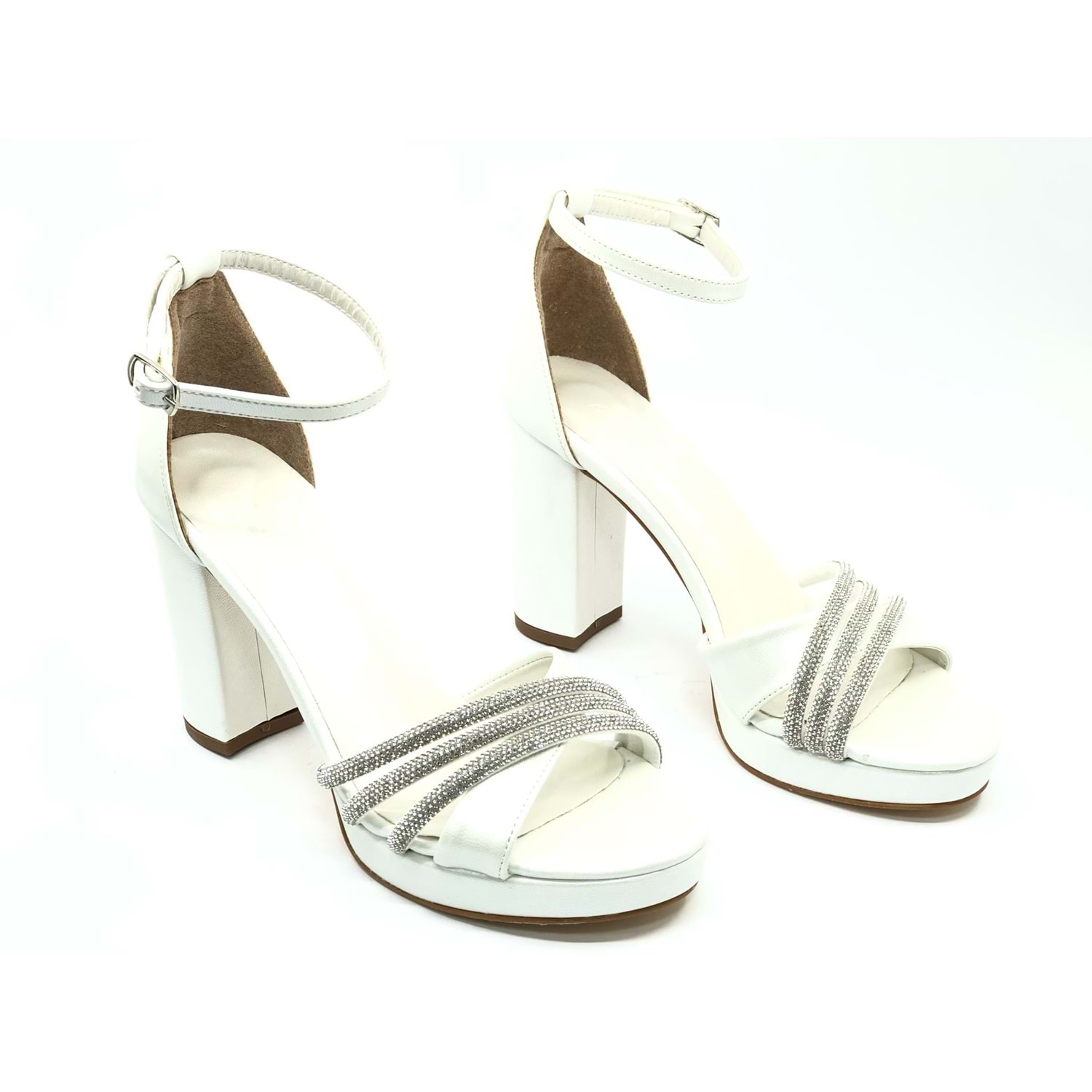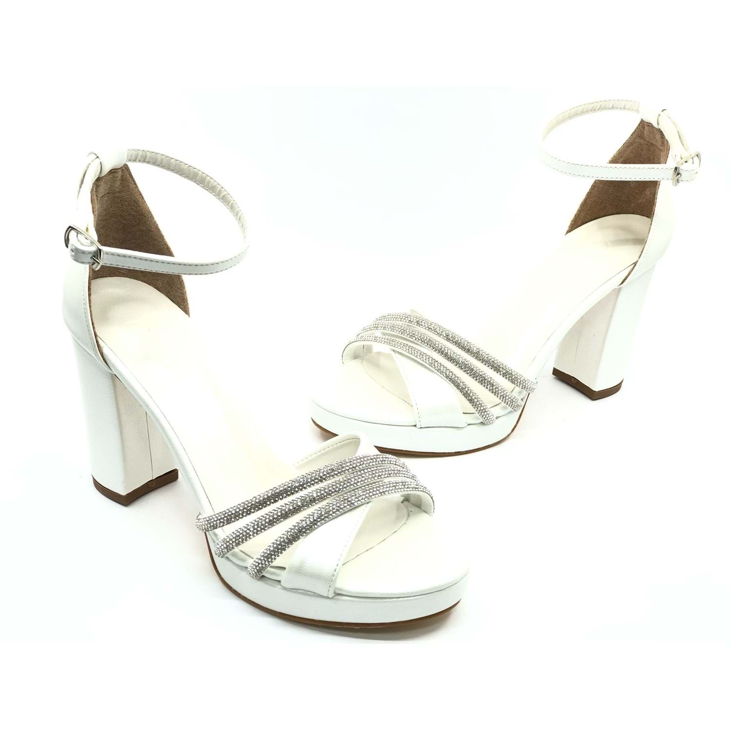 Feles Çapraz Üç Şerit Taşlı 10 cm Platform Topuklu Kadın Abiye Ayakkabı
