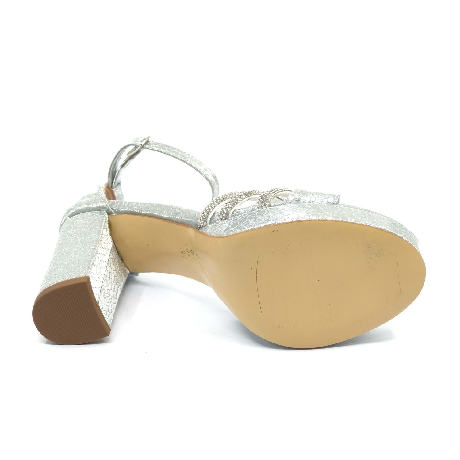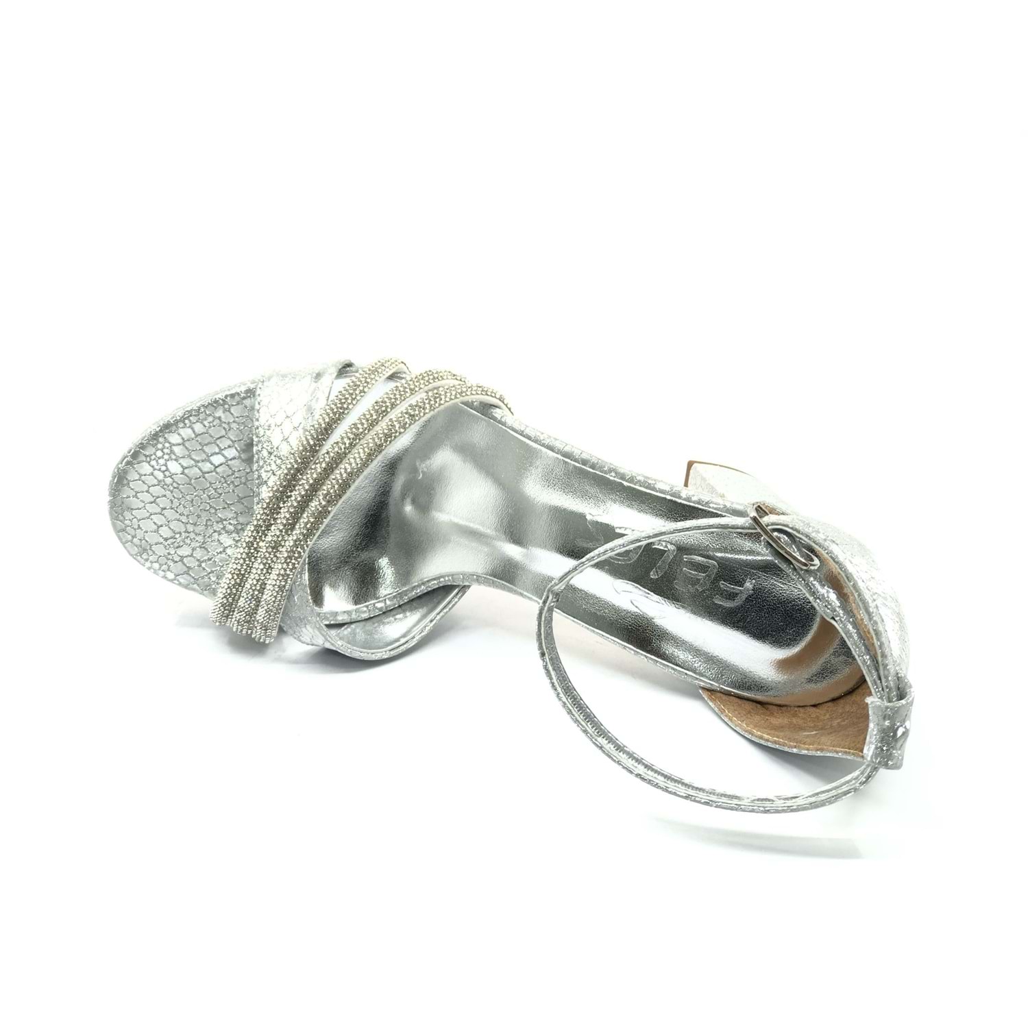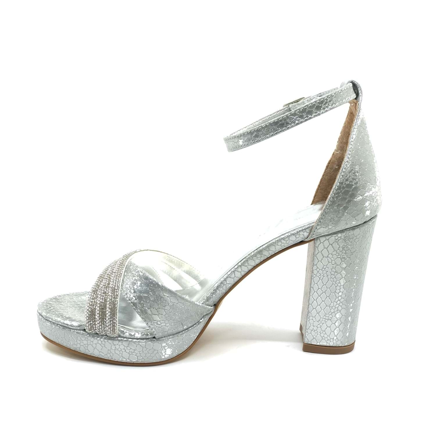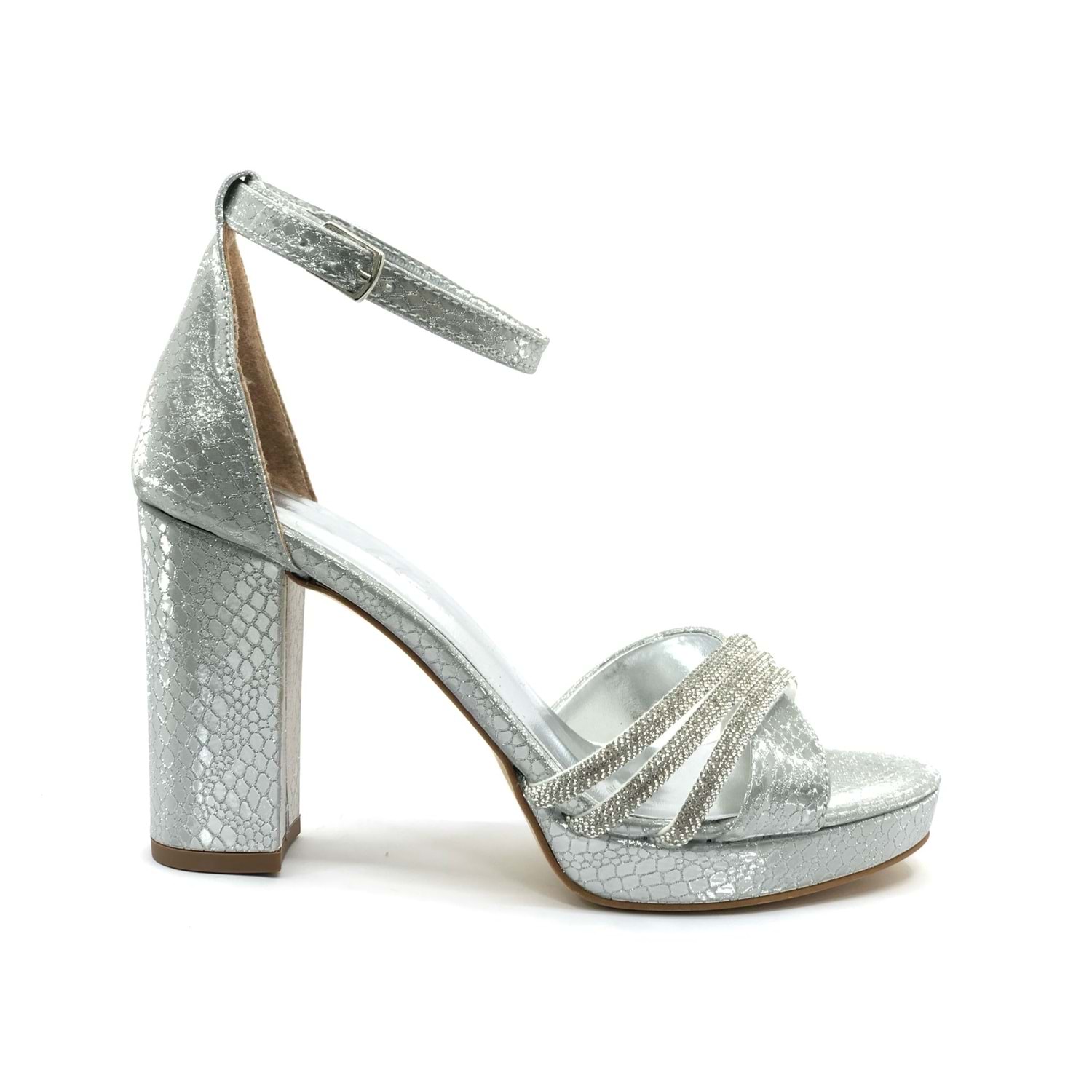 Feles Çapraz Üç Şerit Taşlı 10 cm Platform Topuklu Kadın Abiye Ayakkabı