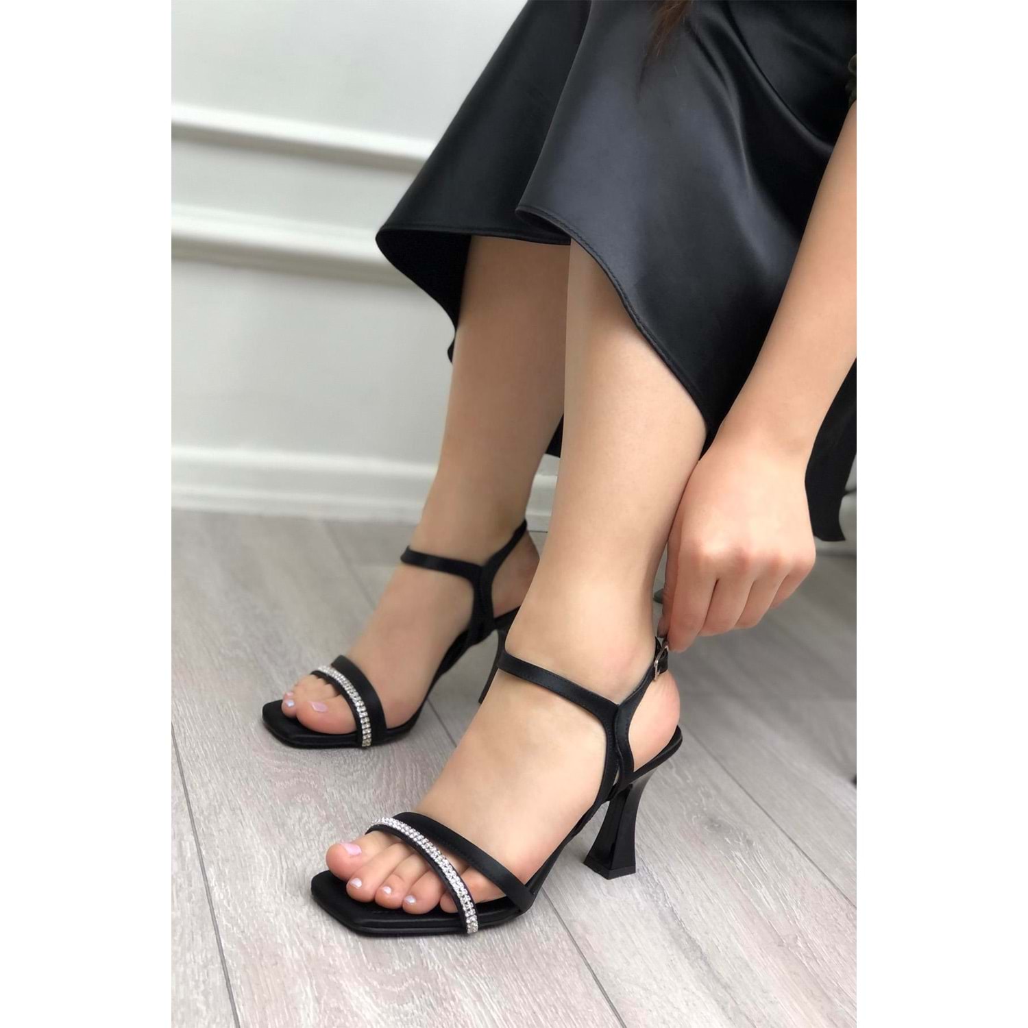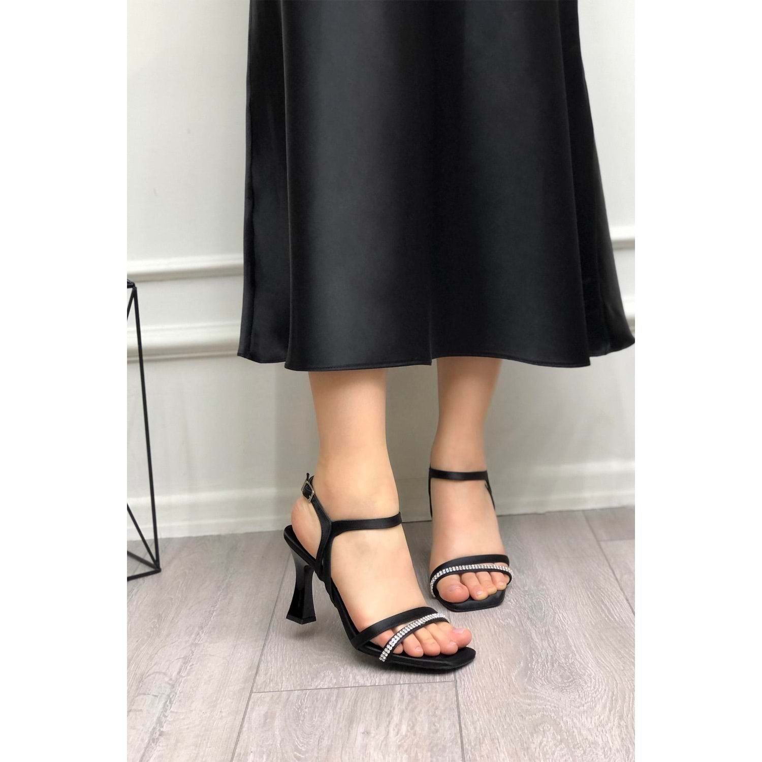 Feles Çift Şerit Taş Biyeli Topuklu Kadın Abiye Ayakkabı