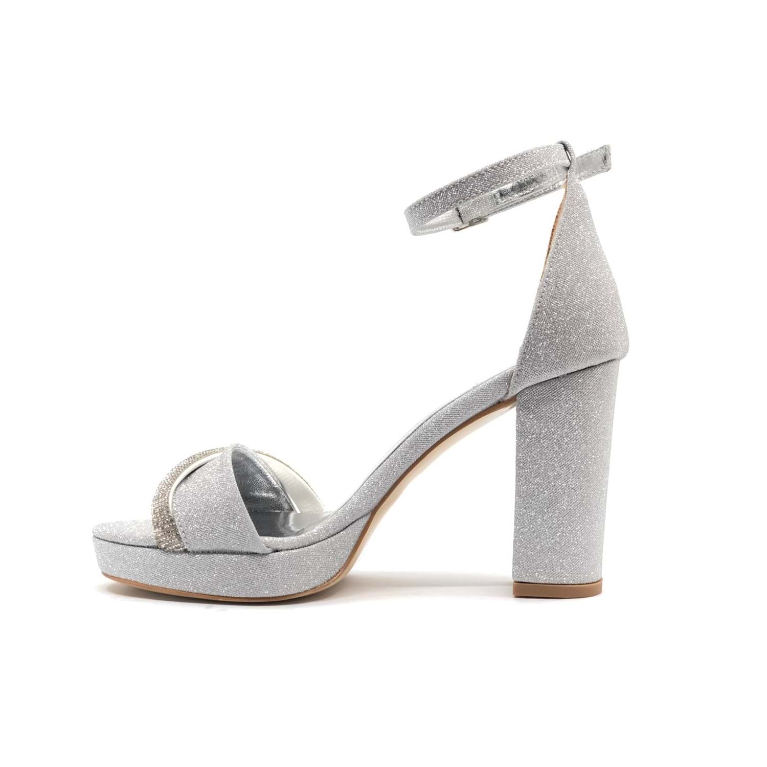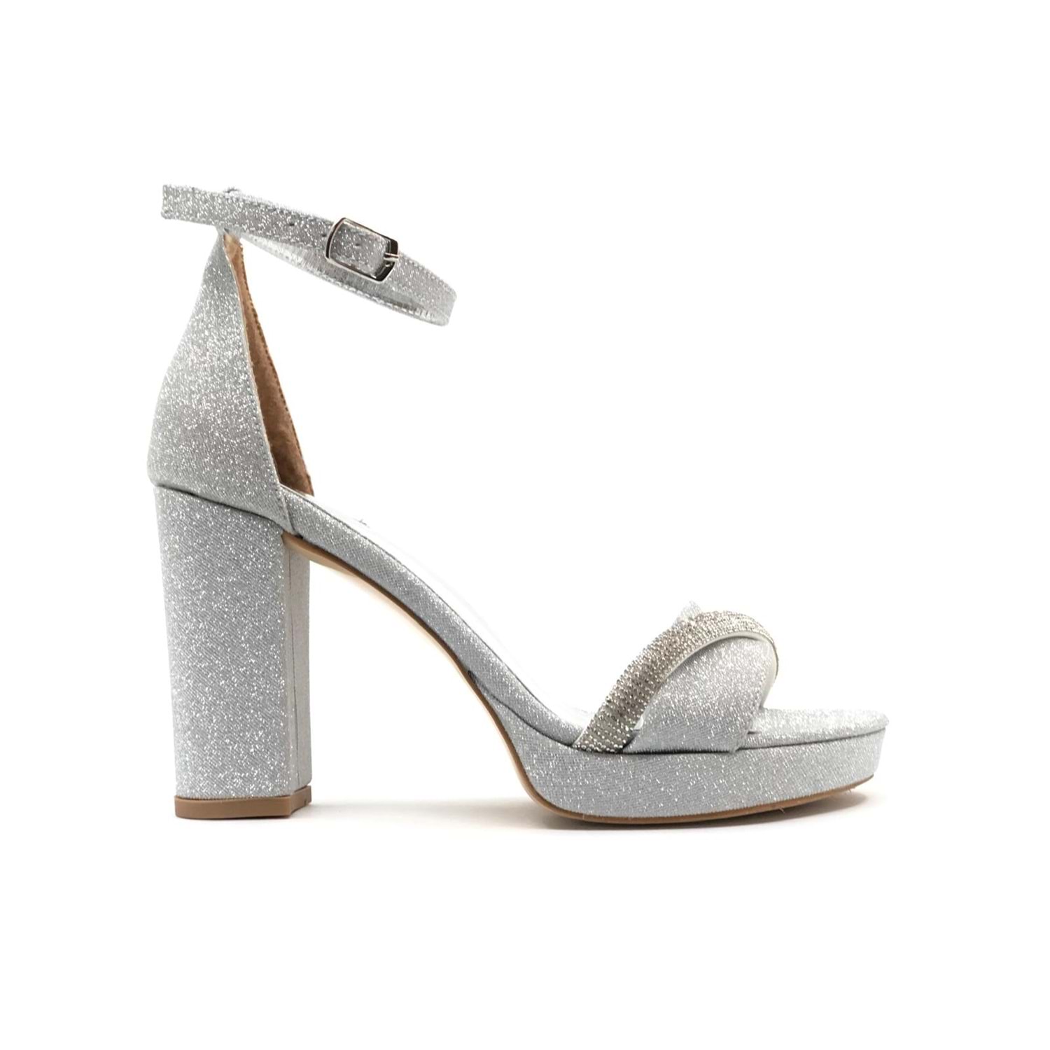 Feles Şerit Taş Detaylı Tek Bant Platform 11 cm Topuklu Kadın Ayakkabı