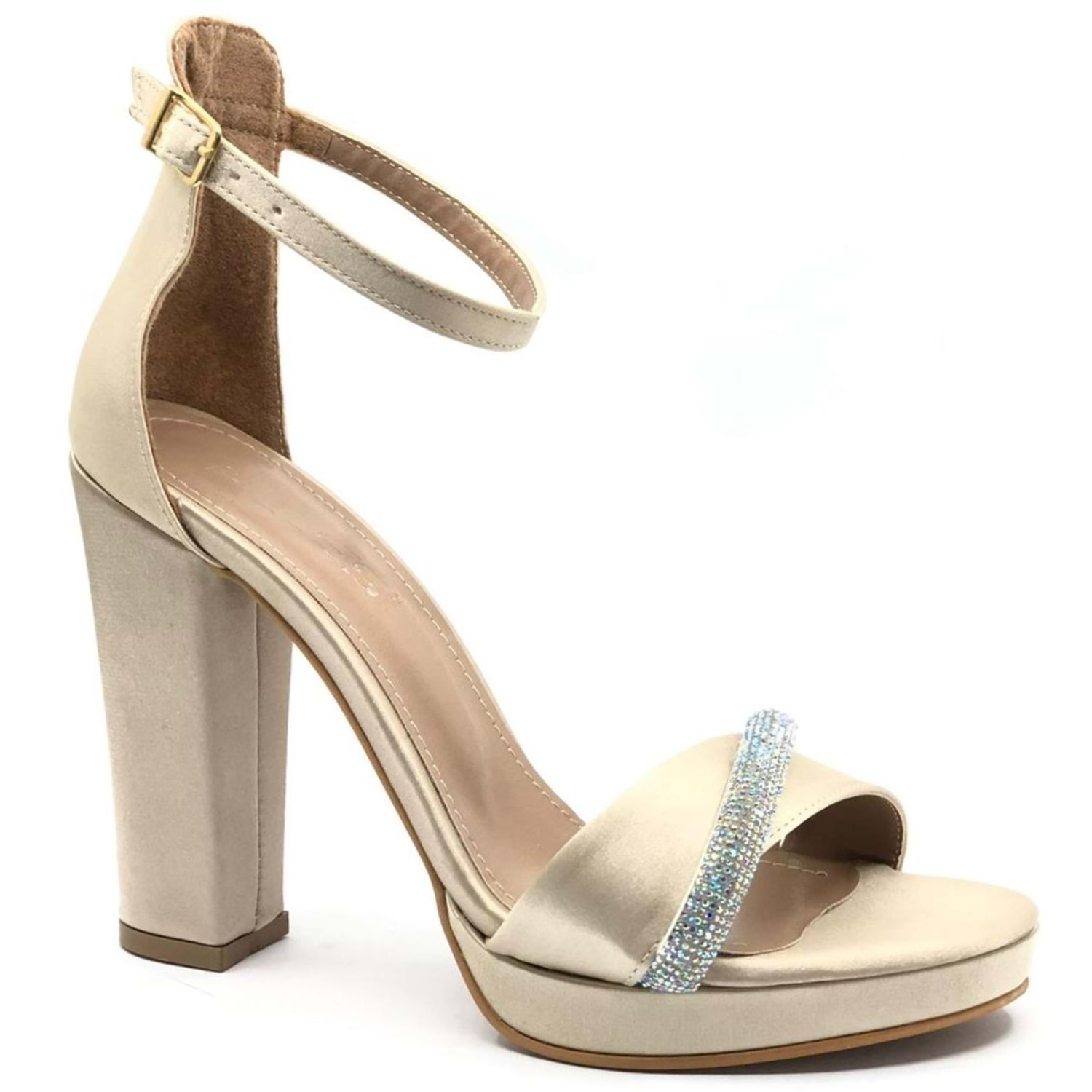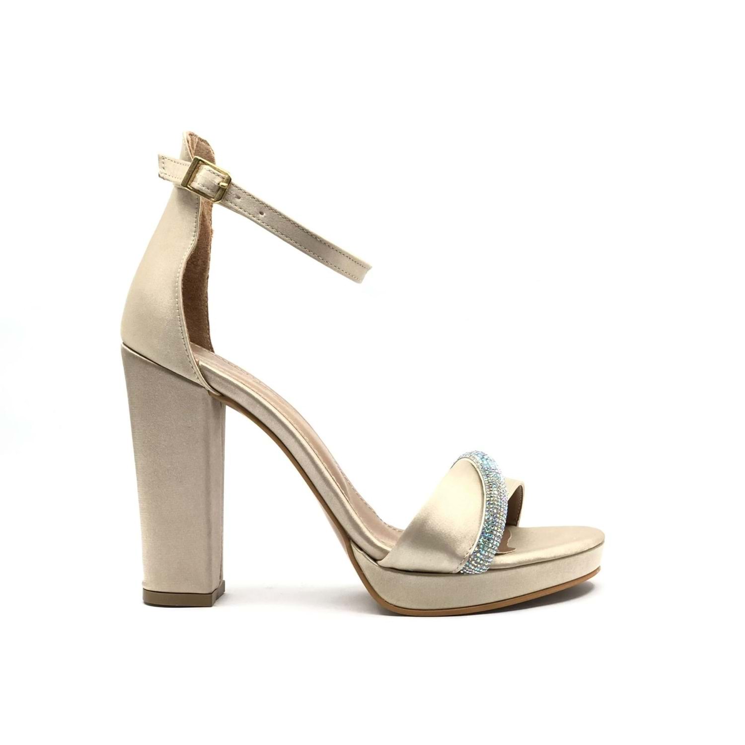 Feles Şerit Taş Detaylı Tek Bant Platform 11 cm Topuklu Kadın Ayakkabı