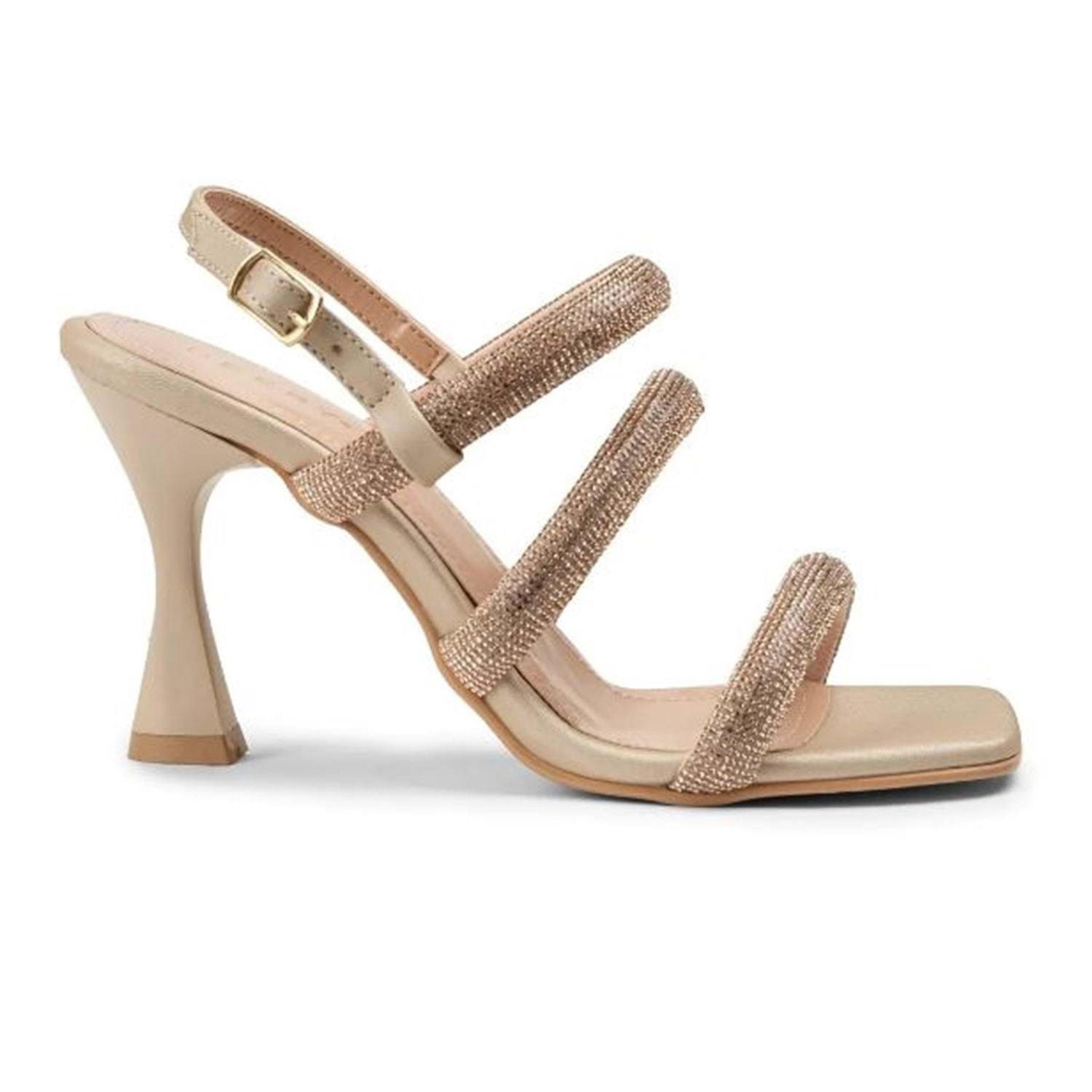 Feles Üç Şerit Taş Biyeli Topuklu Kadın Abiye Ayakkabı