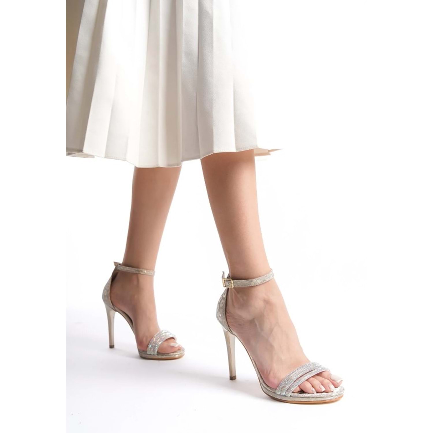 Feles Üç Şerit Taş Detaylı Tek Bant Platform 11 cm İnce Topuklu Kadın Ayakkabı