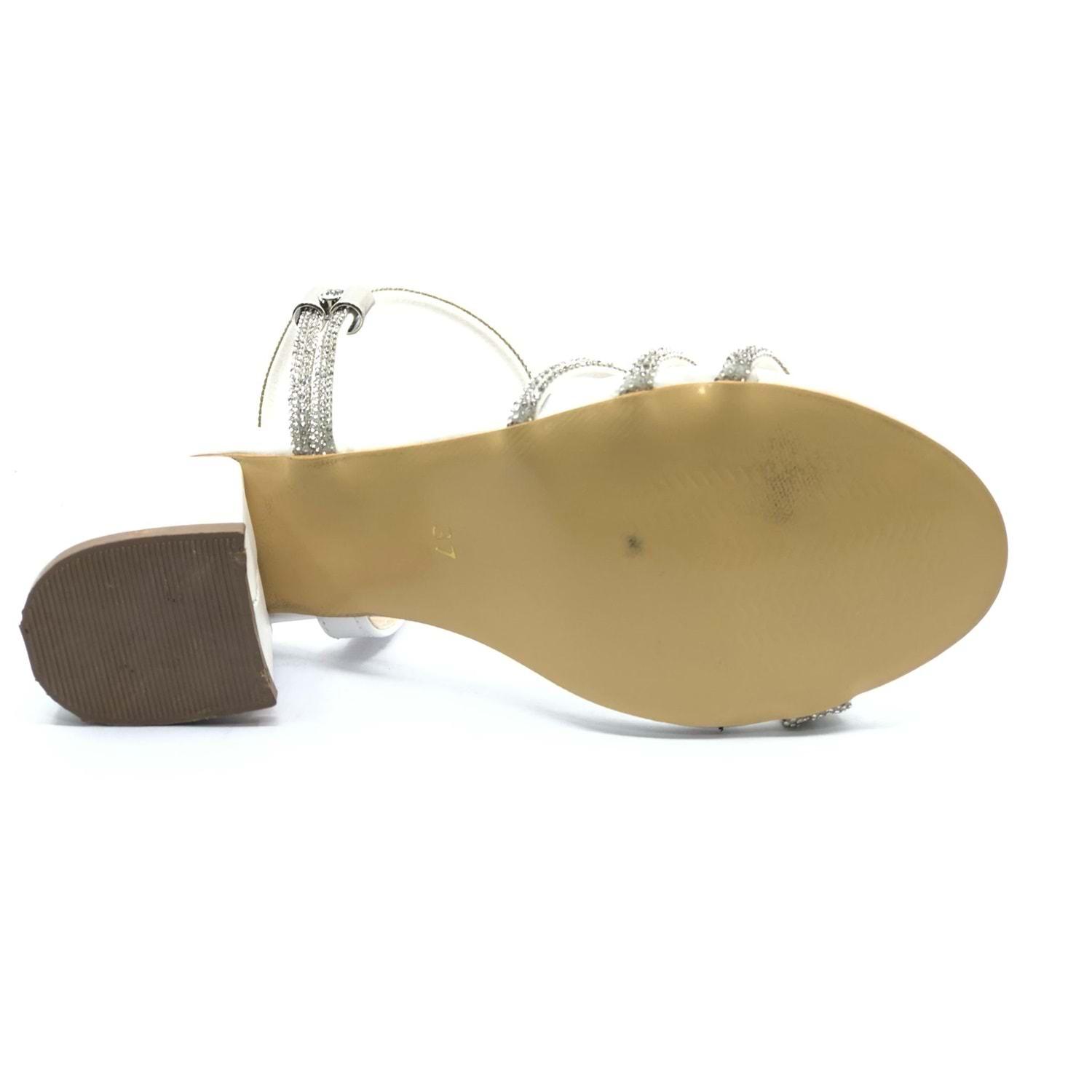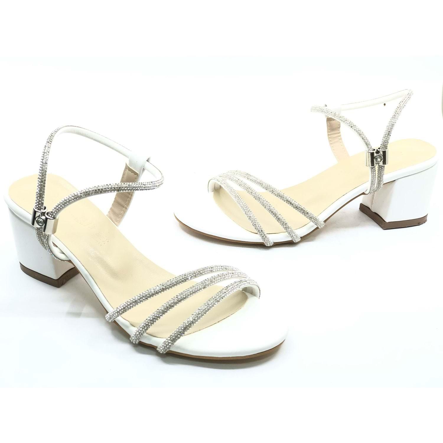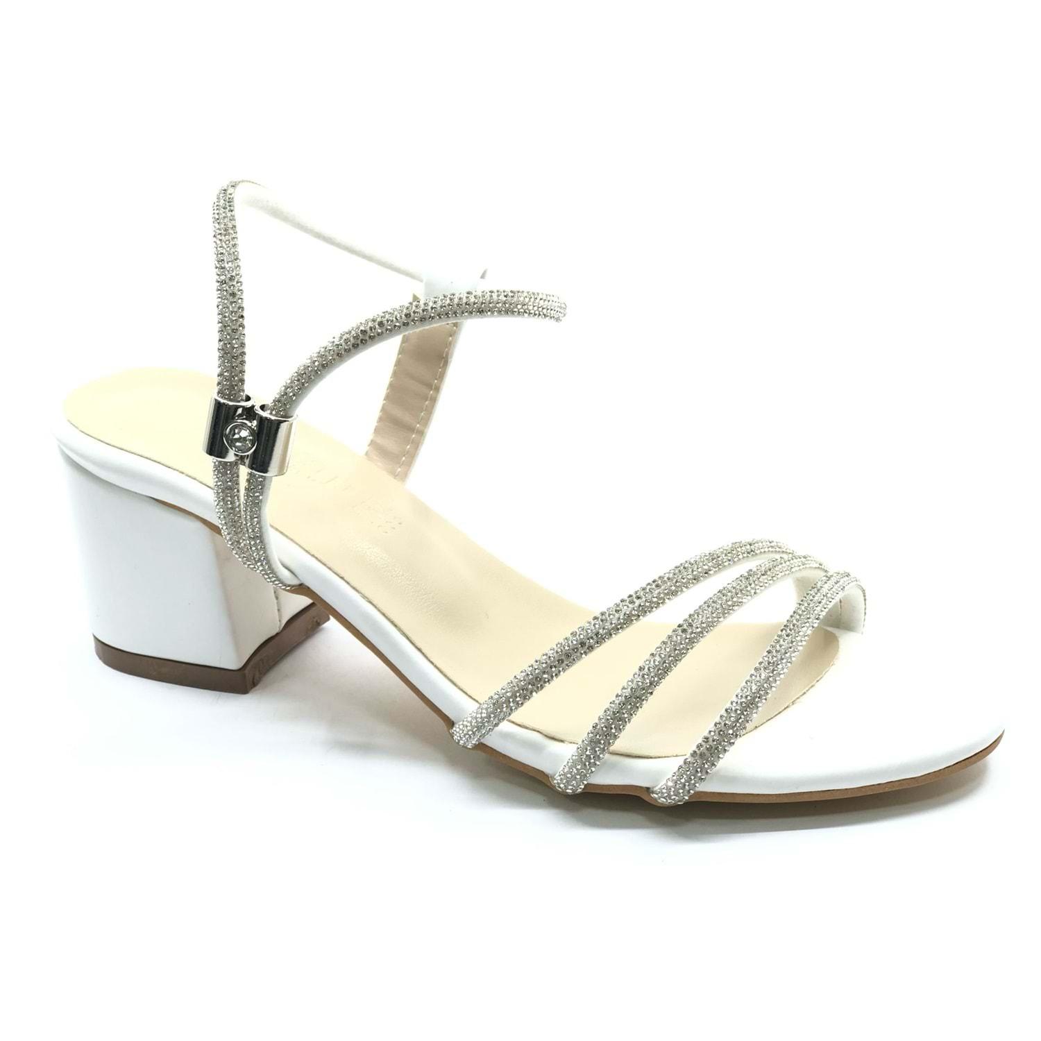 Mehtap Çapraz Üç Şerit Taşlı 5 cm Kadın Abiye Topuklu Ayakkabı