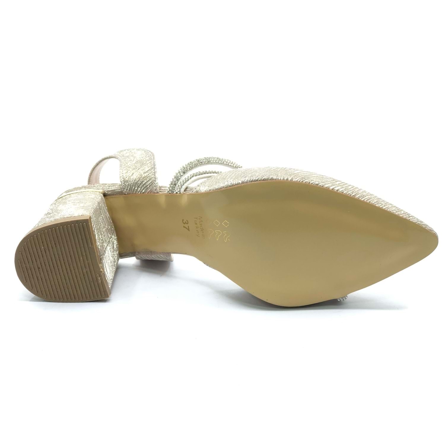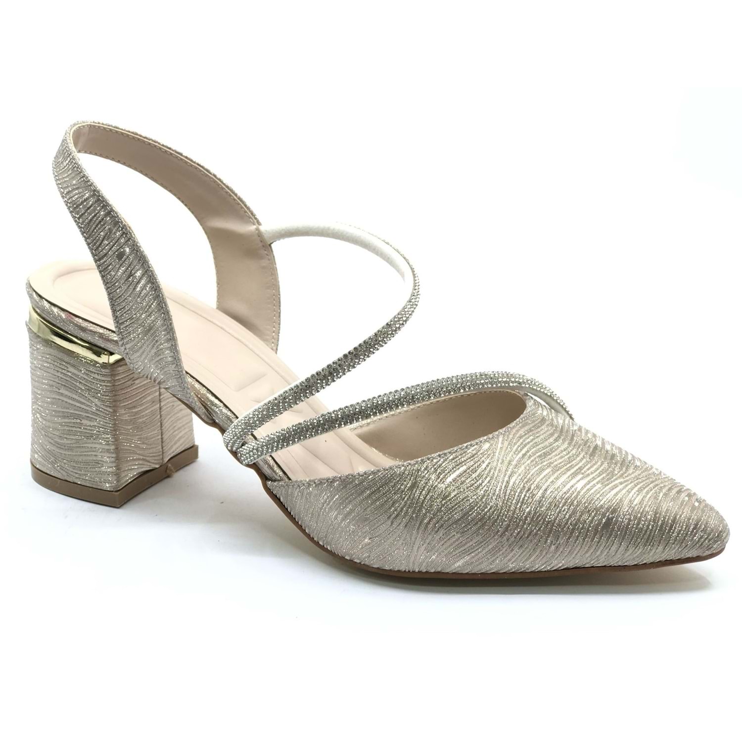 Mehtap Çift Şerit Taşlı Kadın Abiye Topuklu Ayakkabı