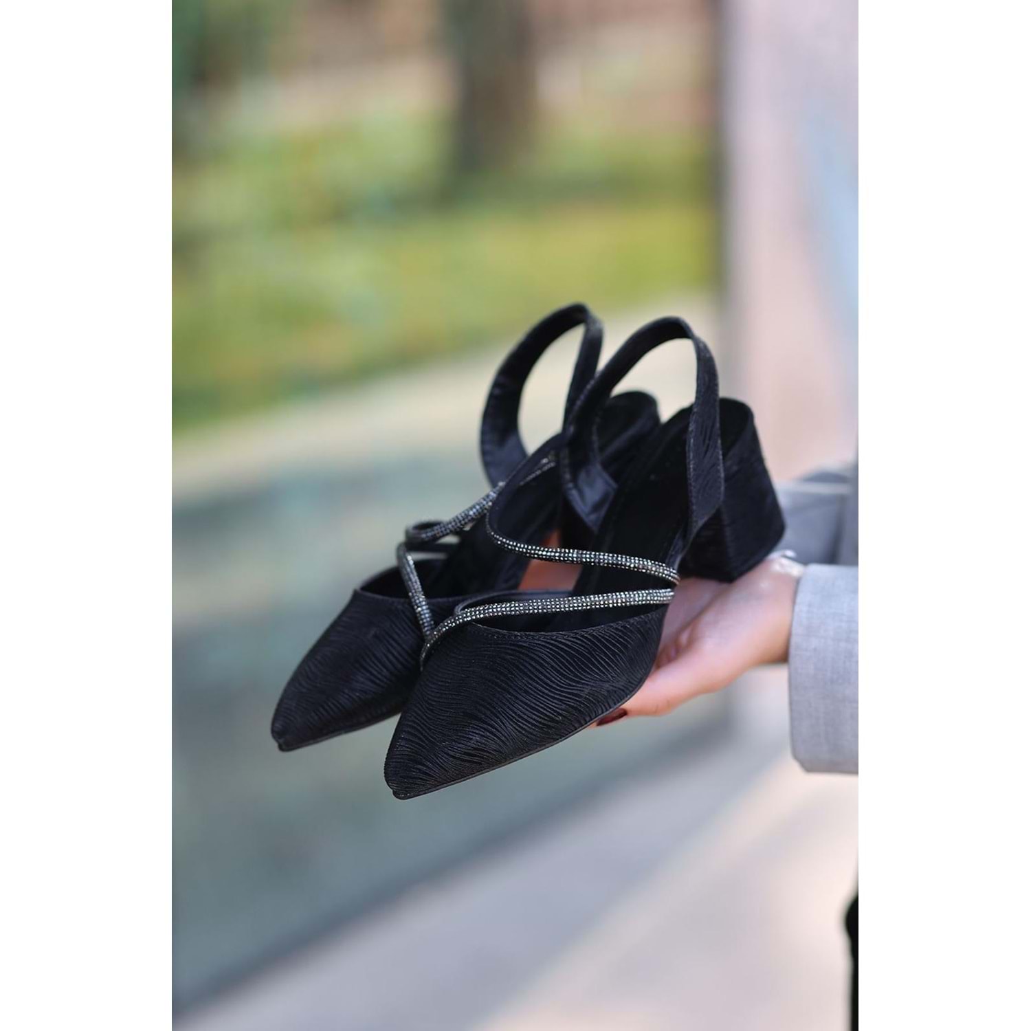 Mehtap Çift Şerit Taşlı Kadın Abiye Topuklu Ayakkabı