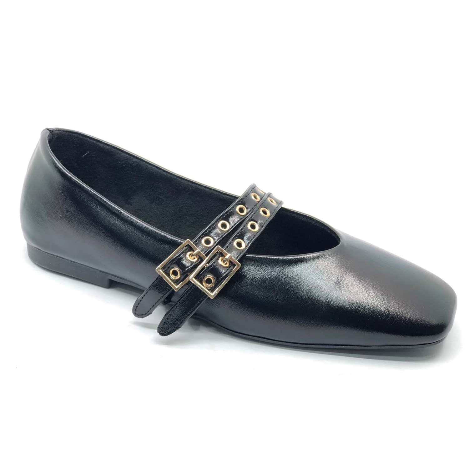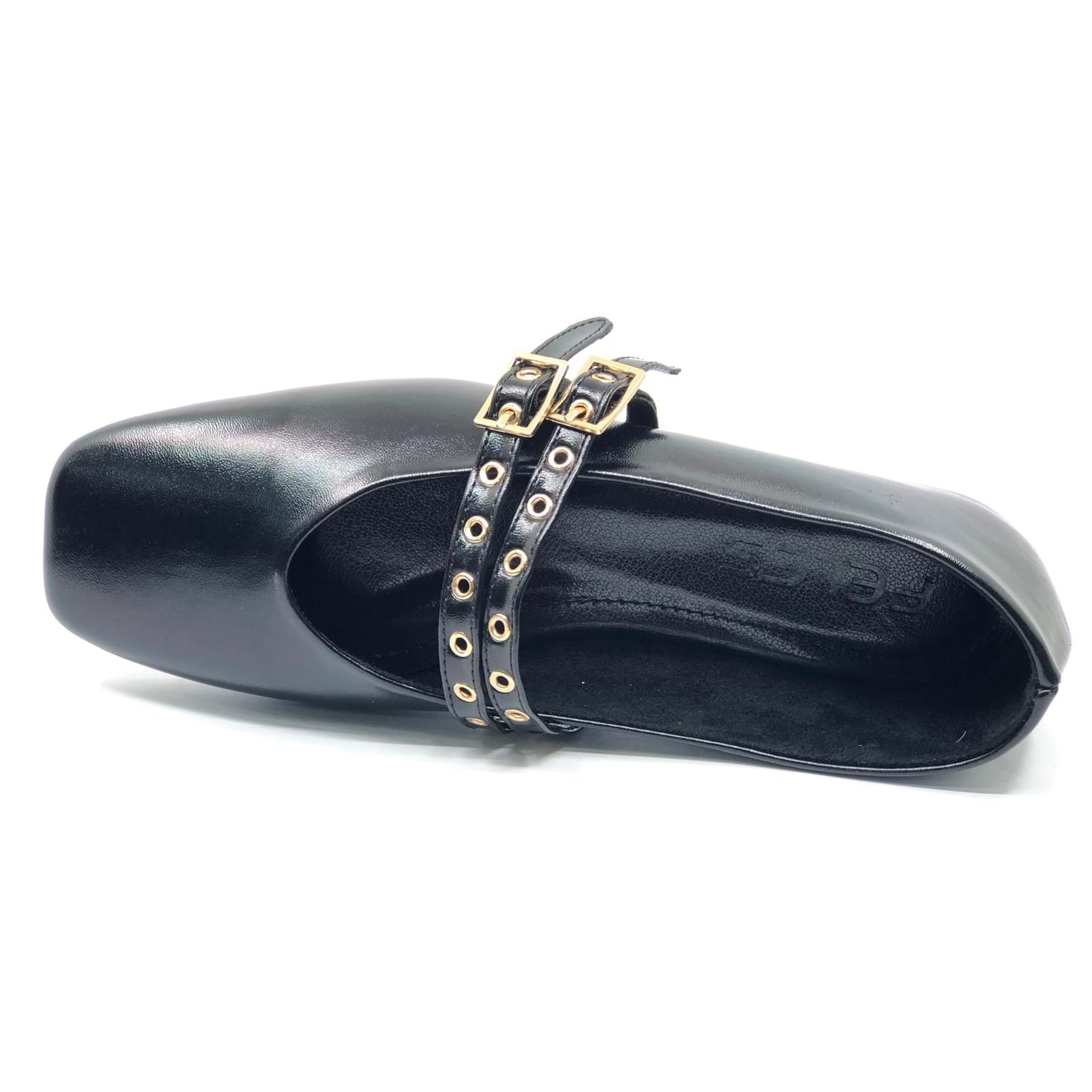 Feles Çift Kemer Detaylı Küt Burun Kadın Babet Ayakkabı