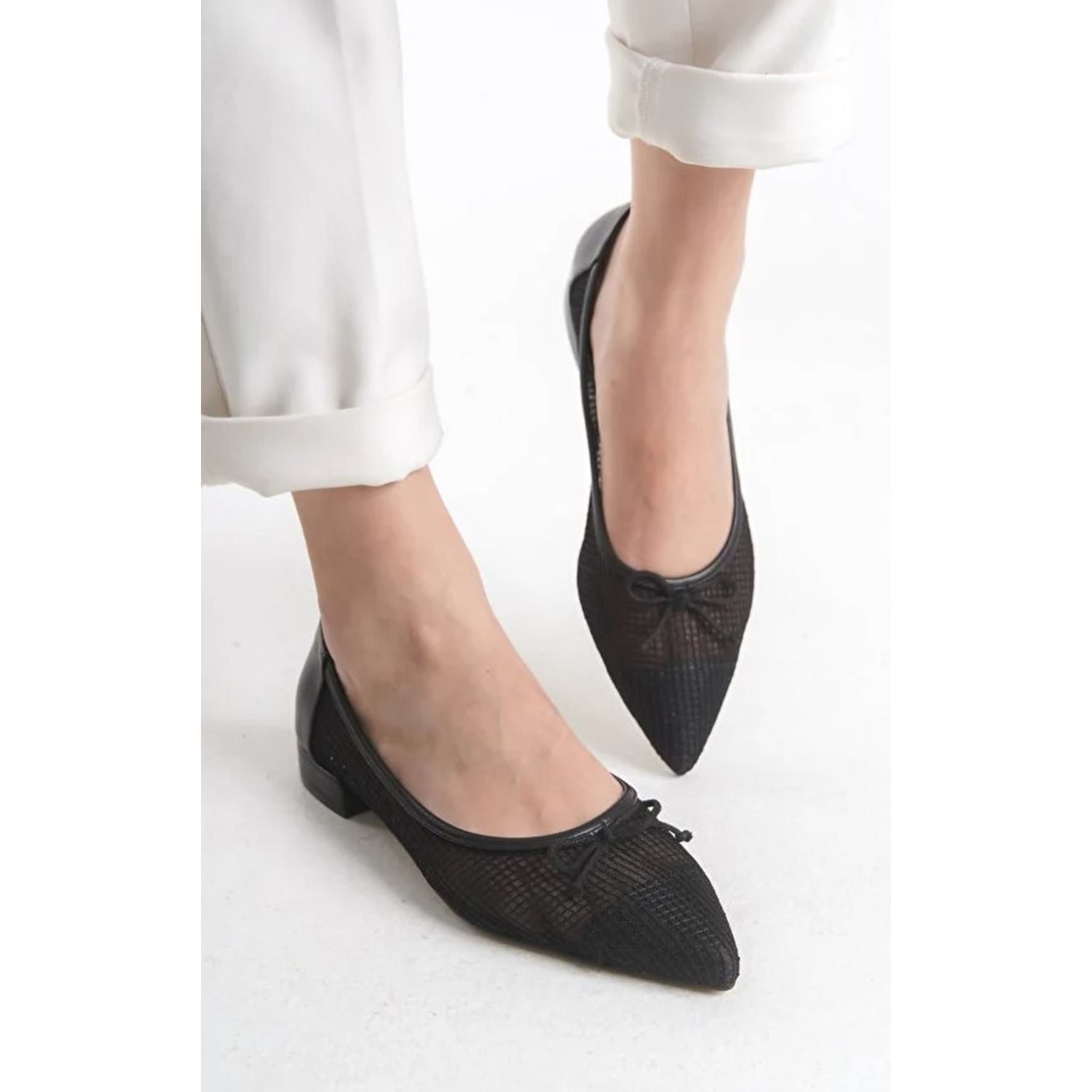 Feles Dantel Fiyonk Detaylı Sivri Burun Kadın Babet Ayakkabı