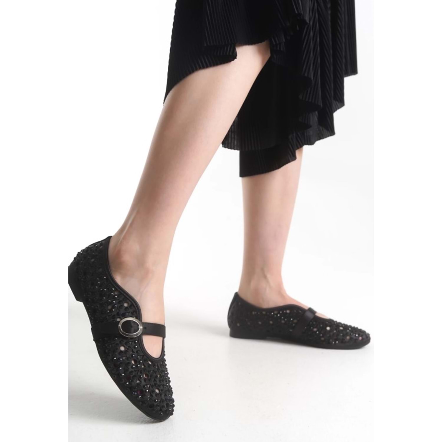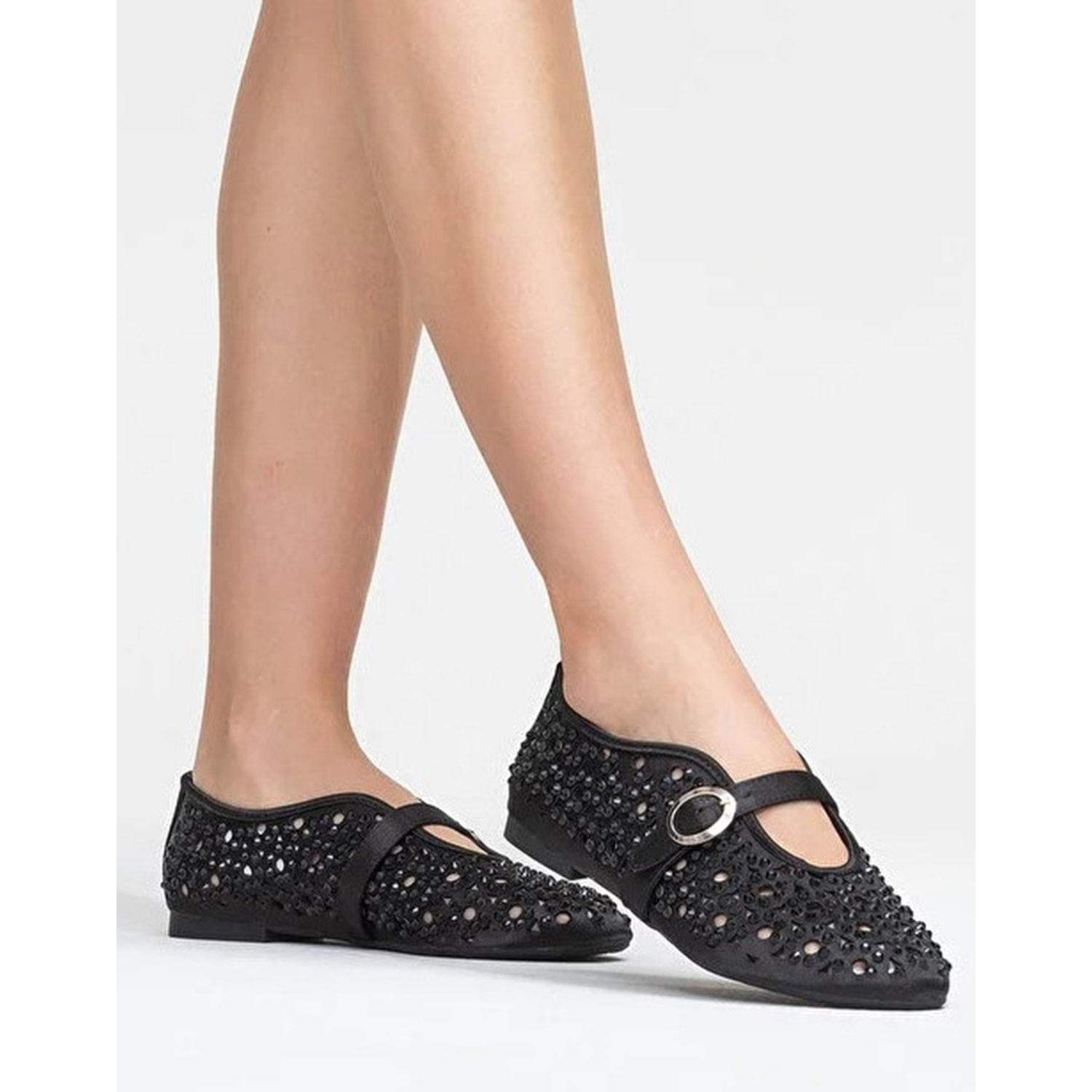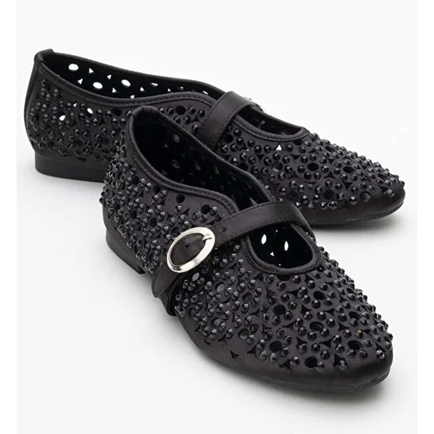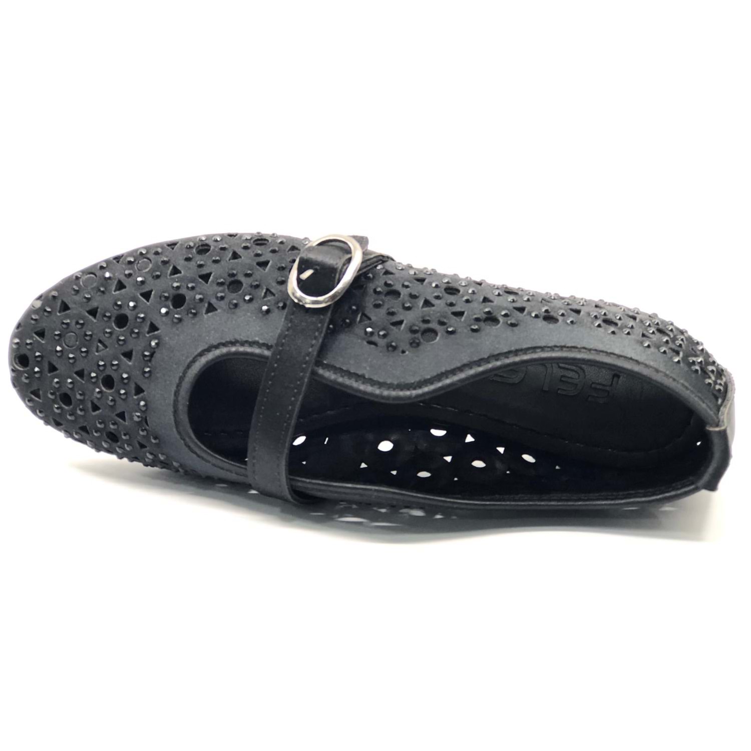 Feles Delik Taş Detaylı Kadın Babet Ayakkabı