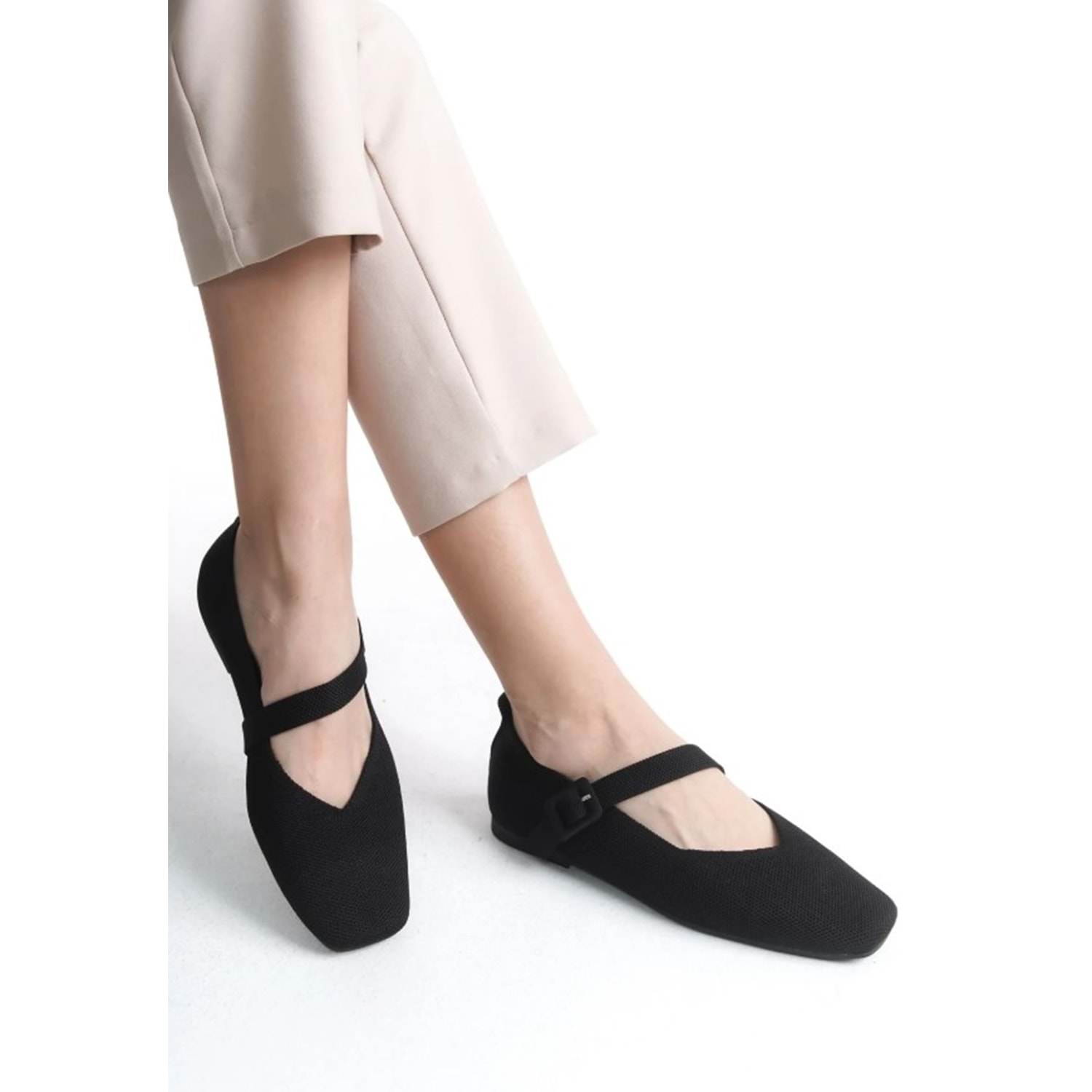 Feles Küt Burun Kemer Detaylı Kadın Babet Ayakkabı