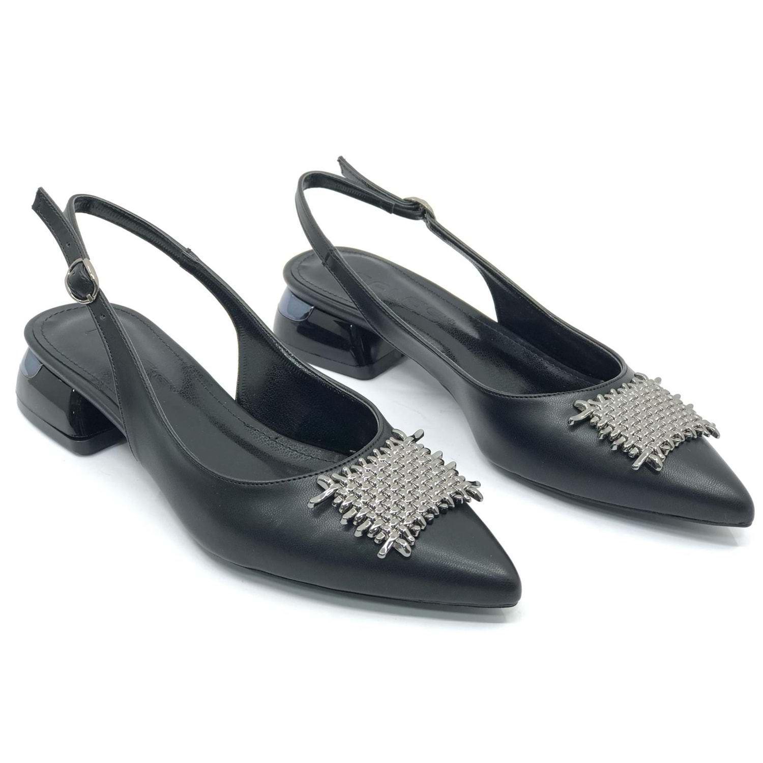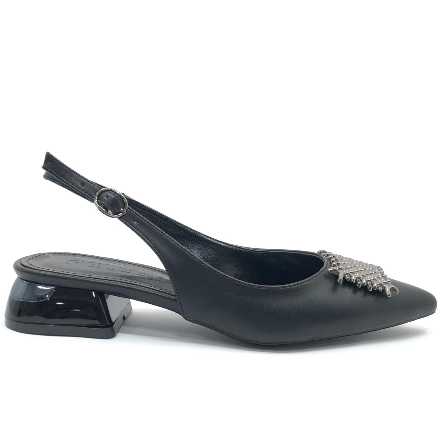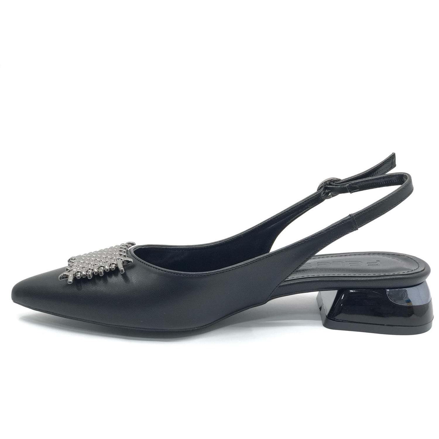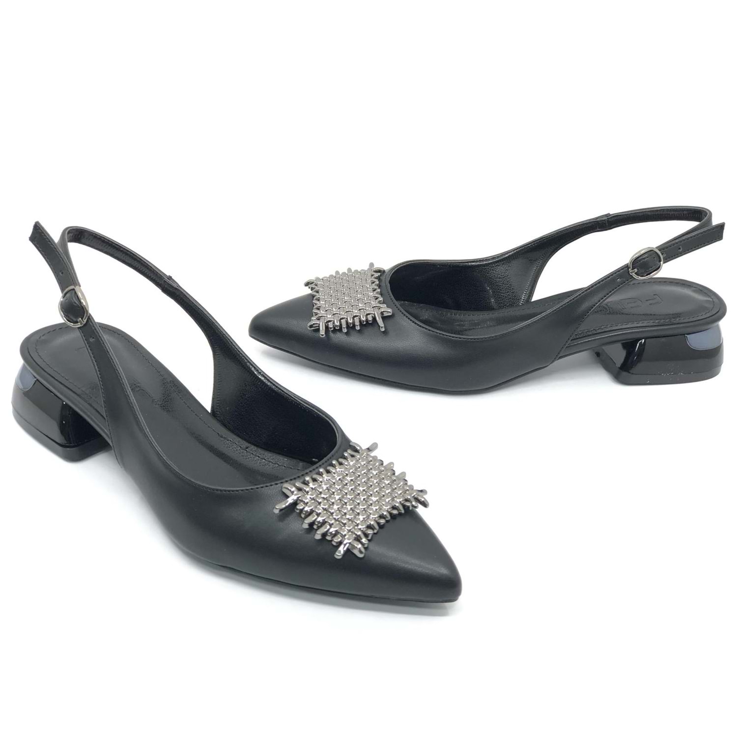 Feles Toka Detaylı Kısa Topuklu Arkası Açık Kadın Babet Ayakkabı