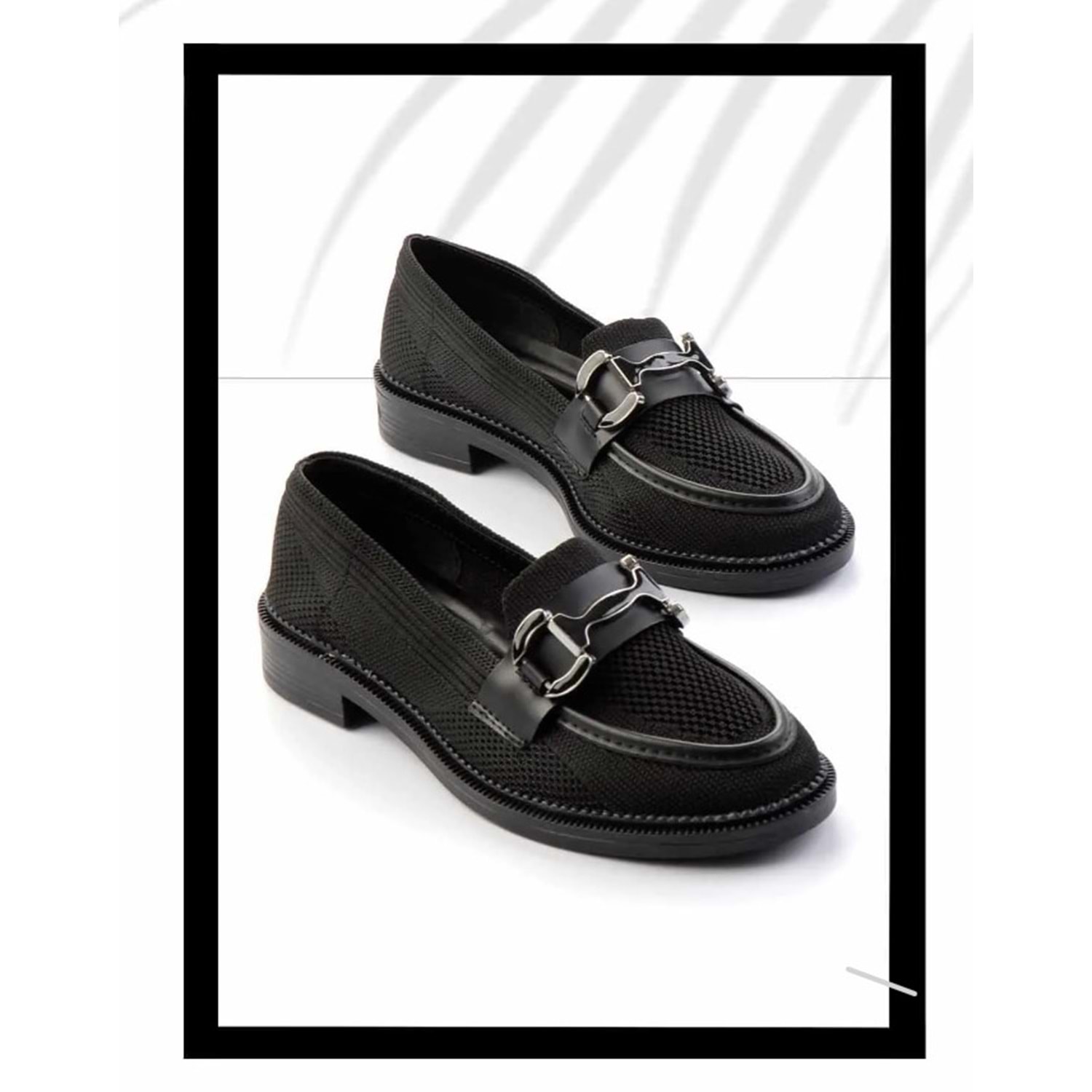 Feles Toka Detaylı Triko Loafer Kadın Babet Ayakkabı