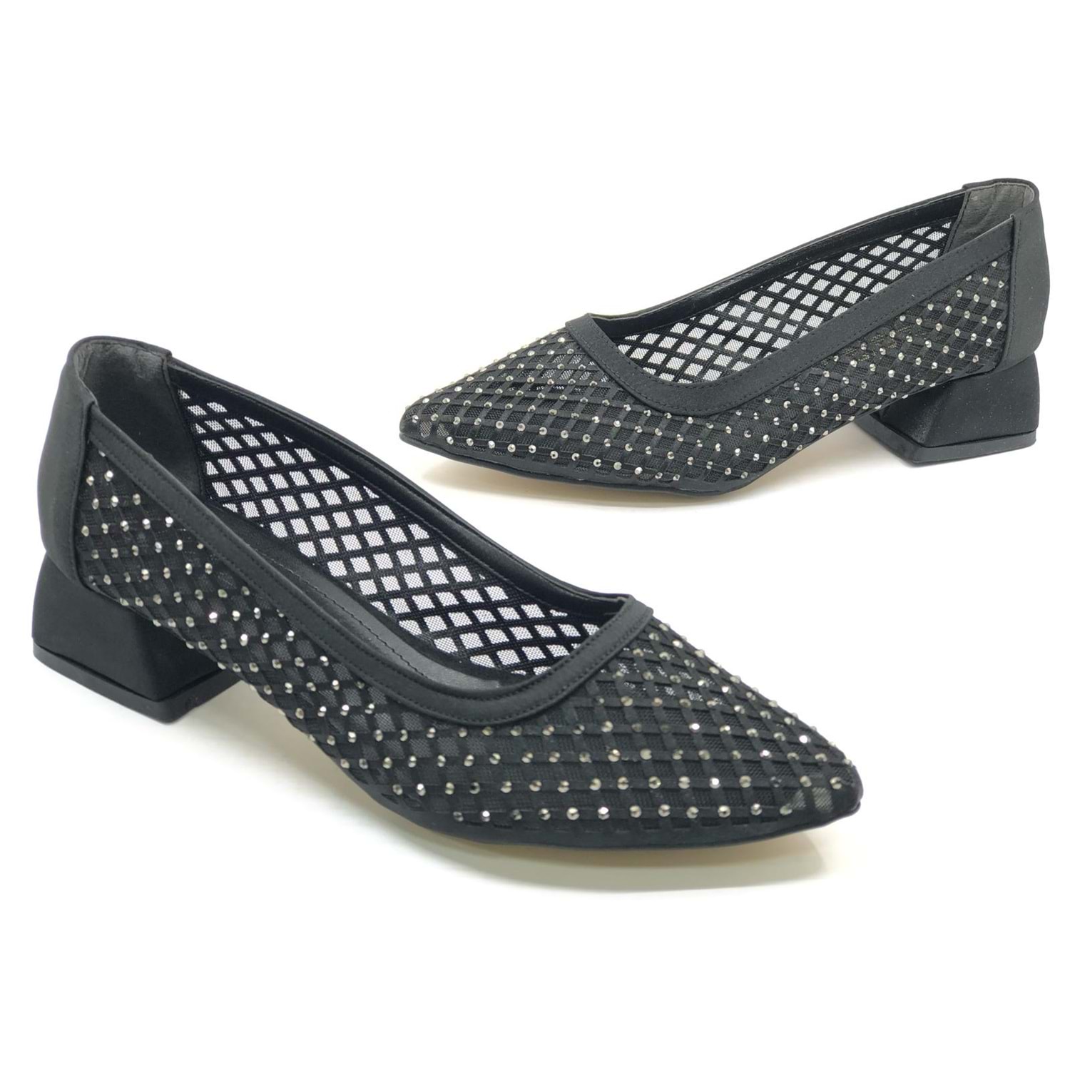 Seribo Dantel Taş Detaylı Kısa Topuklu Kadın Babet Ayakkabı