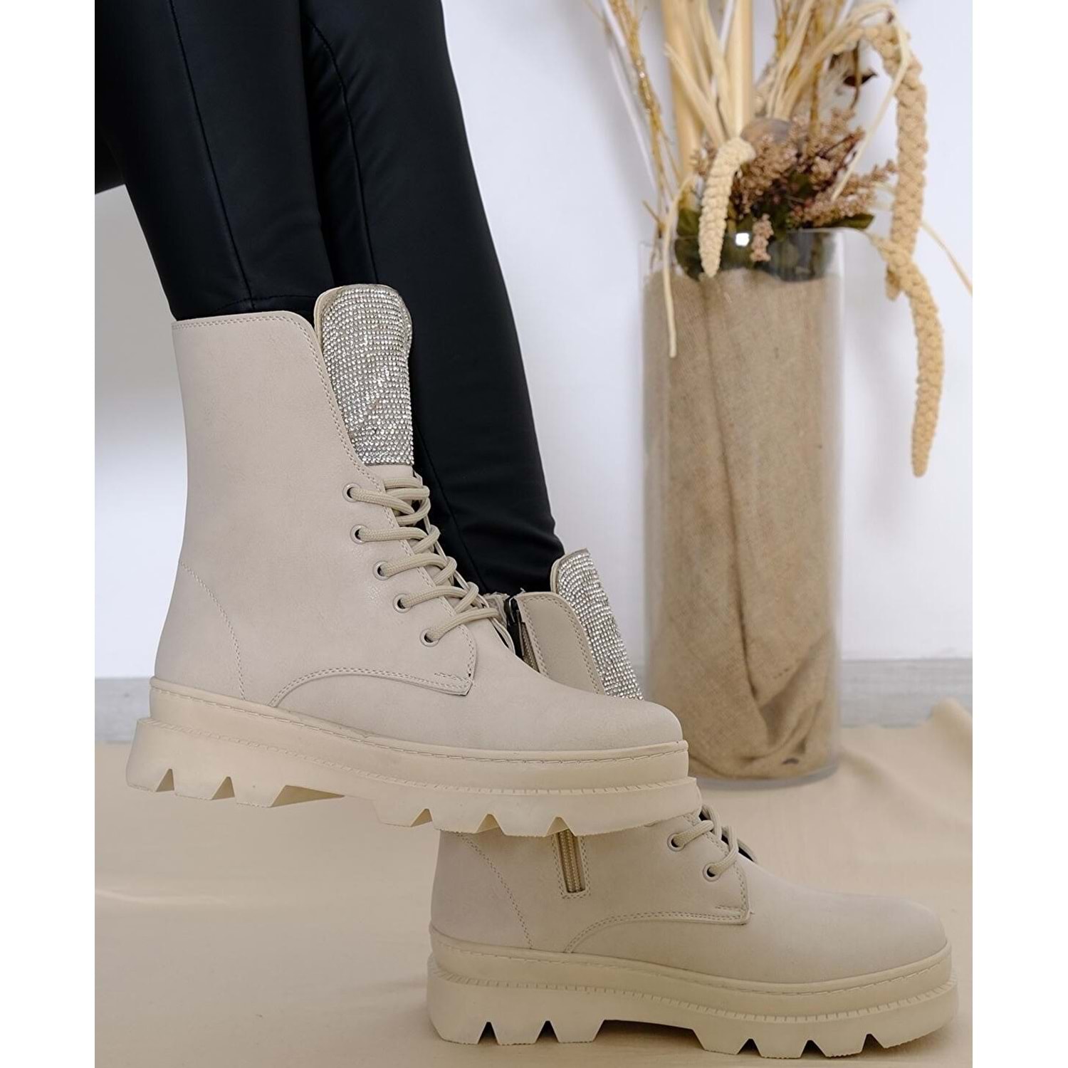 Feles Taş Detaylı Kadın Postal Bot