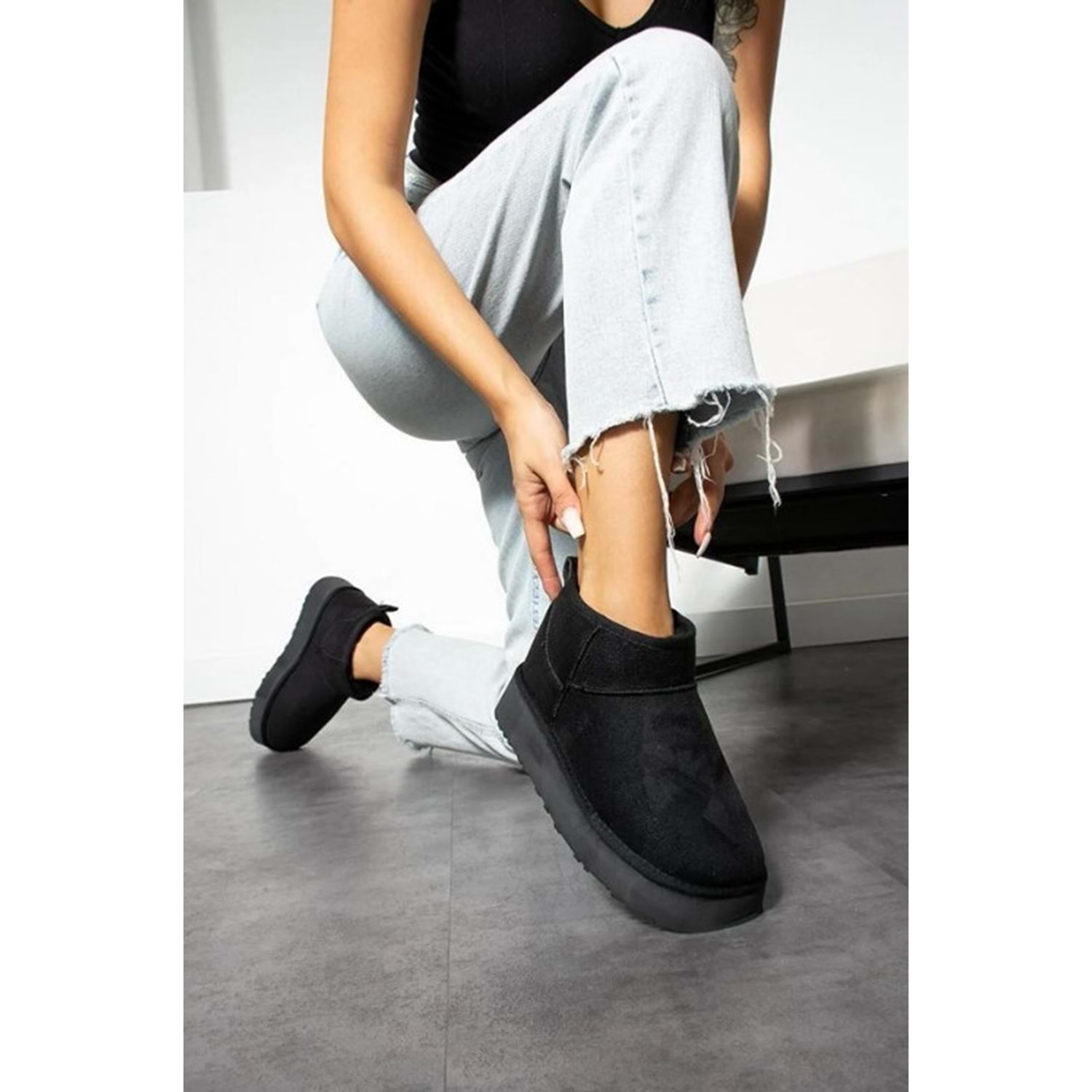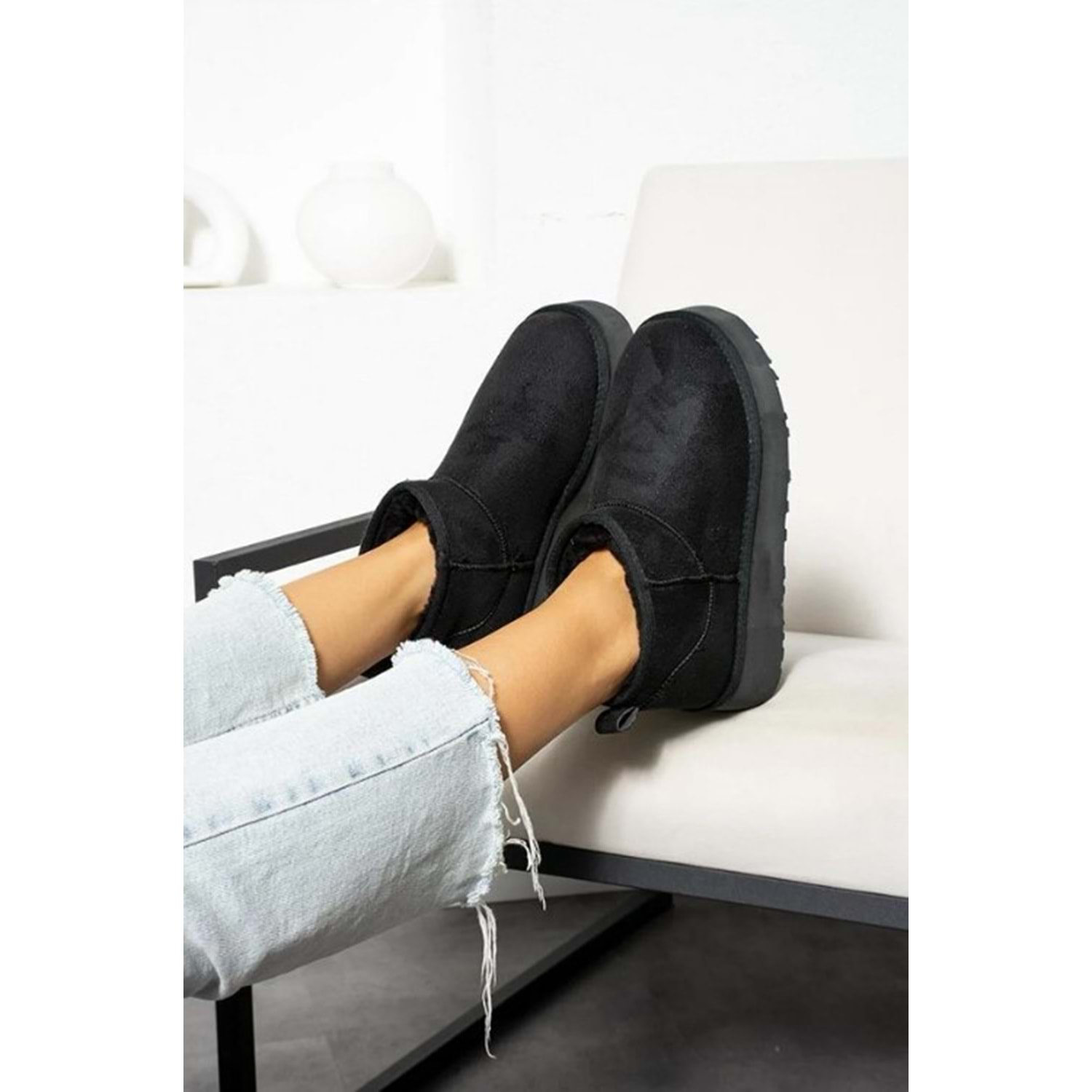 Hugg Kalın Taban İçi Yünlü Bilekte Kısa Kadın Bot