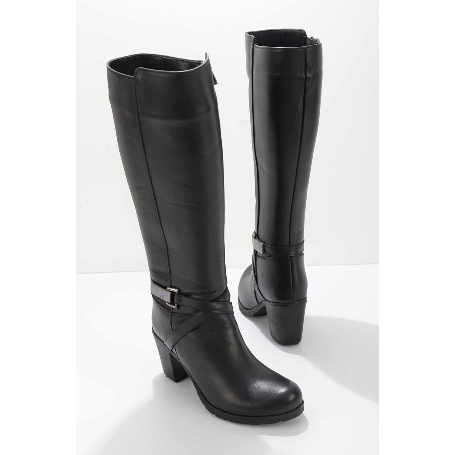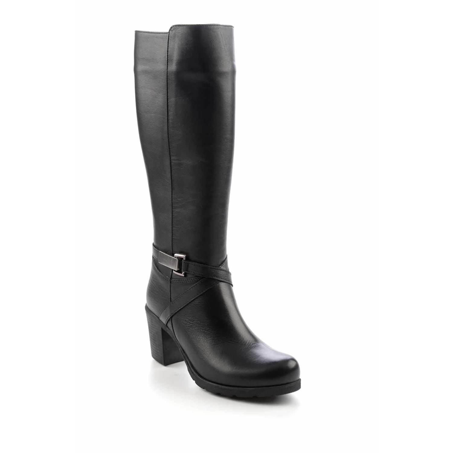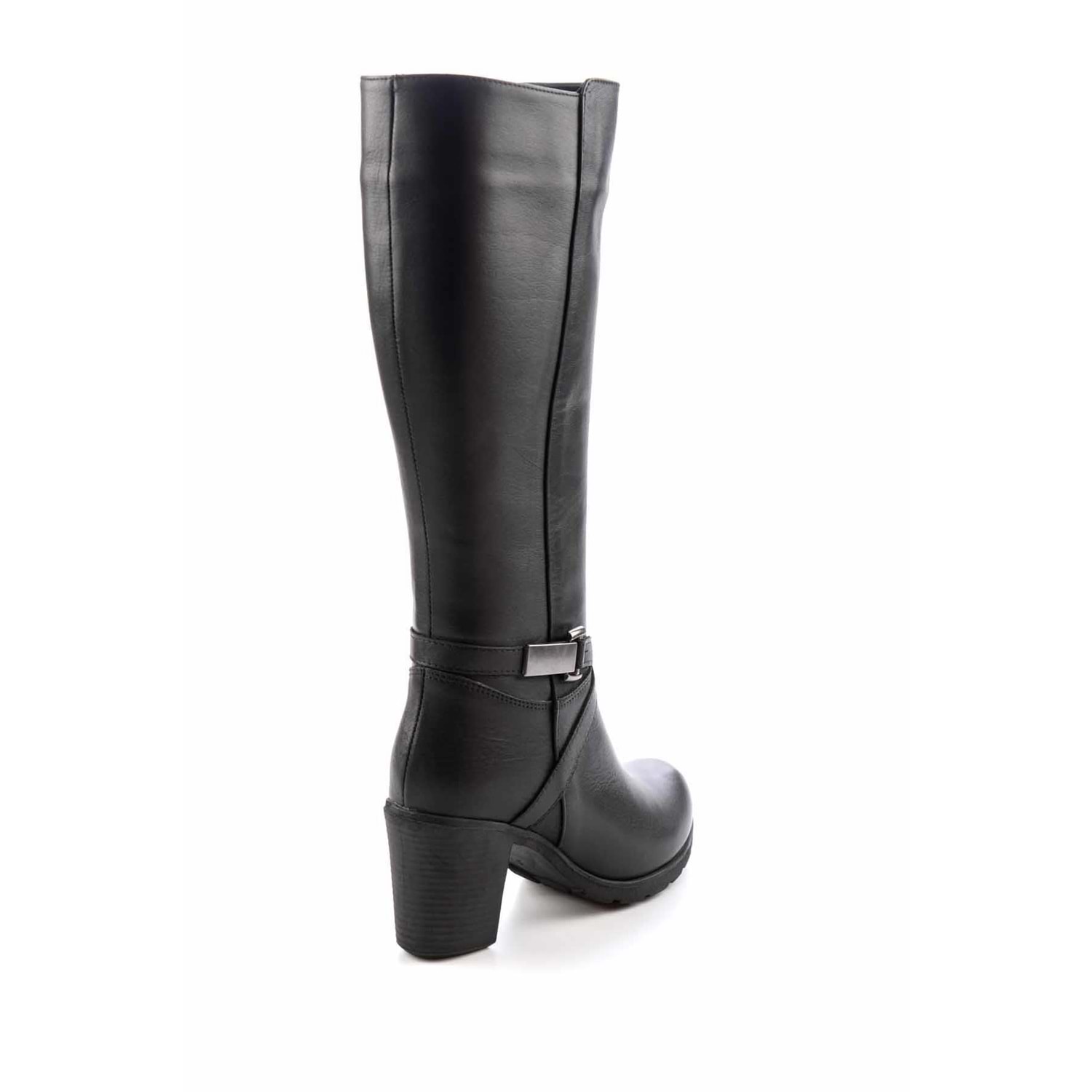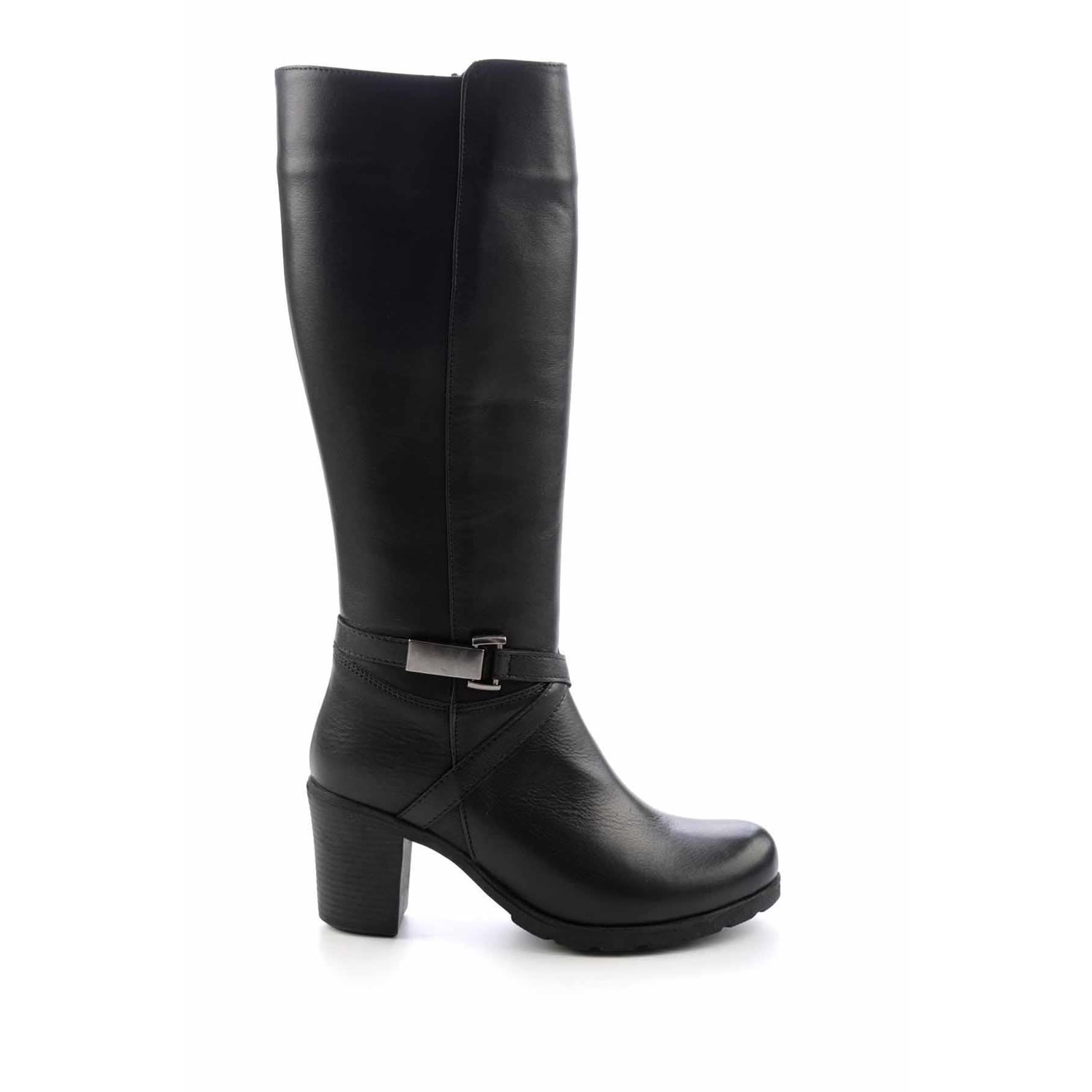 Ayakdaş Diz Altı Tokalı Topuklu Hakiki Deri Kadın Çizme