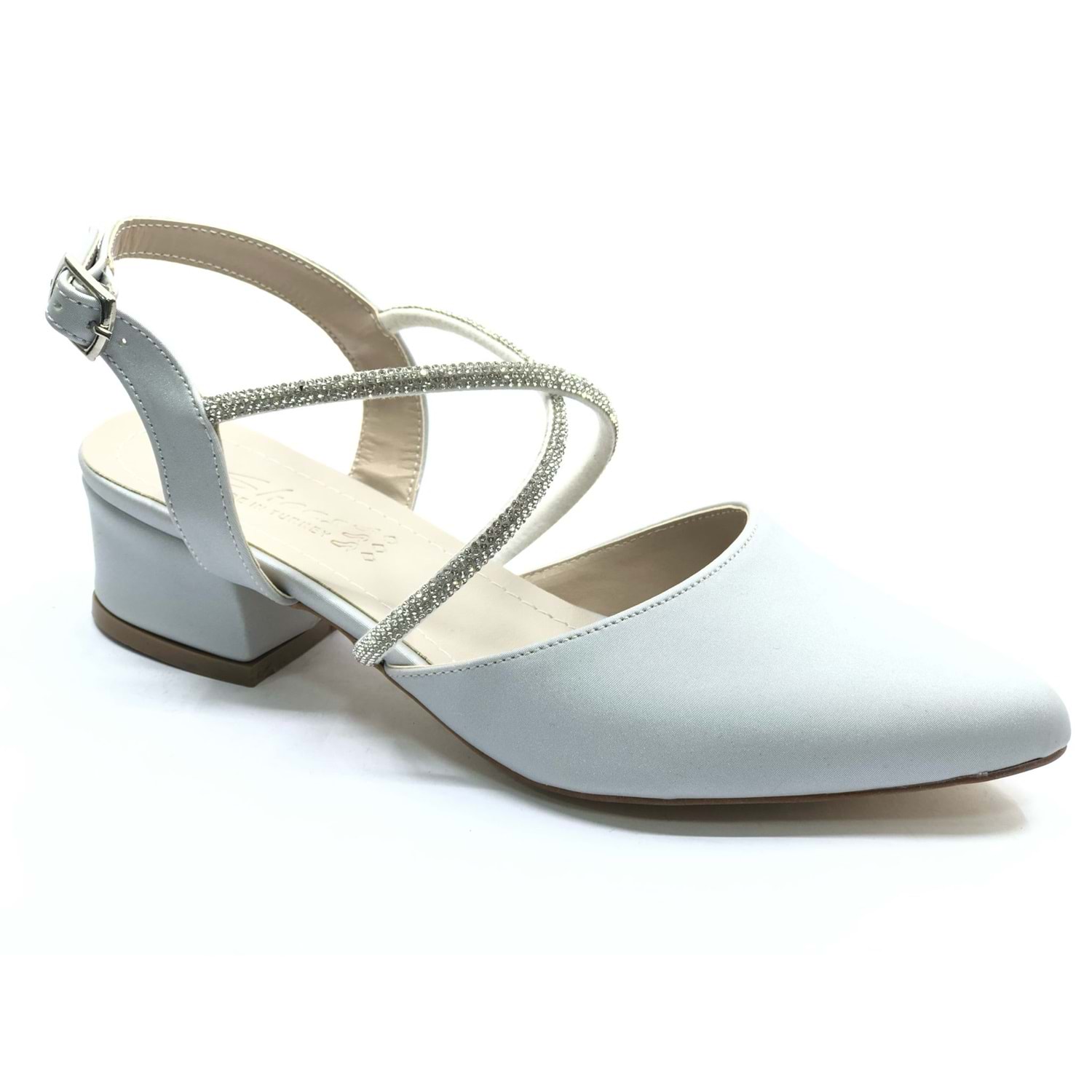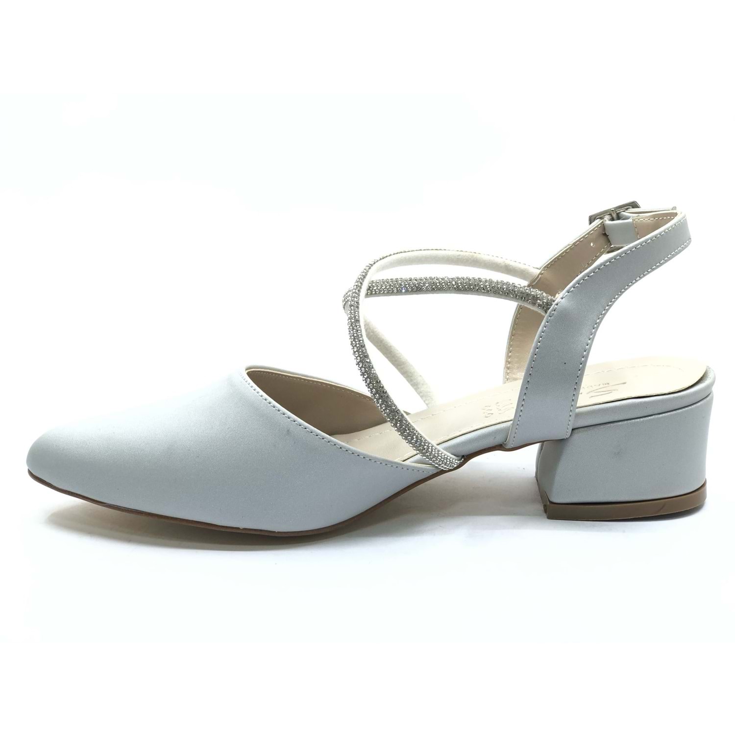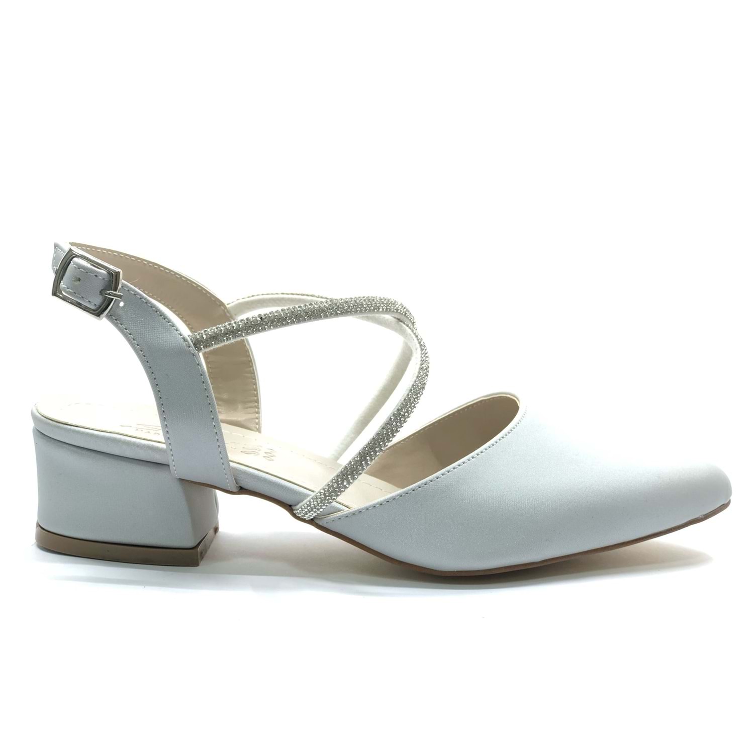 Asya Bilek Şerit Taşlı Çapraz Bantlı Kısa Topuklu Klasik Kadın Topuklu Ayakkabı