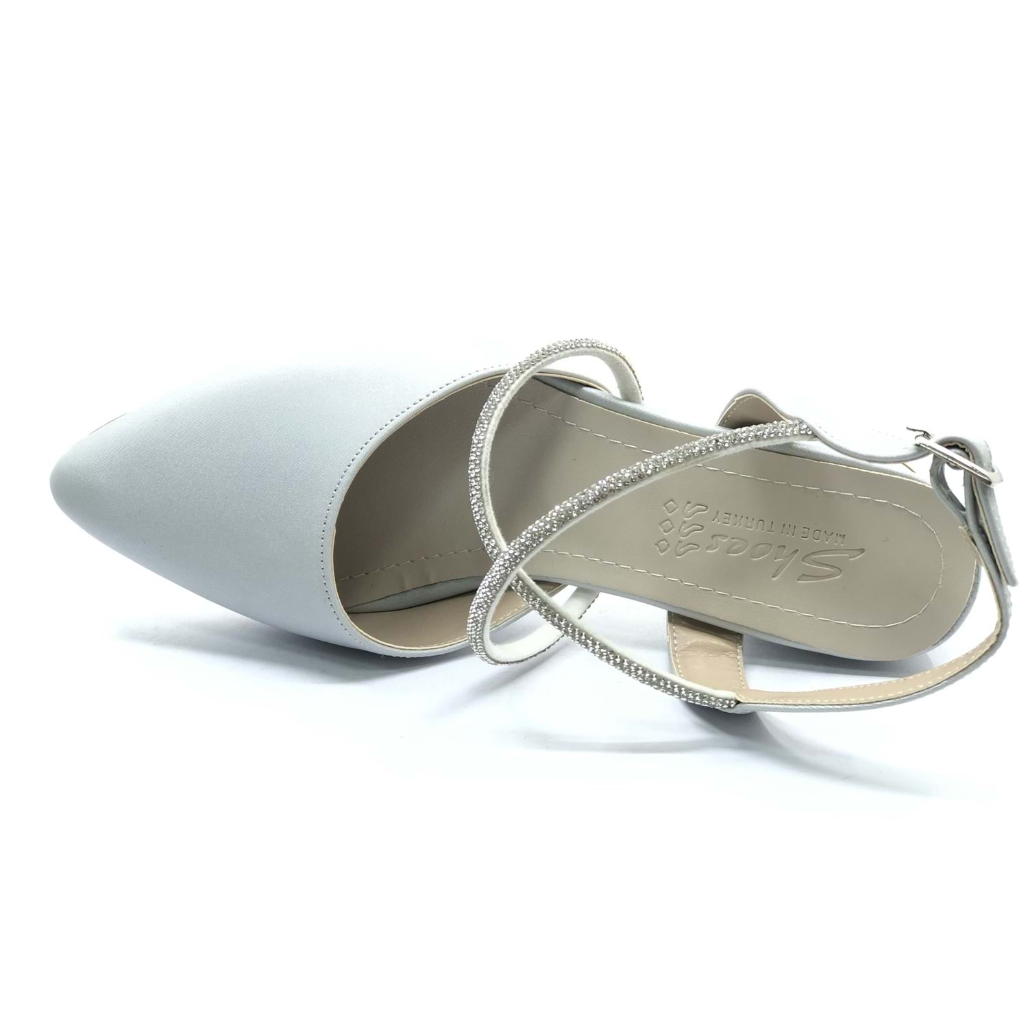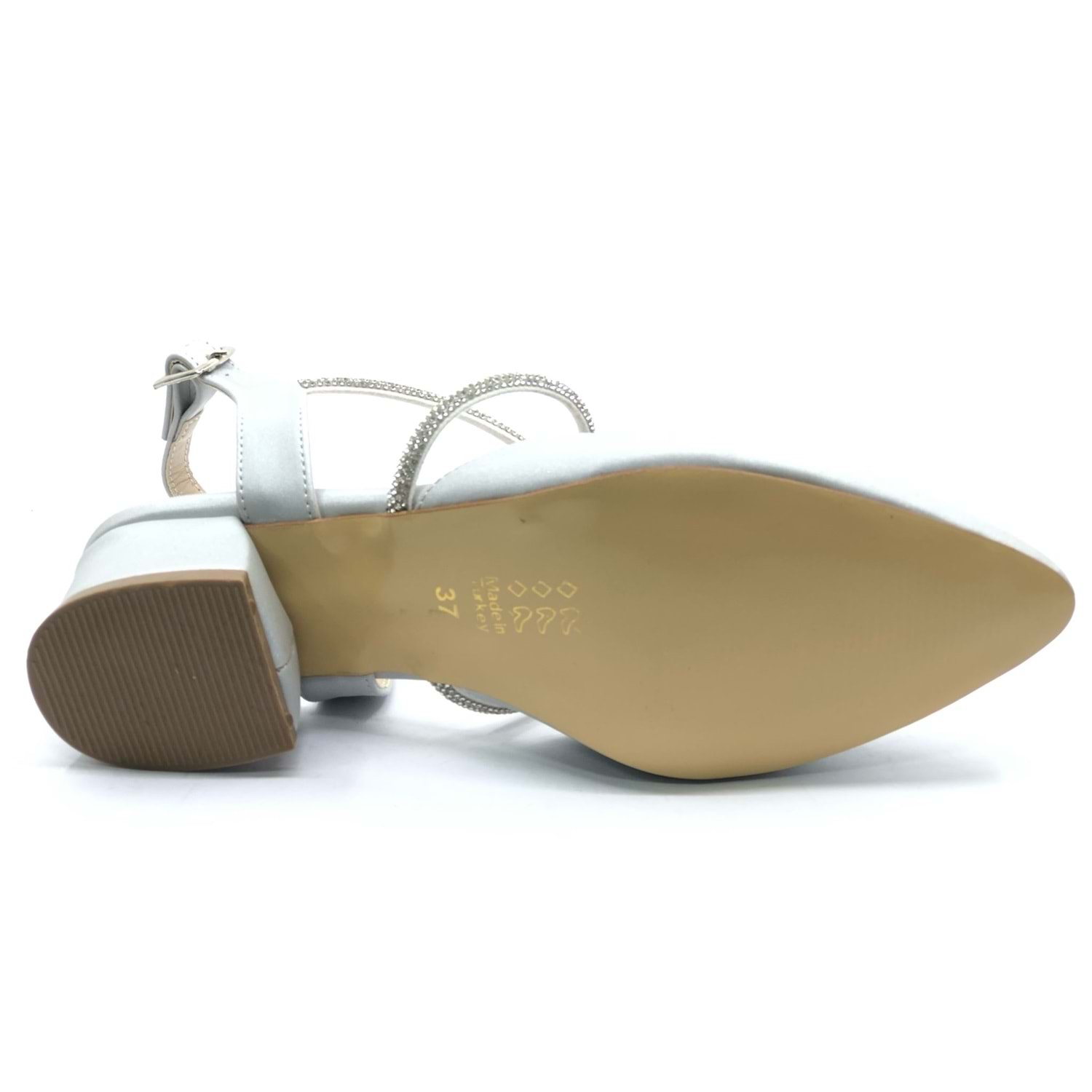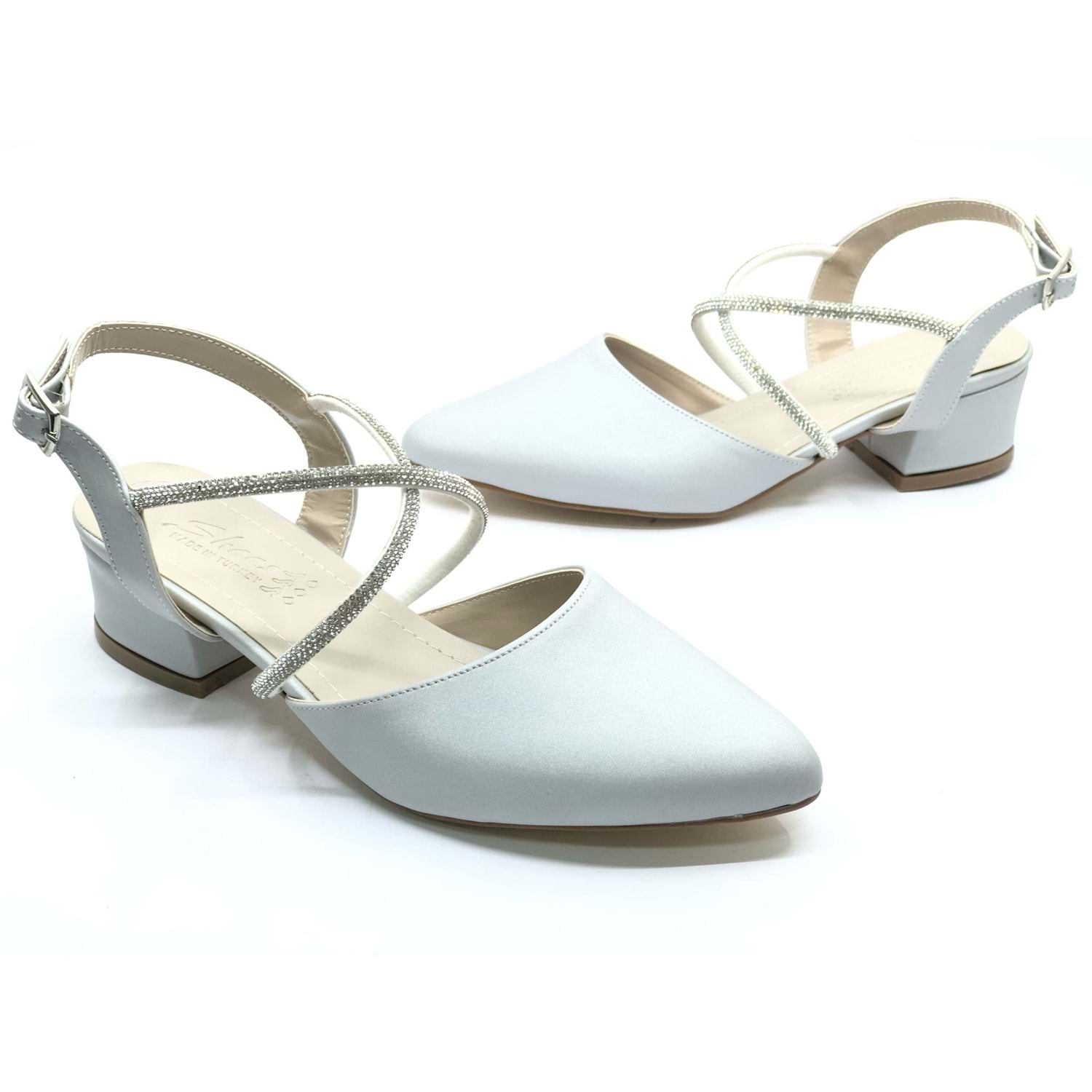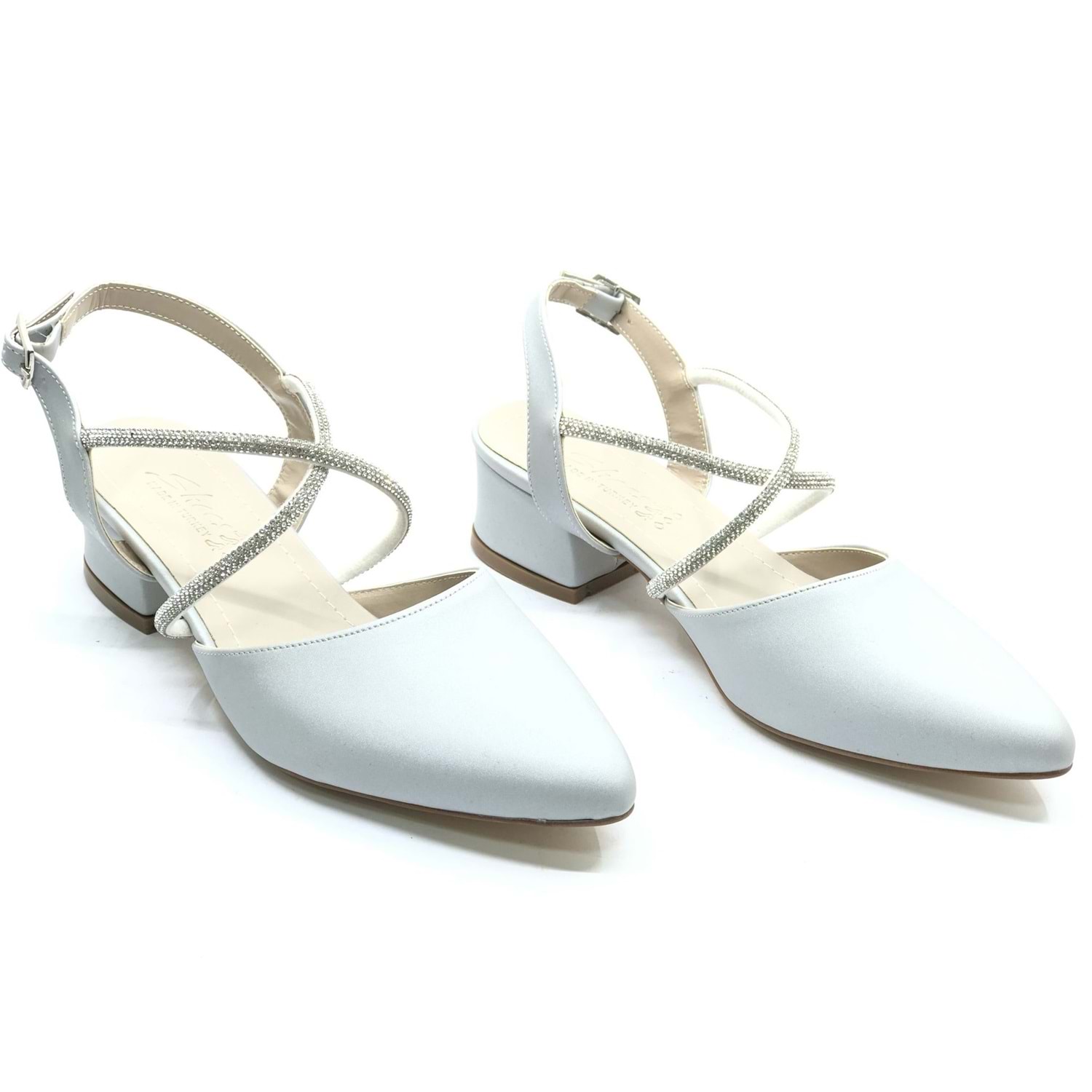 Asya Bilek Şerit Taşlı Çapraz Bantlı Kısa Topuklu Klasik Kadın Topuklu Ayakkabı