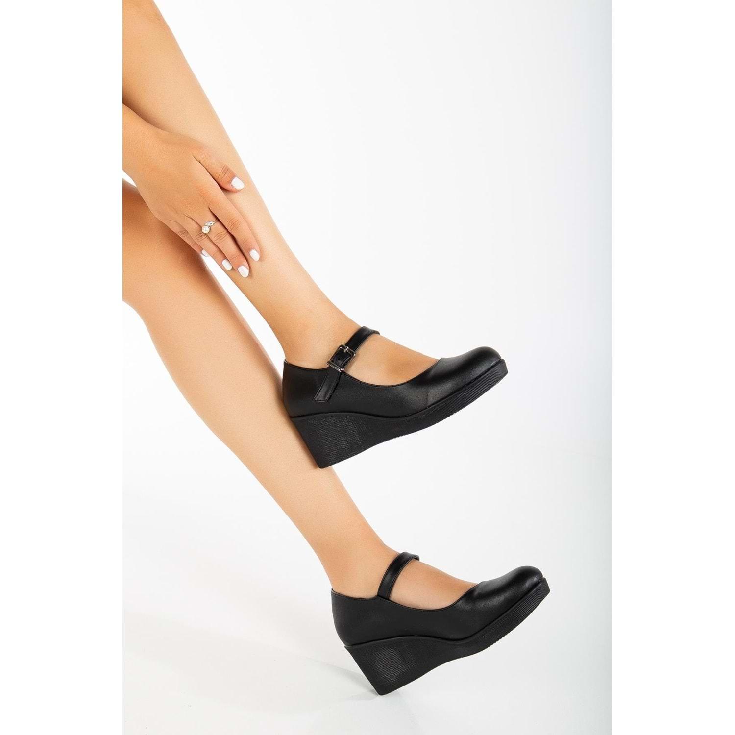 Ayakdaş Baretli Kadın Dolgu Taban Klasik Ayakkabı