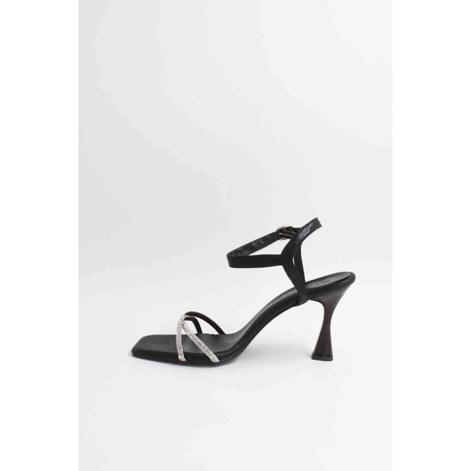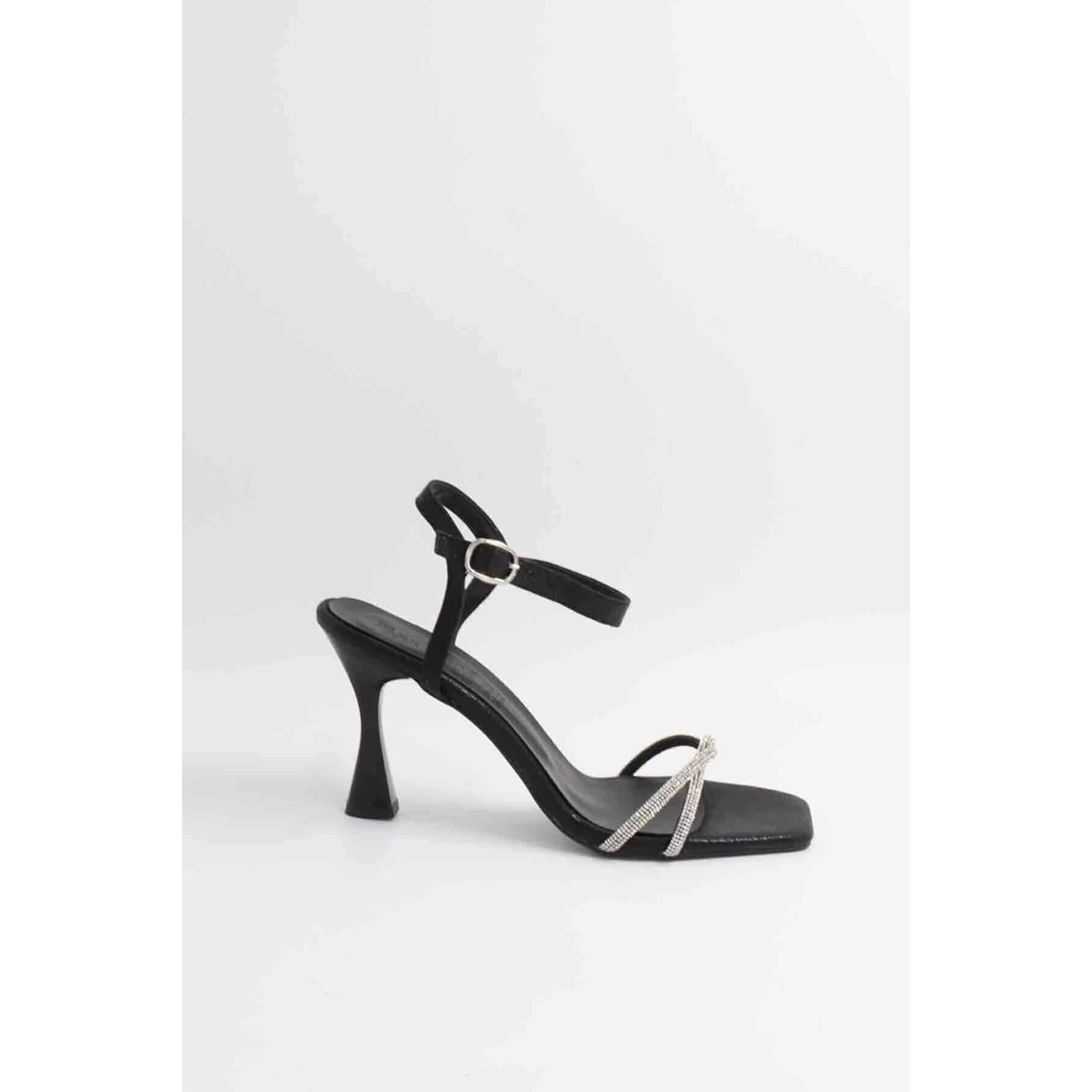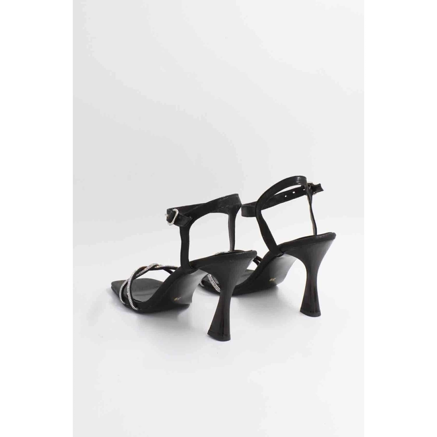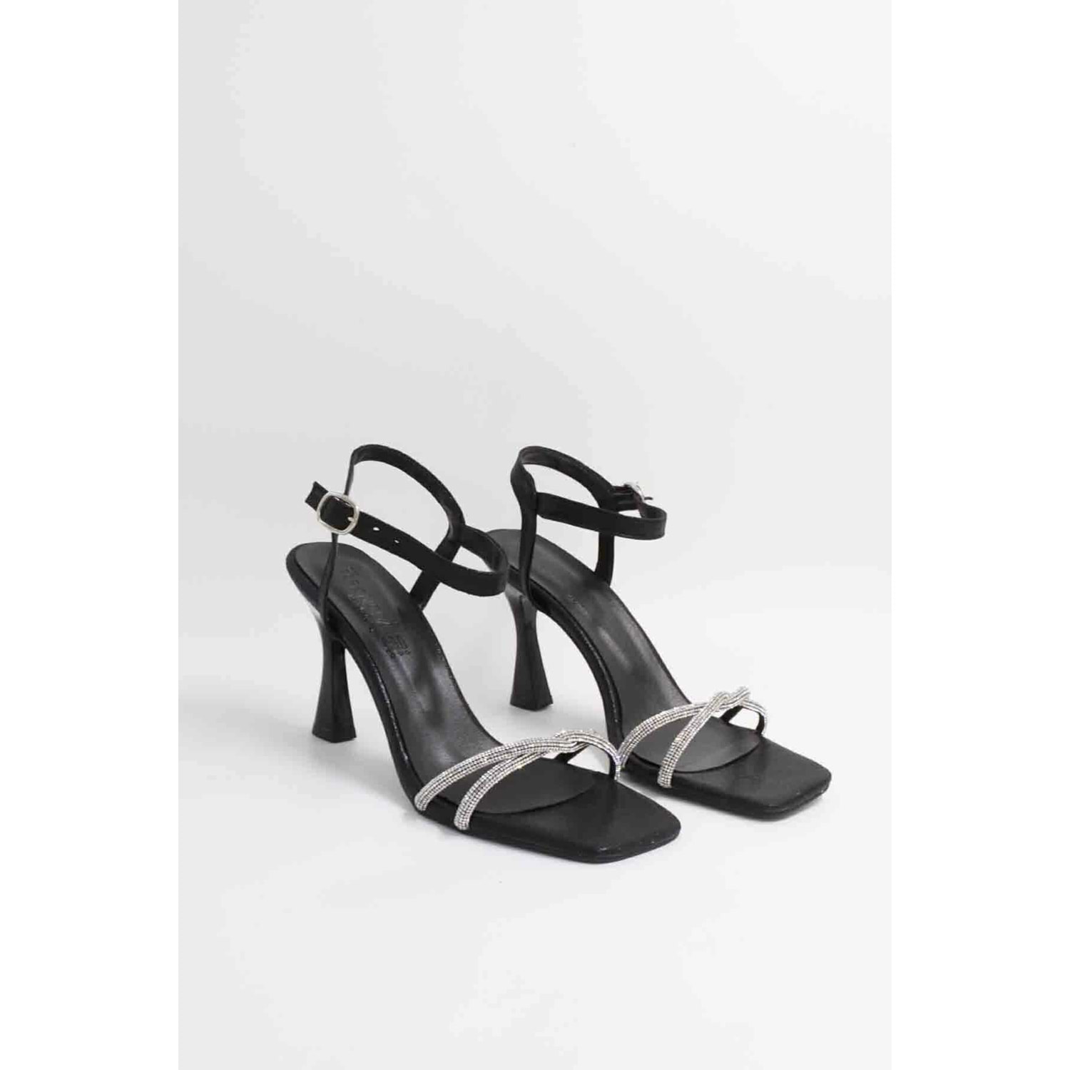 Feles Kadeh Topuk Tek Bant Taşlı Abiye Kadın Topuklu Ayakkabı