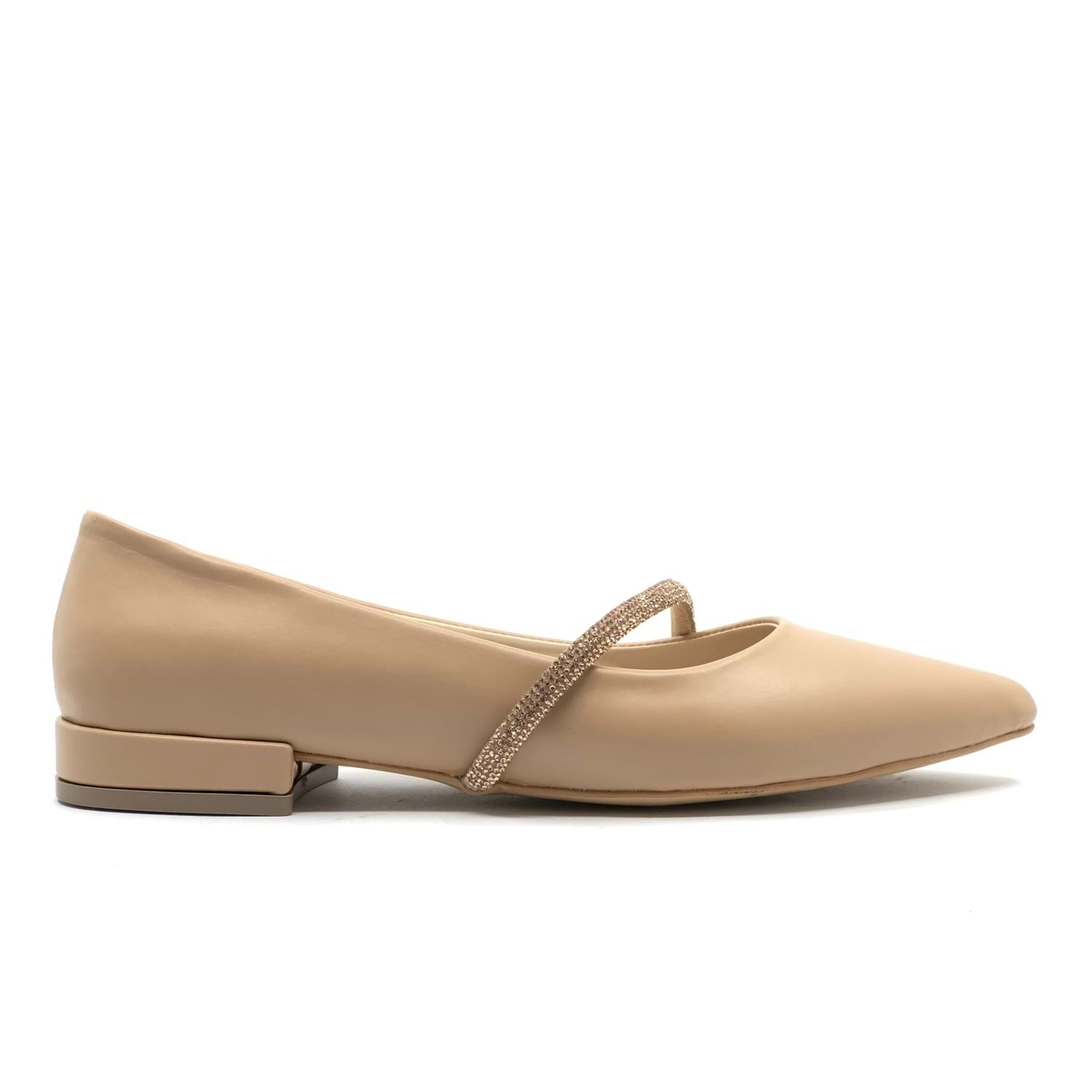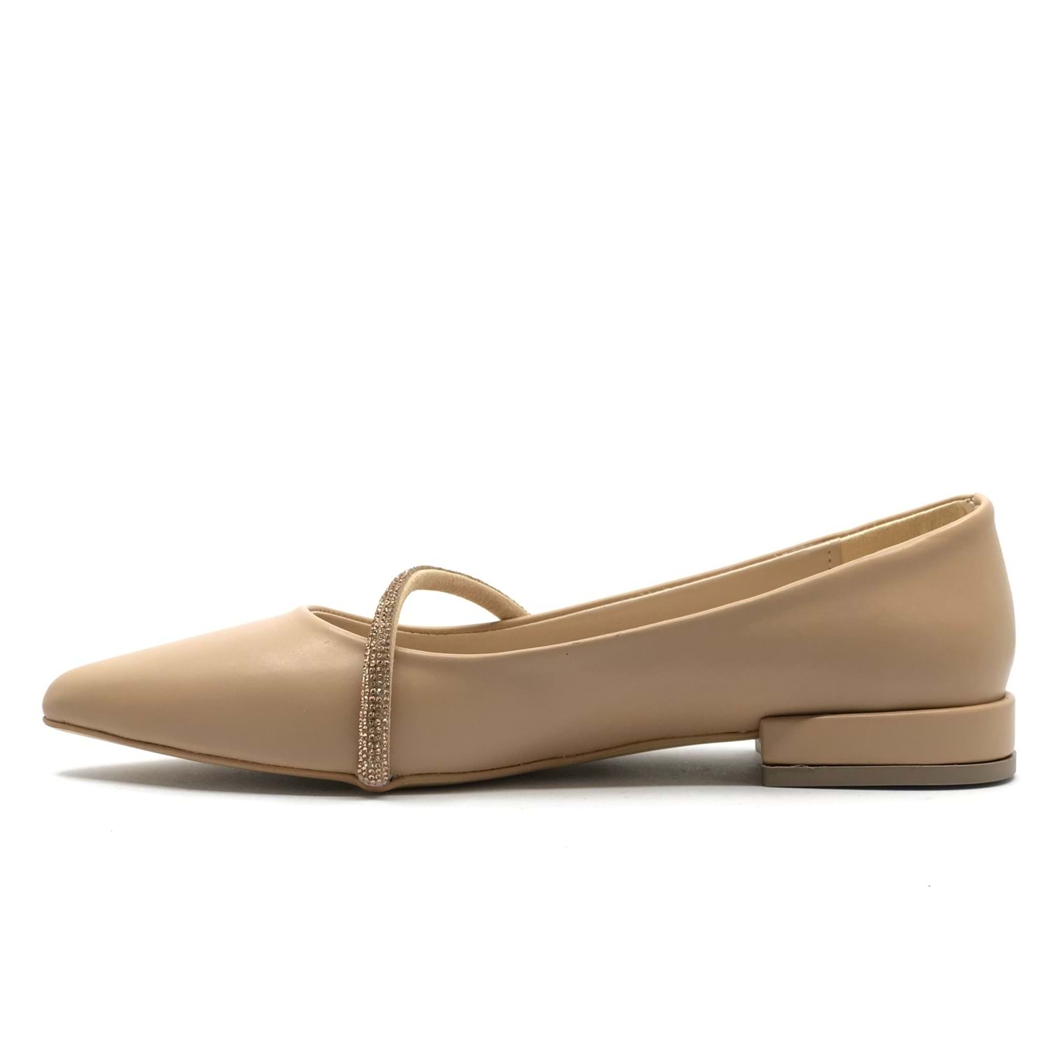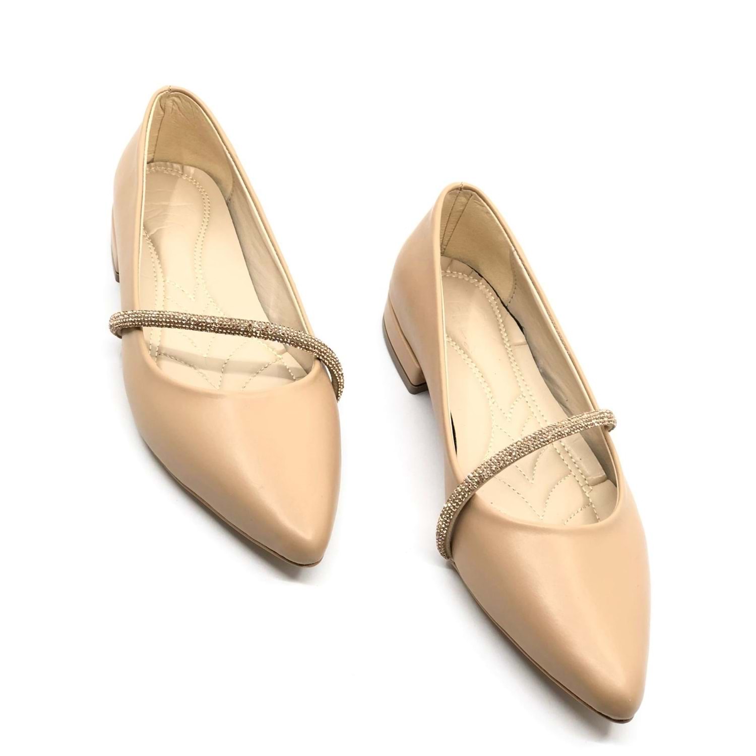 Feles Şerit Taş Dekolteli Yumuşak Düz Taban Kadın Babet